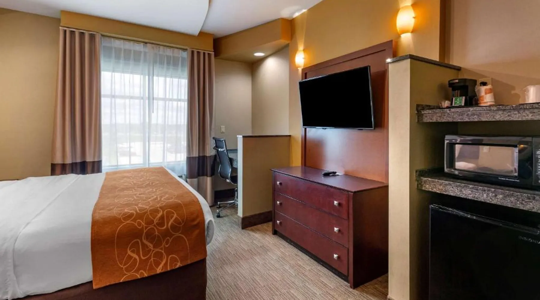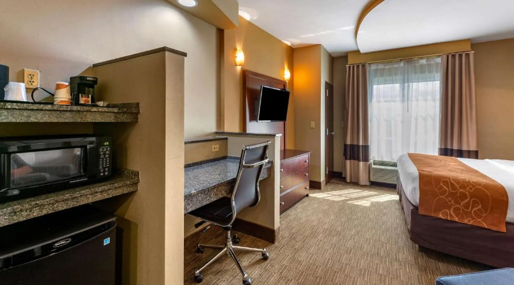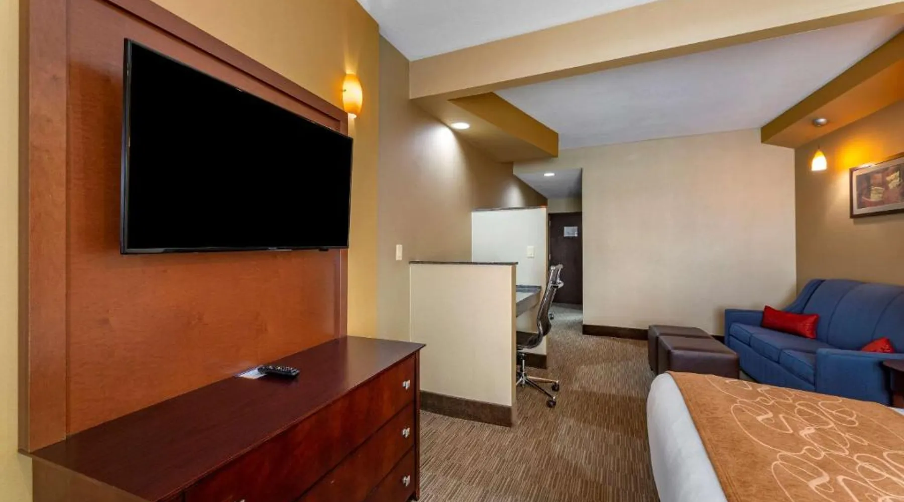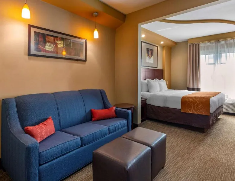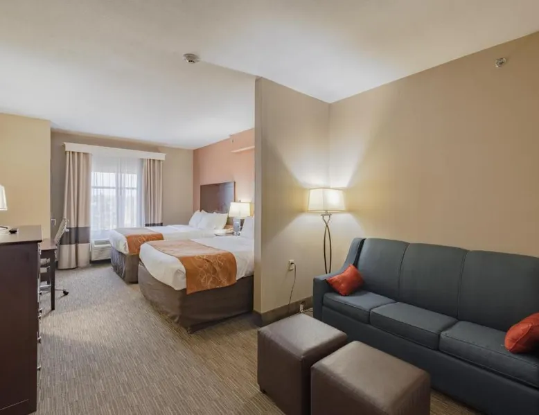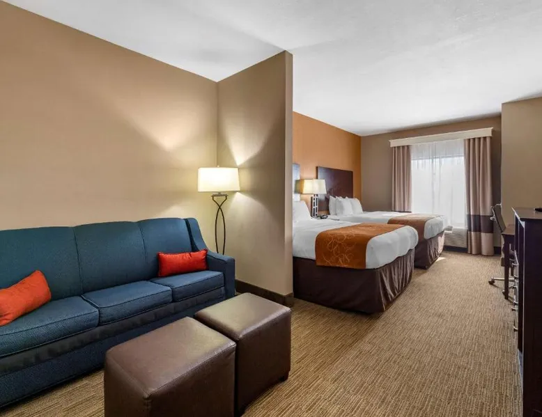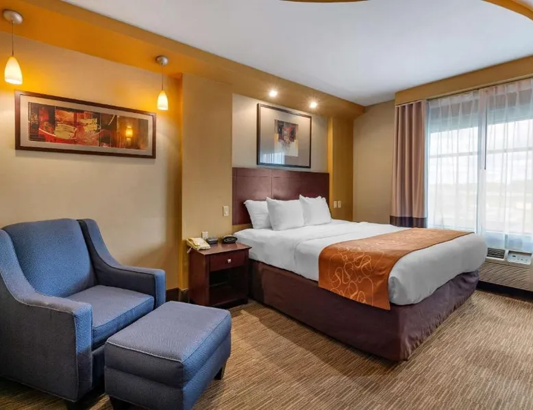 The stylishly designed Comfort Suites hotel is an ultimate luxury hotel. The hotel is conveniently located just one mile from Fort Meigs. This hotel is minutes from Bowling Green State University, the Stranahan Theater, the Toledo Zoo, the SeaGate Convention Center and COSI Toledo hands-on science museum. Additional nearby points of interest include the Toledo Speedway, Raceway Park harness racetrack, the Toledo Botanical Garden, Valentine Theater and Fifth Third Field. The Toledo Express Airport is 11 miles away. Many shopping opportunities are located minutes from this Ohio hotel. A variety of restaurants is within walking distance. Hotel amenities and features include:Free wired and wireless high-speed Internet access, board room and state-of-the-art fitness center. Your Morning Breakfast is full of hot options to start your day. Enjoy our free hot breakfast featuring eggs, meat, yogurt, fresh fruit, cereal and more, including your choice of hot waffle flavors. If you're leaving early, a Your Suite Success Grab & Go bag is available for the two hours prior to breakfast. All architecturally designed suites include:32-inch LCD television, luxurious bedding, stylish leather sofas and gallery lighting. Our whirlpool suites feature a walk-in spa rain shower with multiple shower heads and two 32-inch LCD televisions. This suite features a private bathroom and air conditioning. This suite provides a flat-screen TV.