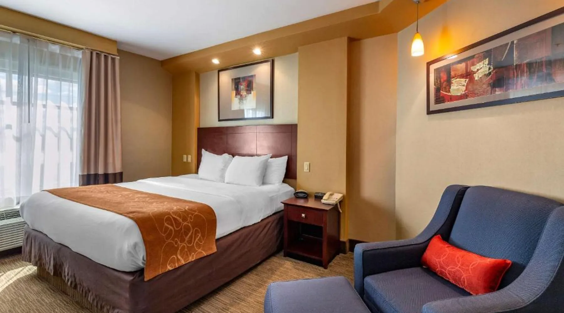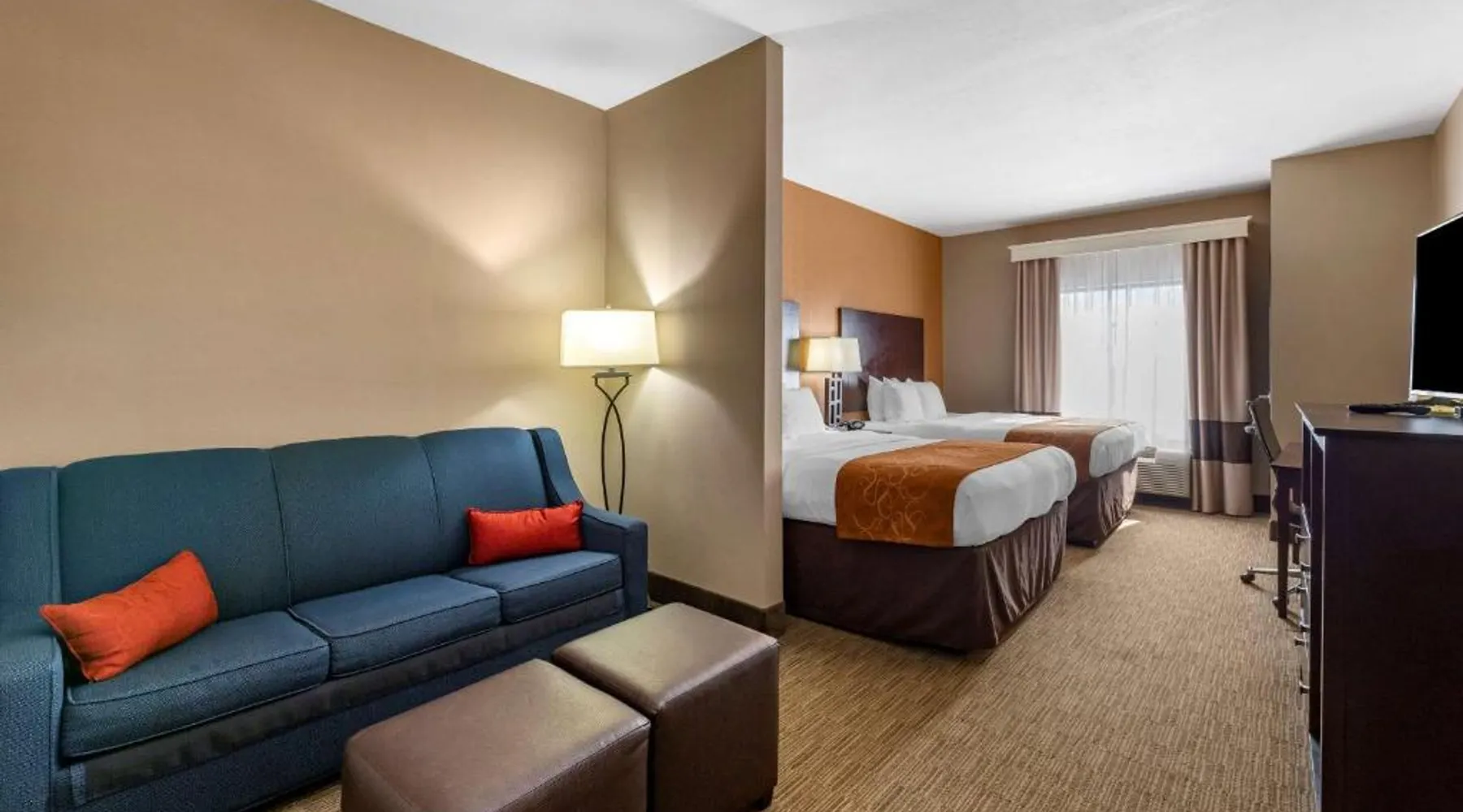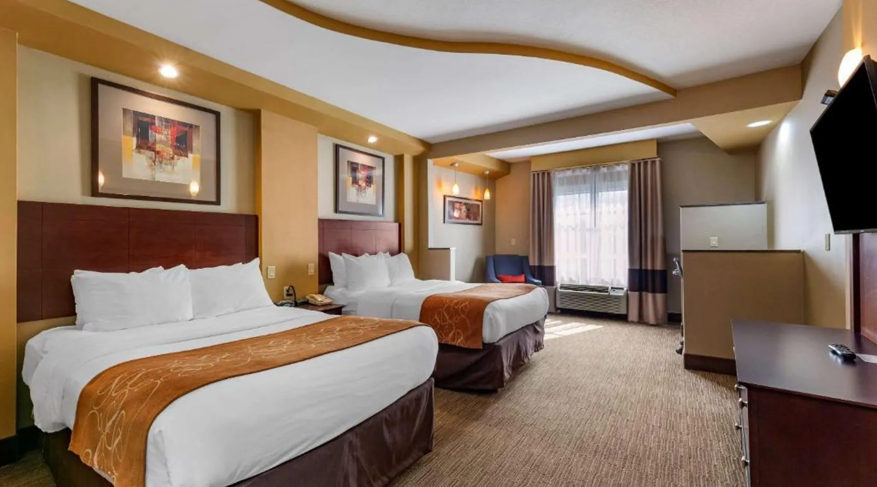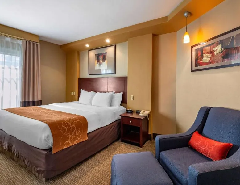 The stylishly designed Comfort Suites hotel is an ultimate luxury hotel. The hotel is conveniently located just one mile from Fort Meigs. This hotel is minutes from Bowling Green State University, the Stranahan Theater, the Toledo Zoo, the SeaGate Convention Center and COSI Toledo hands-on science museum. Additional nearby points of interest include the Toledo Speedway, Raceway Park harness racetrack, the Toledo Botanical Garden, Valentine Theater and Fifth Third Field. The Toledo Express Airport is 11 miles away. Many shopping opportunities are located minutes from this Ohio hotel. A variety of restaurants is within walking distance. Hotel amenities and features include:Free wired and wireless high-speed Internet access, board room and state-of-the-art fitness center. Your Morning Breakfast is full of hot options to start your day. Enjoy our free hot breakfast featuring eggs, meat, yogurt, fresh fruit, cereal and more, including your choice of hot waffle flavors. If you're leaving early, a Your Suite Success Grab & Go bag is available for the two hours prior to breakfast. All architecturally designed suites include:32-inch LCD television, luxurious bedding, stylish leather sofas and gallery lighting. Our whirlpool suites feature a walk-in spa rain shower with multiple shower heads and two 32-inch LCD televisions. This suite features a private bathroom and air conditioning. This suite provides a flat-screen TV.