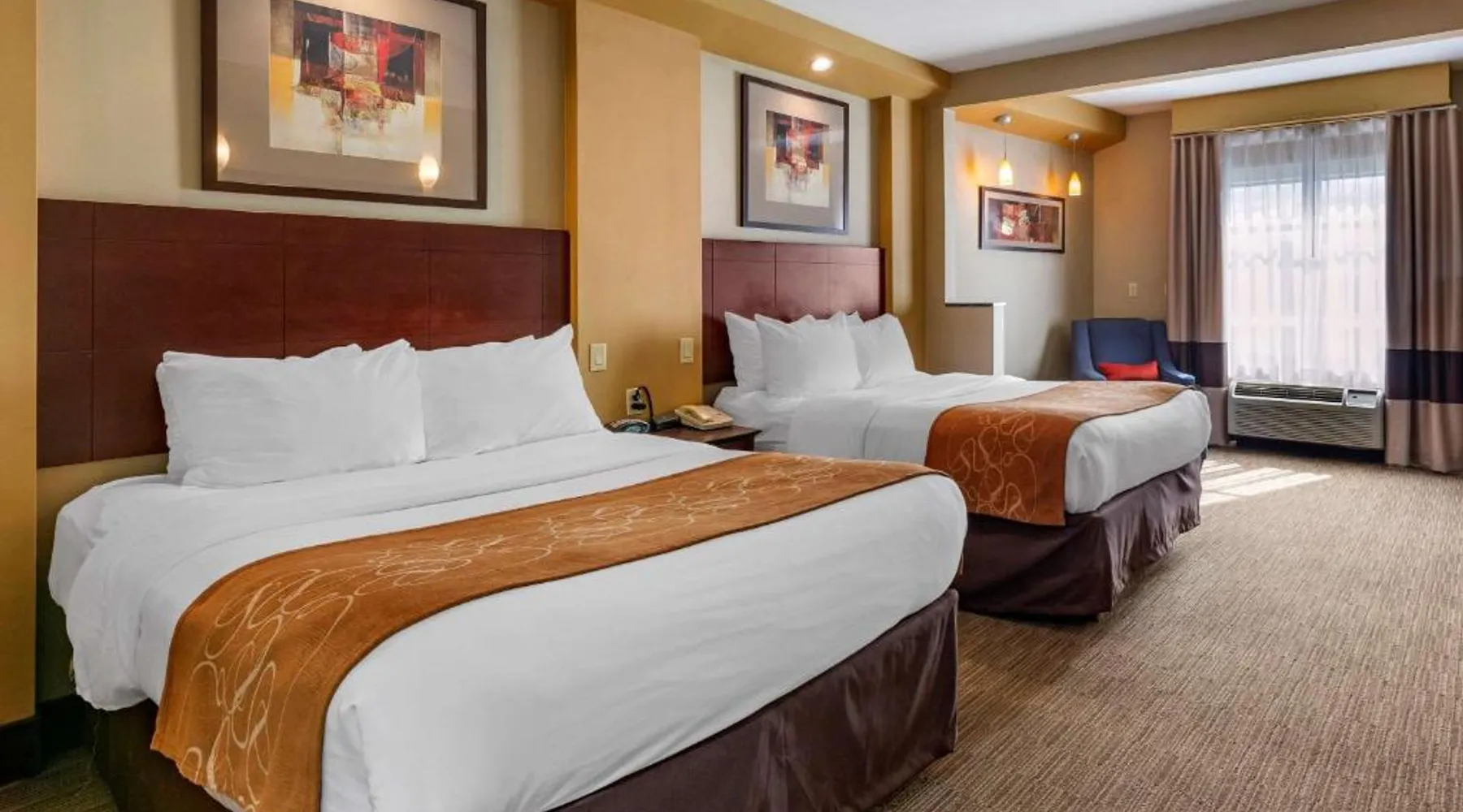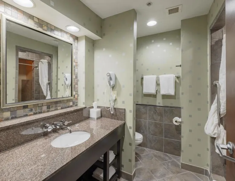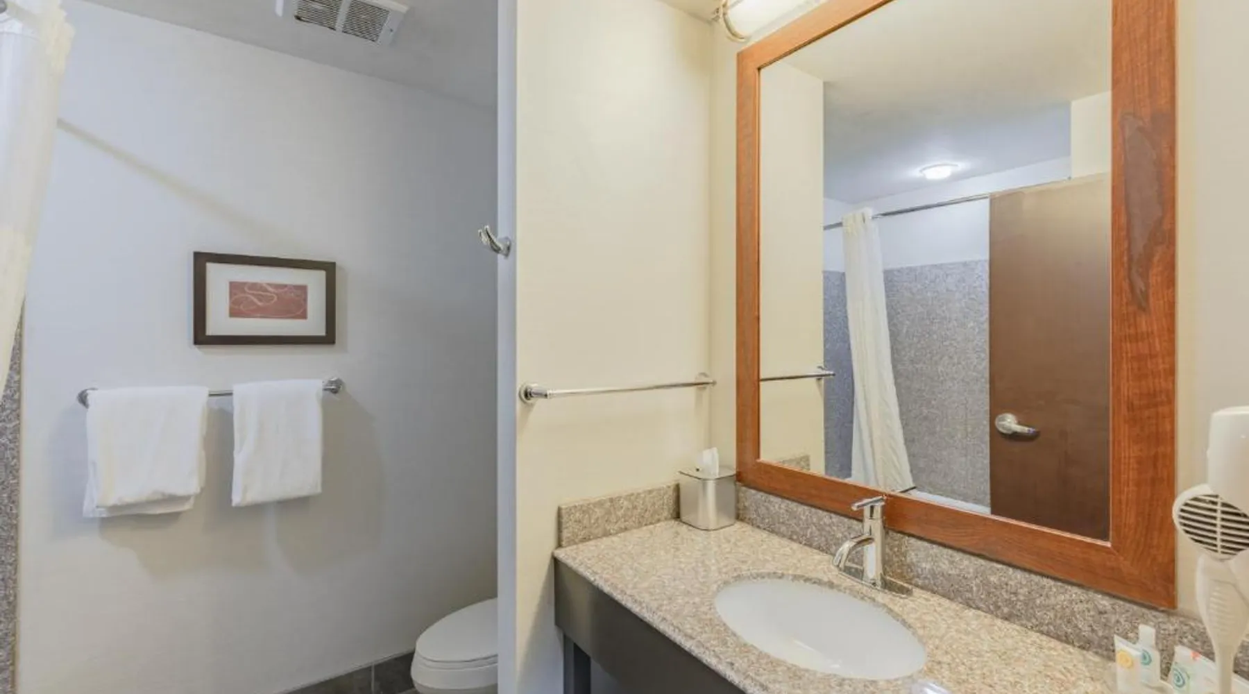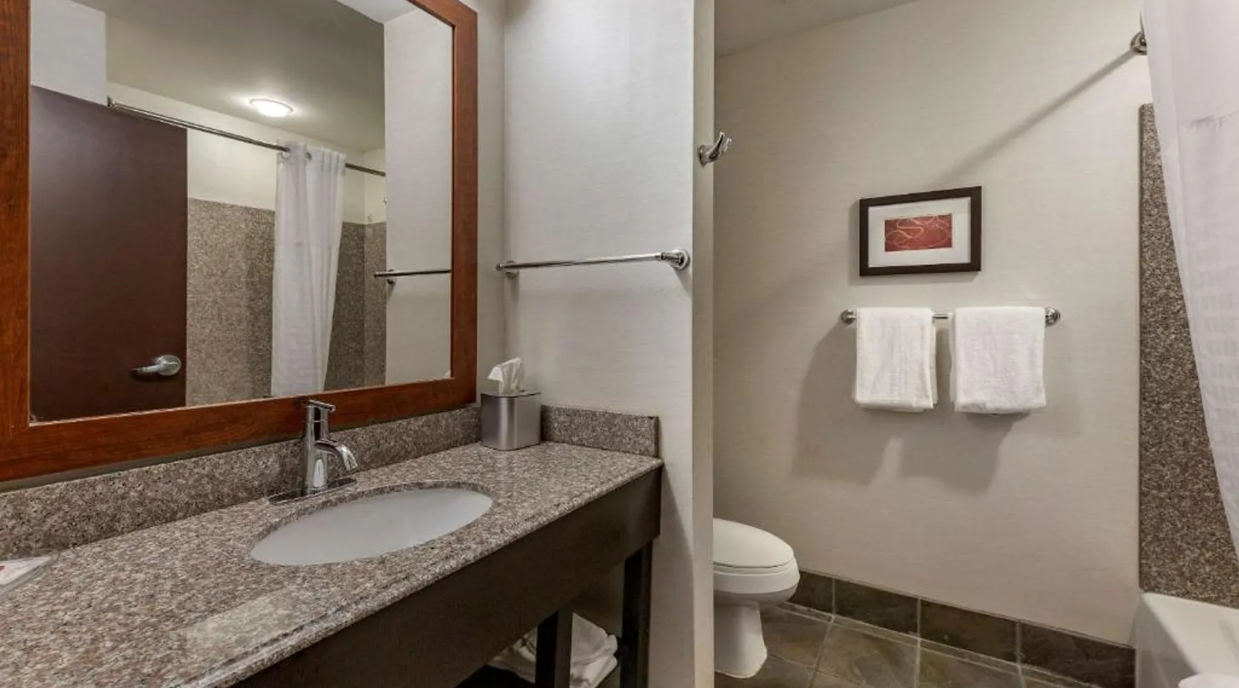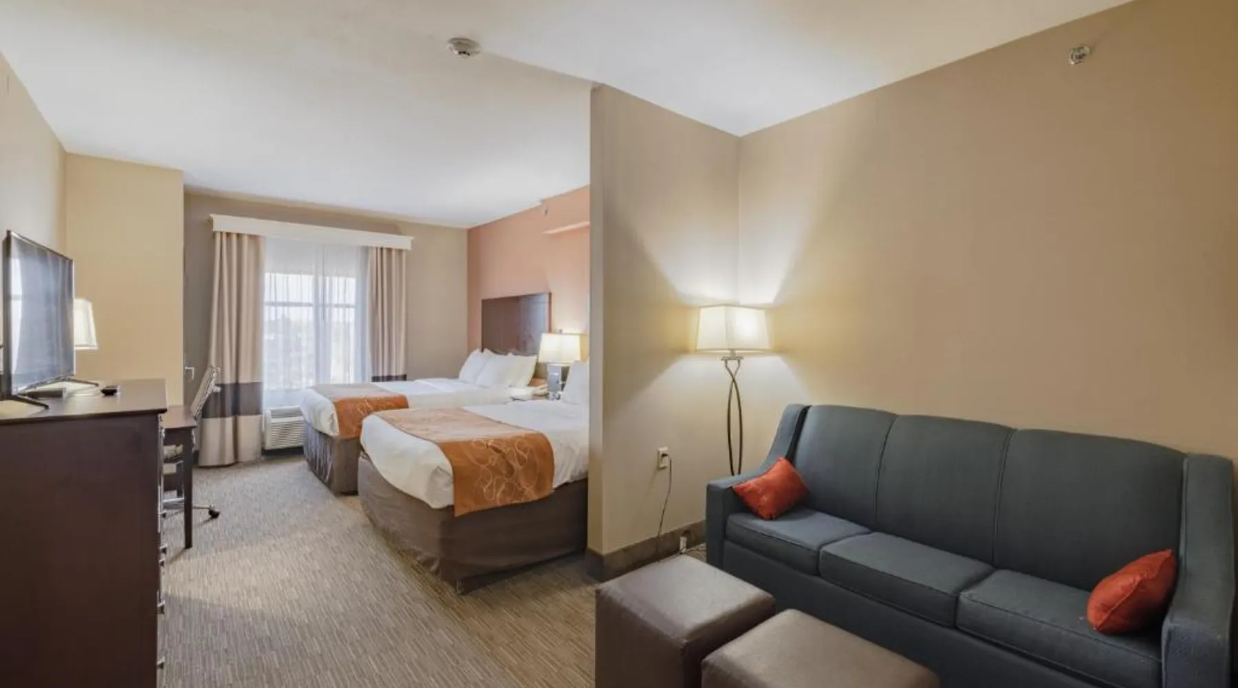 The stylishly designed Comfort Suites hotel is an ultimate luxury hotel. The hotel is conveniently located just one mile from Fort Meigs. This hotel is minutes from Bowling Green State University, the Stranahan Theater, the Toledo Zoo, the SeaGate Convention Center and COSI Toledo hands-on science museum. Additional nearby points of interest include the Toledo Speedway, Raceway Park harness racetrack, the Toledo Botanical Garden, Valentine Theater and Fifth Third Field. The Toledo Express Airport is 11 miles away. Many shopping opportunities are located minutes from this Ohio hotel. A variety of restaurants is within walking distance. Hotel amenities and features include:Free wired and wireless high-speed Internet access, board room and state-of-the-art fitness center. Your Morning Breakfast is full of hot options to start your day. Enjoy our free hot breakfast featuring eggs, meat, yogurt, fresh fruit, cereal and more, including your choice of hot waffle flavors. If you're leaving early, a Your Suite Success Grab & Go bag is available for the two hours prior to breakfast. All architecturally designed suites include:32-inch LCD television, luxurious bedding, stylish leather sofas and gallery lighting. Our whirlpool suites feature a walk-in spa rain shower with multiple shower heads and two 32-inch LCD televisions. This suite features a private bathroom and air conditioning. This suite provides a flat-screen TV.