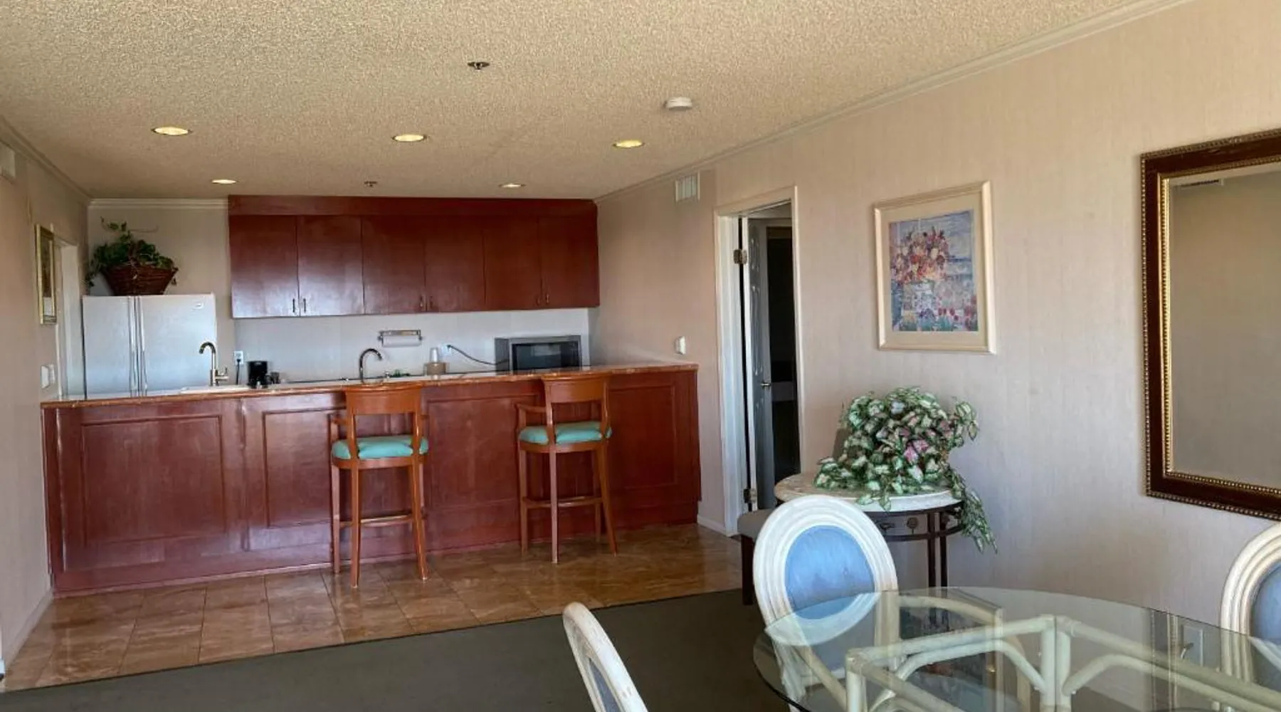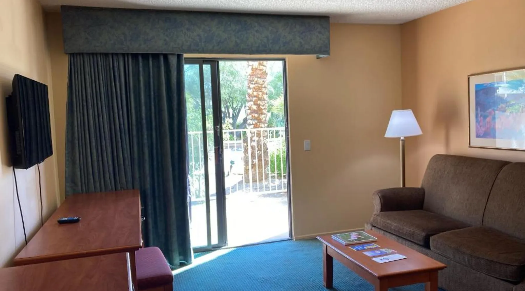Located off California Highway 10, this Desert Hot Springs resort features a spa and wellness center, a 24-hour year round outdoor pool and hot tub and an on-site restaurant. Palm Springs International Airport is 12 miles away. Free WiFi, a cable TV, a DVD player, a microwave and a compact fridge are included in all of the comfortable rooms at Miracle Springs Resort and spa. Guest rooms offer ample seating area and patios or balconies with poolside or mountain views. Offering indoor and outdoor dining, Capri Restaurant and bar is located on-site at Miracle Springs Resort. Sands RV & Golf Resort is 10 minutes’ drive away from the resort. Palm Springs Aerial Tramway is 10 miles away. Joshua Tree National Park is 35 minutes’ drive north of the resort. This suite offers a patio with mountain views and a spacious seating area with sofa bed. Please note that the rate is based on 2 guests. Maximum occupancy is 4 (see Hotel Policies).
