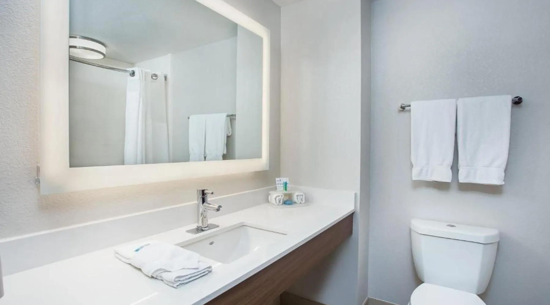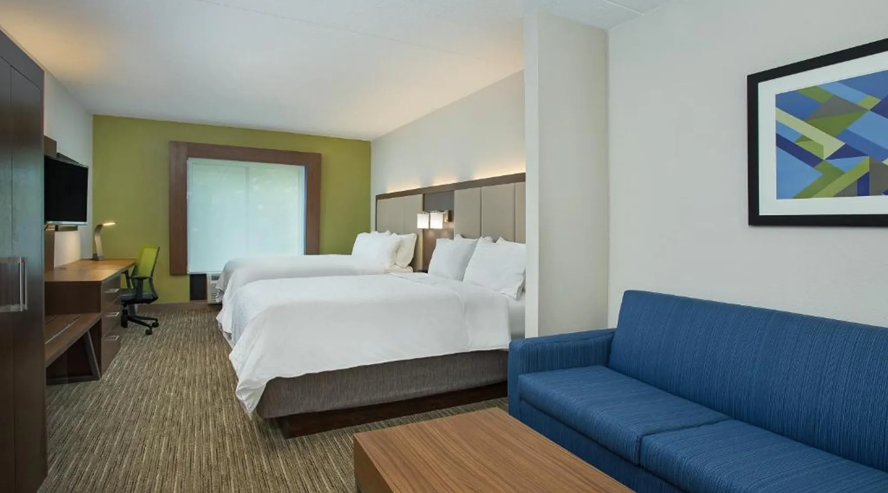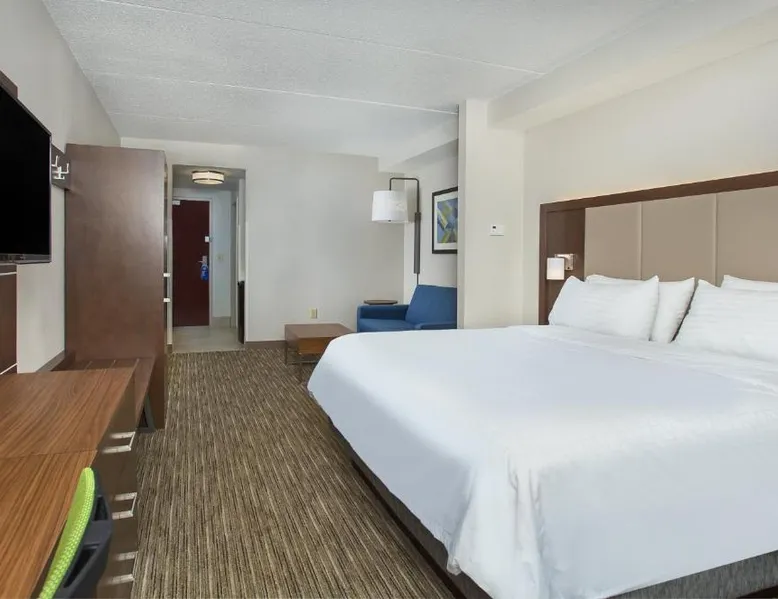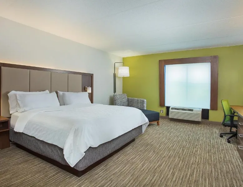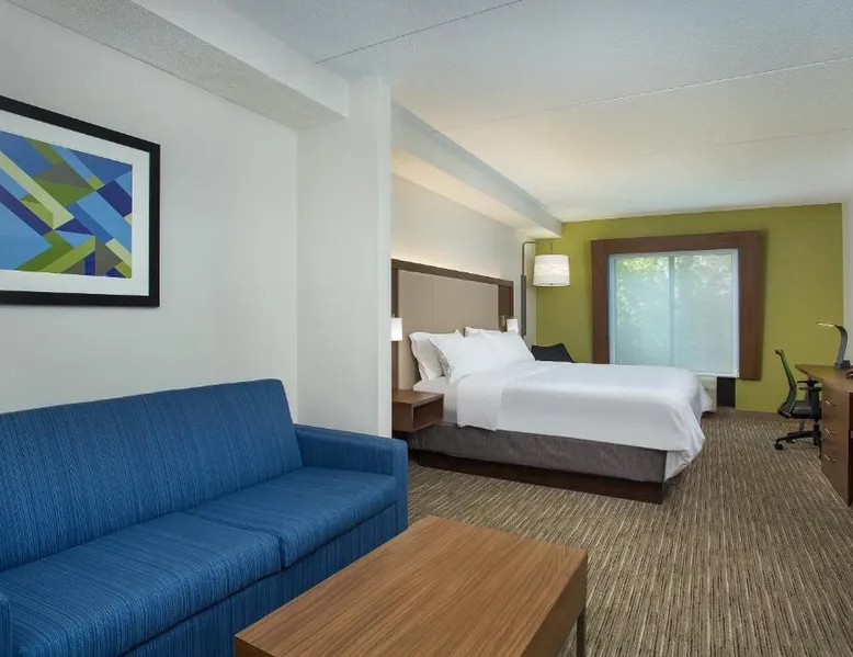 Comfortable Accommodations: Holiday Inn Express & Suites Lebanon-Nashville Area by IHG in Lebanon offers rooms with air-conditioning, private bathrooms, and free WiFi. Each room includes a work desk, refrigerator, and TV. Leisure Facilities: Guests can enjoy a saltwater swimming pool, indoor pool, and fitness center. Additional amenities include a lounge, fitness room, and 24-hour front desk. Convenient Location: Located 26 mi from Nashville International Airport, the hotel is near attractions such as The Hermitage (21 mi) and Johnny Cash Museum (28 mi). Free on-site parking is available. Guest Satisfaction: Highly rated for room cleanliness, breakfast provided by the property, and attentive staff. This room features a microwave, small refrigerator, and a flat-screen cable TV.