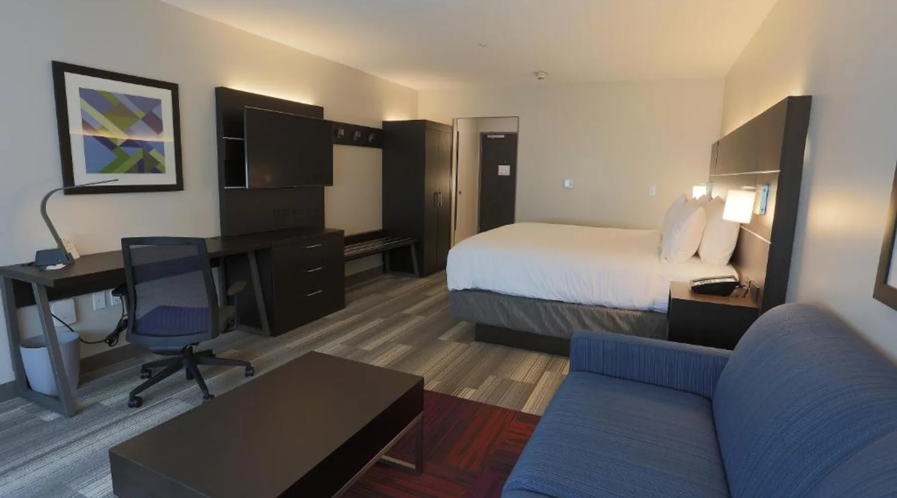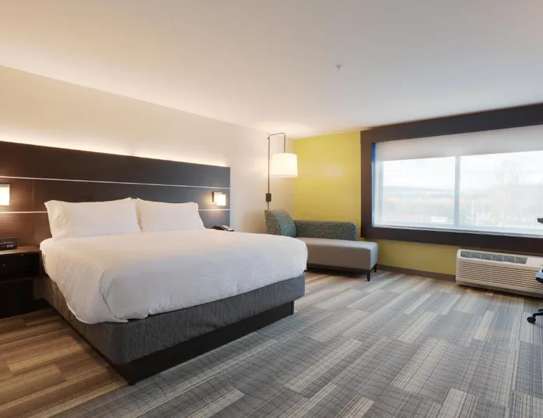 Comfortable Accommodations: Holiday Inn Express Oneonta by IHG in Oneonta offers air-conditioned rooms with private bathrooms, free WiFi, and modern amenities. Each room includes a tea and coffee maker, hairdryer, free toiletries, shower, TV, and work desk. Exceptional Facilities: Guests can enjoy an indoor swimming pool, fitness room, outdoor fireplace, and outdoor seating area. Additional facilities include a lounge, minimarket, business area, and free on-site parking. Convenient Location: Located 62 mi from Greater Binghamton Airport, the hotel is 23 mi from Doubleday Field and Baseball Hall of Fame. Suny Oneonta is 2.5 mi away, providing easy access to local attractions. Guest Satisfaction: Highly rated for its breakfast, attentive staff, and room cleanliness, the property ensures a pleasant stay for all visitors. This room features a coffee maker, microwave, refrigerator, iron with ironing board, in-room safe, hairdryer and cable TV. It is equipped with multiple outlets as well as a USB port. Bath amenities are provided as well.