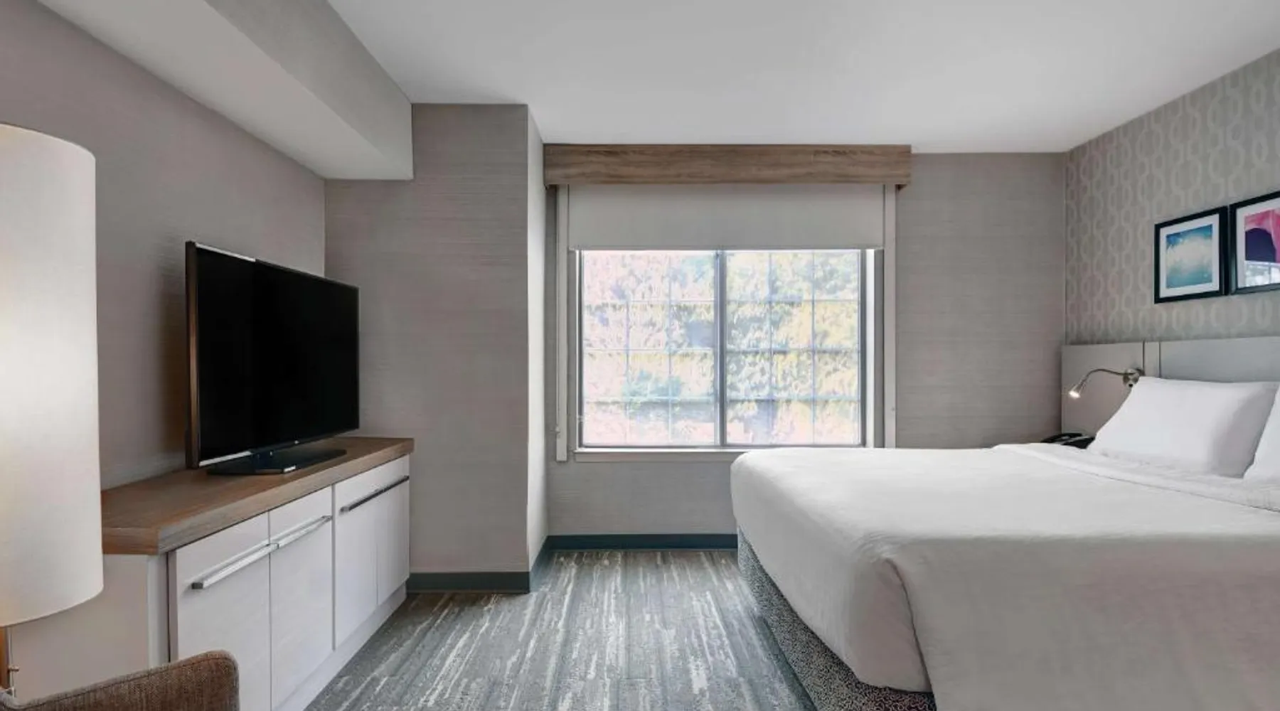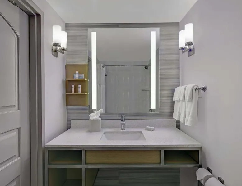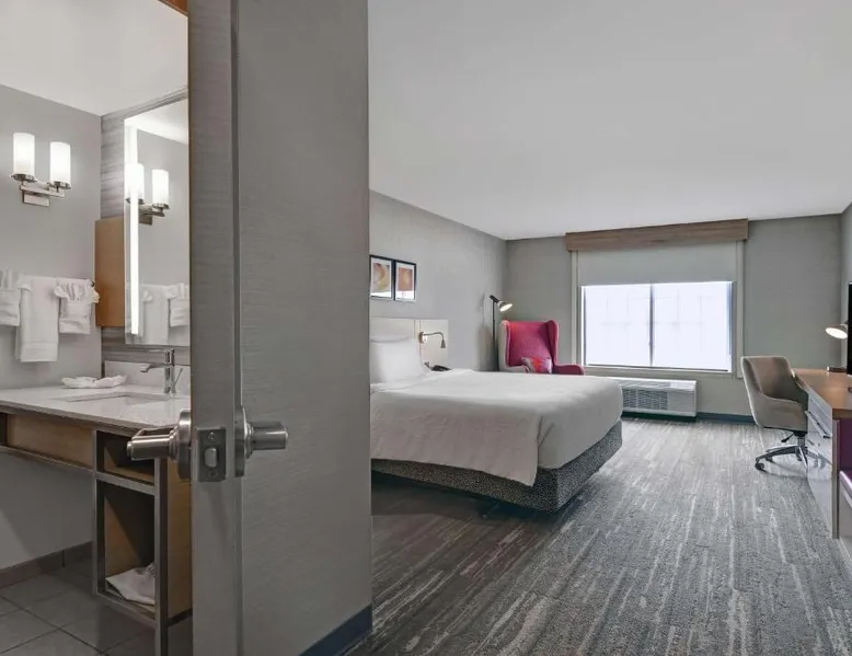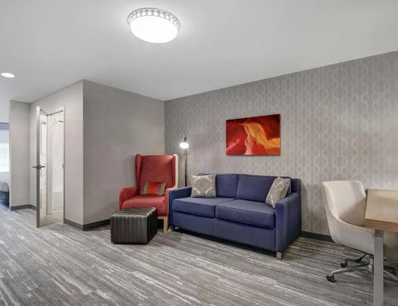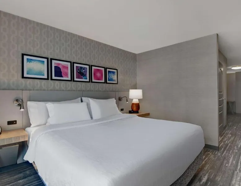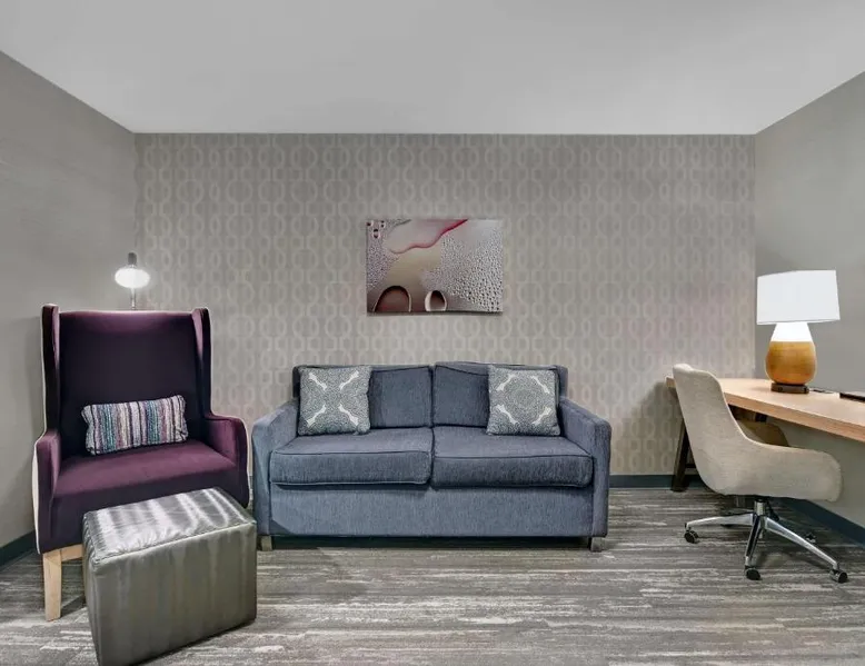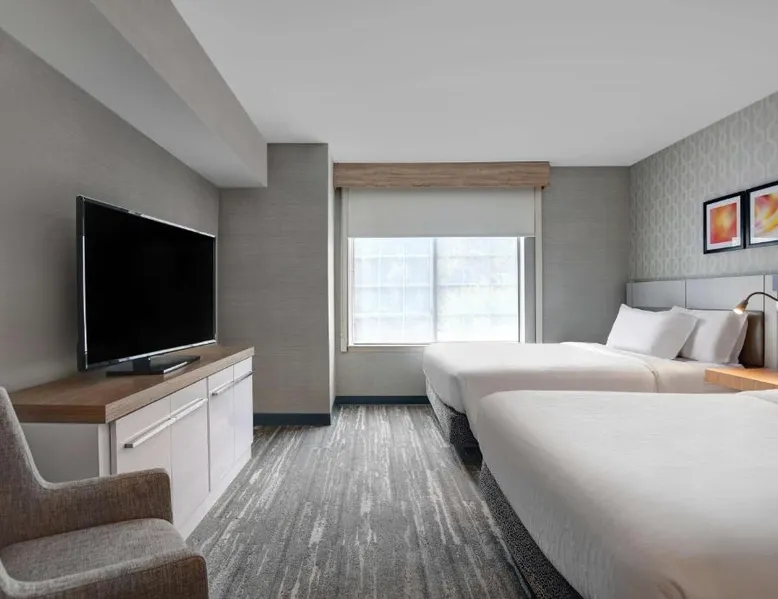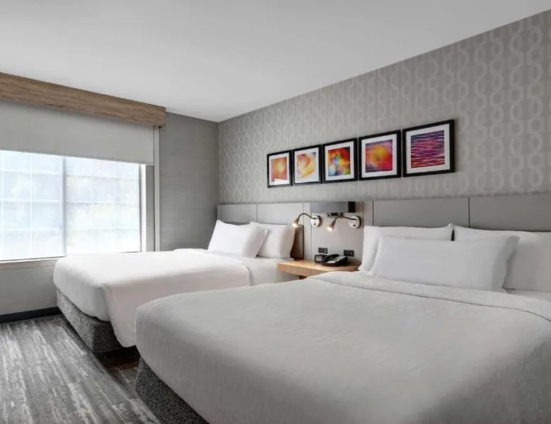 Comfortable Accommodations: Hilton Garden Inn Hamilton in Bordentown offers family rooms with air-conditioning, free WiFi, and modern amenities. Each room includes a work desk, refrigerator, and TV, ensuring a pleasant stay. Leisure Facilities: Guests can enjoy an indoor swimming pool, fitness center, and a beautifully maintained garden. The terrace provides a relaxing outdoor space, while the outdoor fireplace adds to the ambiance. Dining Options: The on-site restaurant serves a continental and American breakfast, as well as dinner. Additional dining options include a bar and outdoor seating areas, catering to diverse preferences. Convenient Location: Located 12 mi from Trenton-Mercer Airport, the hotel is near attractions such as Princeton University (14 mi) and Sesame Place (15 mi). Free on-site parking is available, and the property staff provide excellent service support. This quadruple room is air-conditioned and features a flat-screen TV with cable channels, a tea and coffee maker and heating. The unit offers 2 beds.