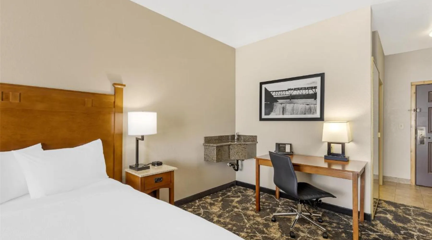 Comfortable Accommodations: Rooms feature private bathrooms, tea and coffee makers, hairdryers, free toiletries, and modern amenities. Guests enjoy balconies with river views, kitchenettes, and work desks. Exceptional Facilities: The hotel offers a fitness center, sun terrace, indoor swimming pool, and free WiFi. Additional facilities include a hot tub, outdoor fireplace, and electric vehicle charging station. Convenient Location: Located in Great Falls, the property is 3.7 mi from Great Falls International Airport. Nearby attractions include hiking and cycling trails. Guest Services: Guests appreciate the swimming pool, attentive staff, and the hotel’s convenient location. Free on-site private parking and a 24-hour front desk enhance the stay. The spacious double room offers a tea and coffee maker, a wardrobe, as well as a private bathroom boasting a bath or a shower and a hairdryer. Rooms on the upper floors are reachable by elevator. The unit has 1 bed.