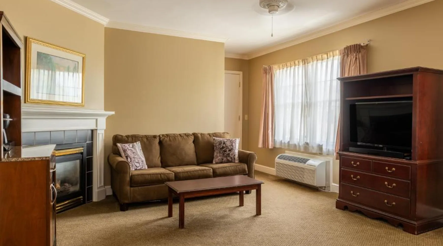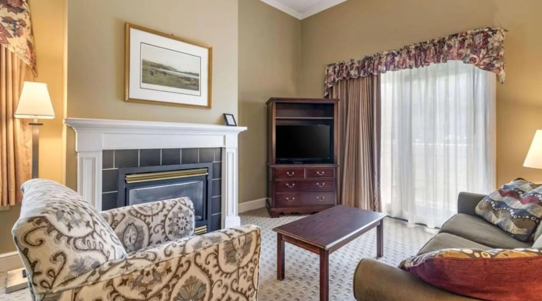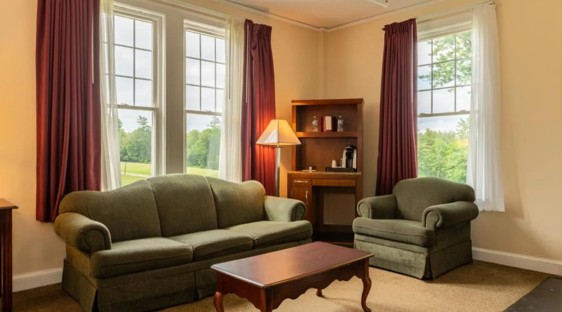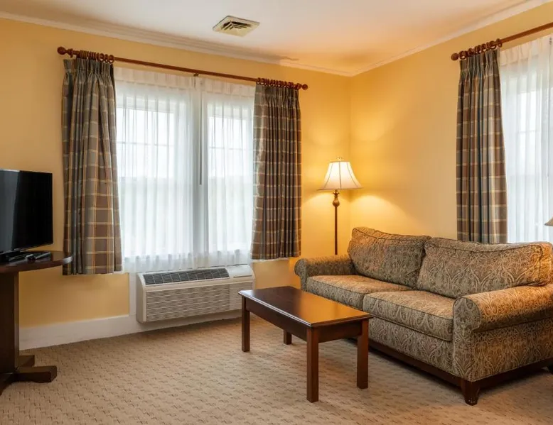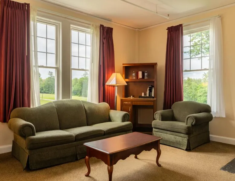 Comfortable Accommodations: The Bethel Resort & Suites in Bethel offers comfortable rooms with air-conditioning, balconies, and private bathrooms. Each room includes a kitchenette, dining area, and modern amenities. Exceptional Facilities: Guests can enjoy a sauna, fitness center, water sports facilities, and a year-round outdoor swimming pool. Additional amenities include a terrace, garden, tennis court, and free WiFi throughout the property. Dining Experience: The on-site restaurant serves American cuisine with vegetarian options. Breakfast is available as an American or à la carte, and lunch and dinner are served in a welcoming atmosphere. Activities and Location: The resort offers fishing, skiing, walking tours, canoeing, hiking, and cycling. Located 62 mi from Augusta State Airport, guests appreciate the convenient location, fireplace, and attentive staff. Located in the Main Inn, this spacious suite features a deck, a gas fireplace, and a spa bath. It has air conditioning and two 39-inch flat-screen TVs. The living room has a sofa bed.