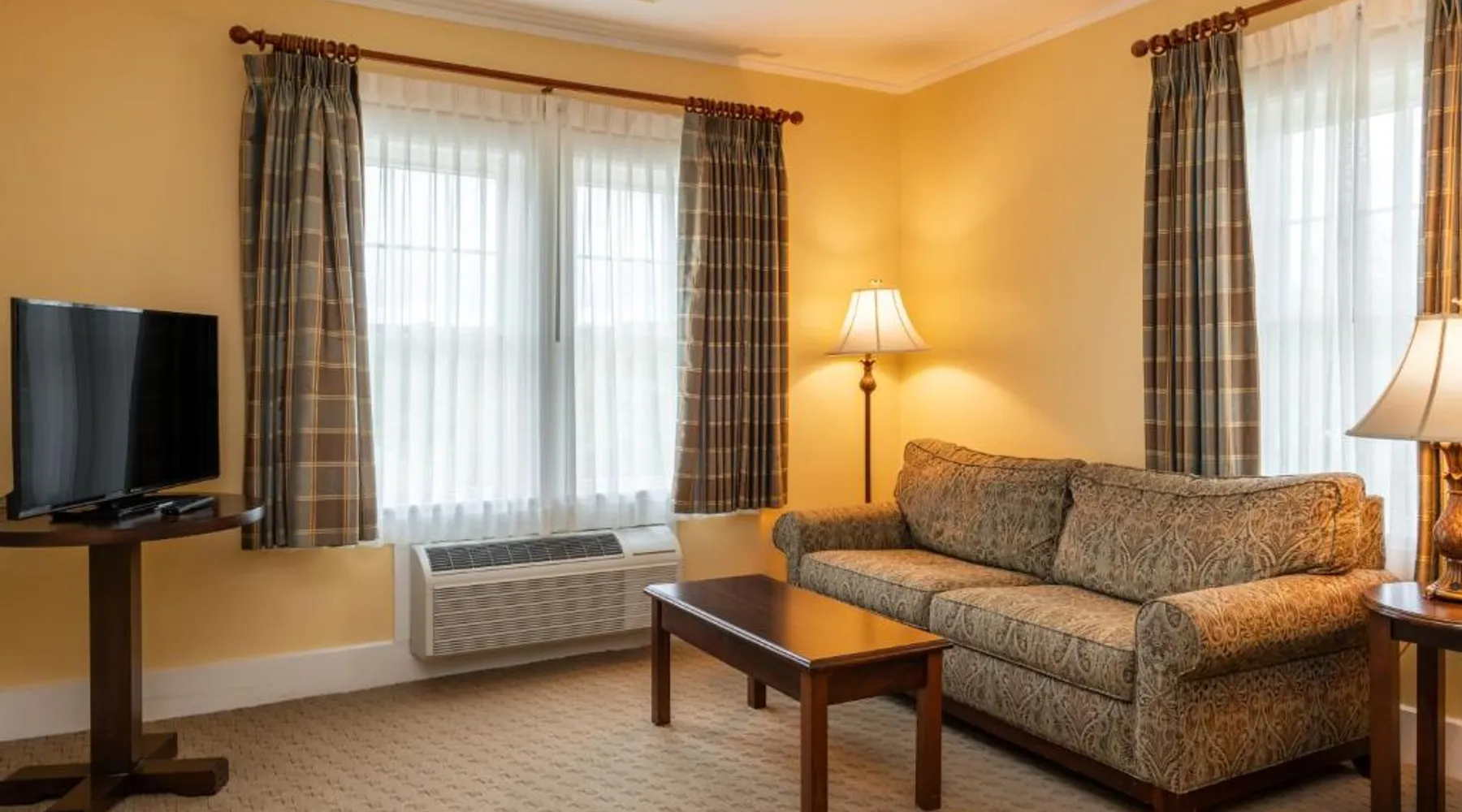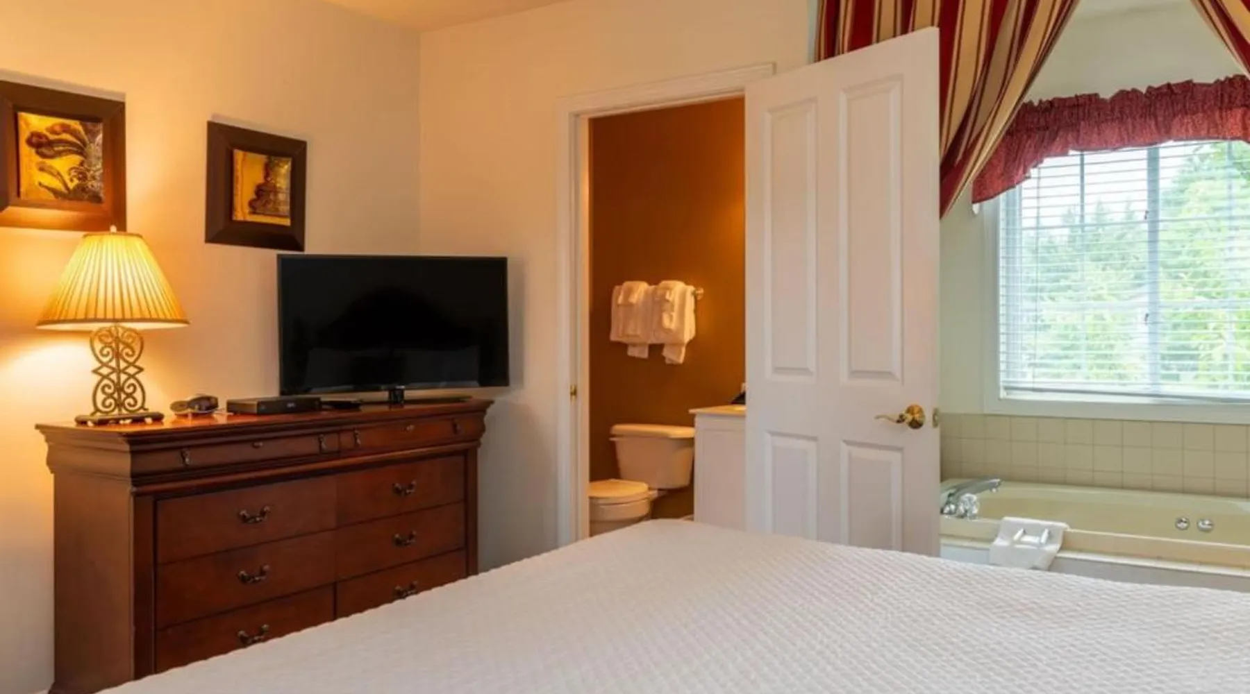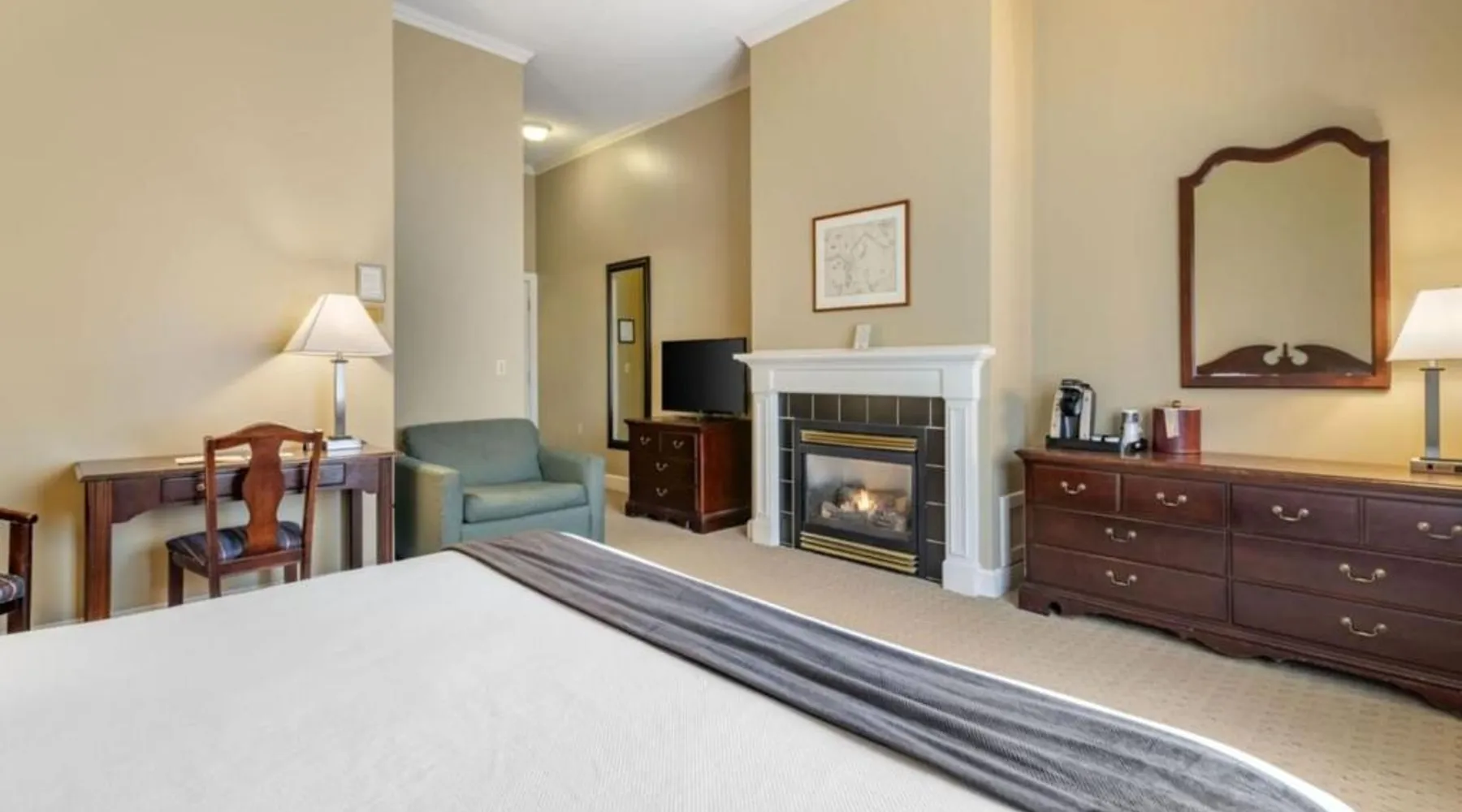 Comfortable Accommodations: The Bethel Resort & Suites in Bethel offers comfortable rooms with air-conditioning, balconies, and private bathrooms. Each room includes a kitchenette, dining area, and modern amenities. Exceptional Facilities: Guests can enjoy a sauna, fitness center, water sports facilities, and a year-round outdoor swimming pool. Additional amenities include a terrace, garden, tennis court, and free WiFi throughout the property. Dining Experience: The on-site restaurant serves American cuisine with vegetarian options. Breakfast is available as an American or à la carte, and lunch and dinner are served in a welcoming atmosphere. Activities and Location: The resort offers fishing, skiing, walking tours, canoeing, hiking, and cycling. Located 62 mi from Augusta State Airport, guests appreciate the convenient location, fireplace, and attentive staff. Located in the Main Inn, this spacious suite features a deck, a gas fireplace, and a spa bath. It has air conditioning and two 39-inch flat-screen TVs. The living room has a sofa bed.