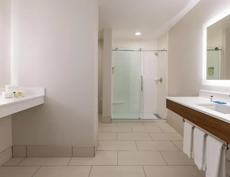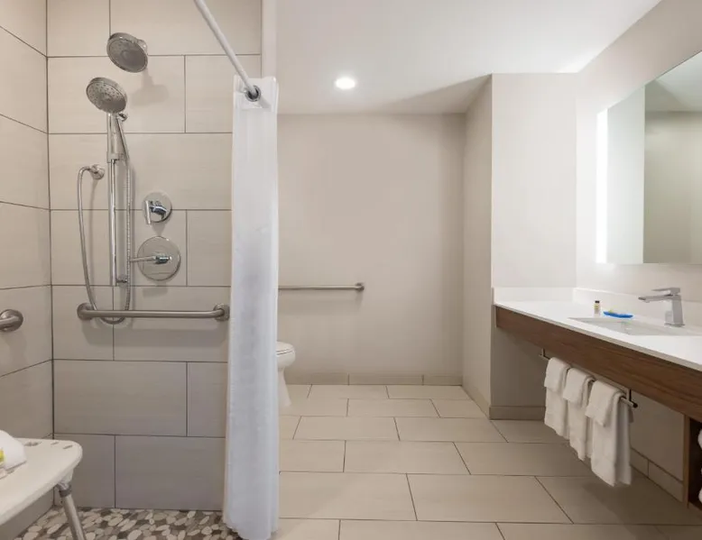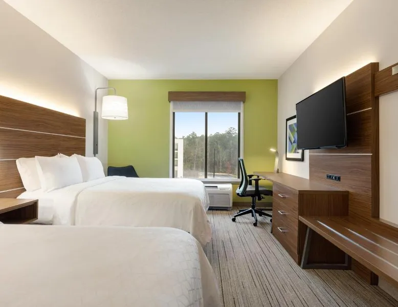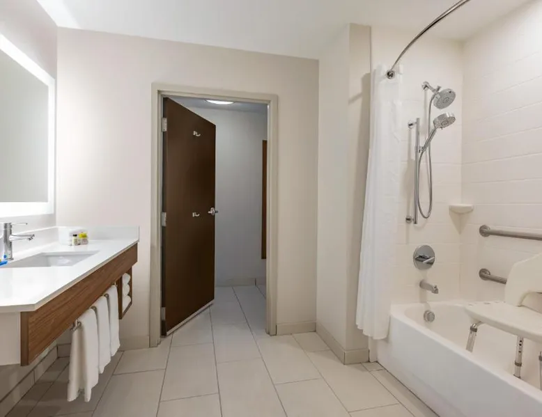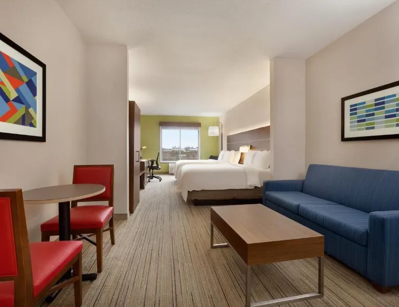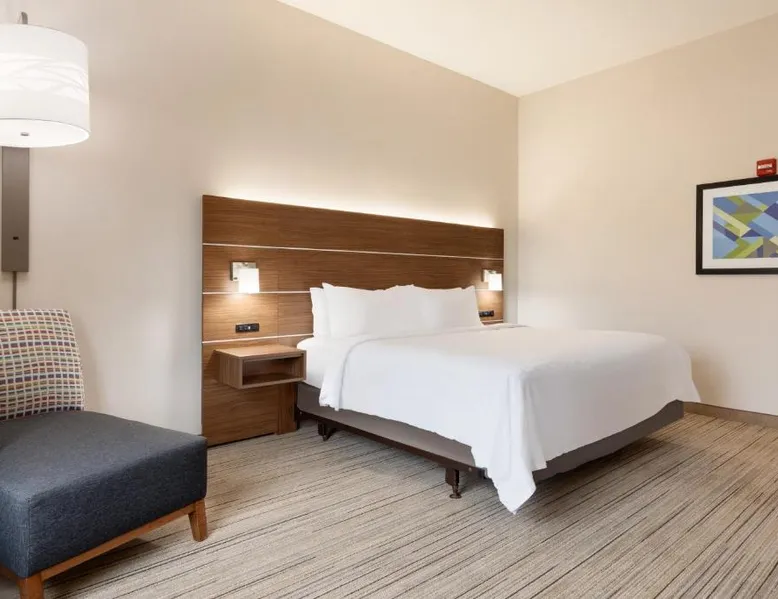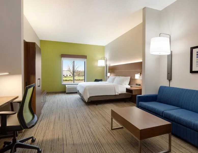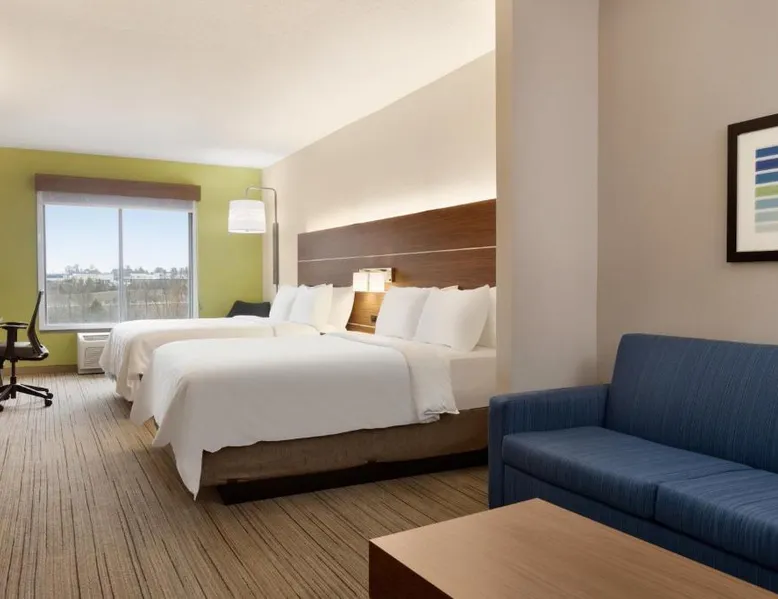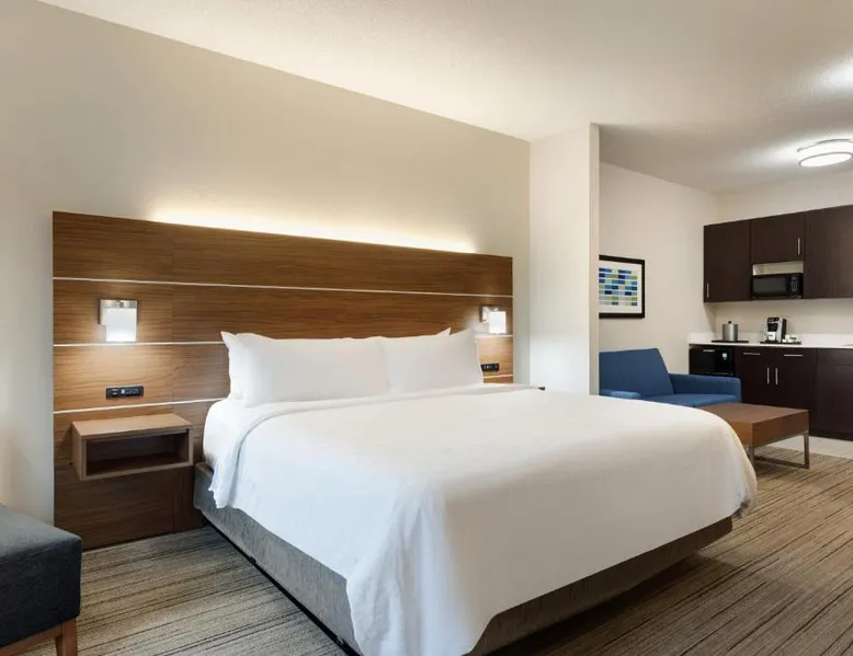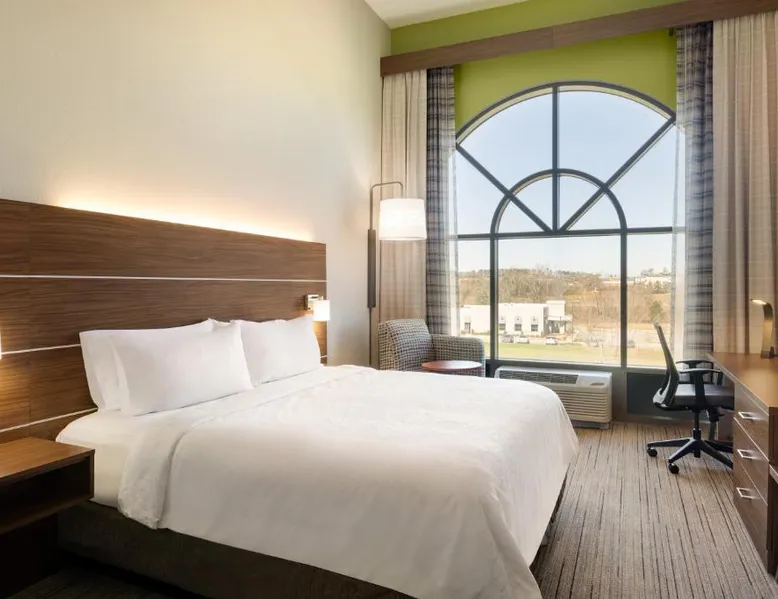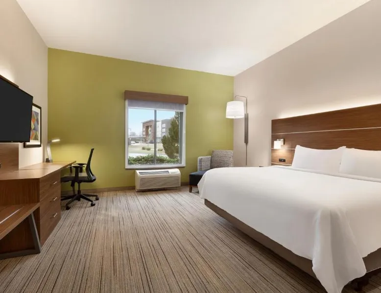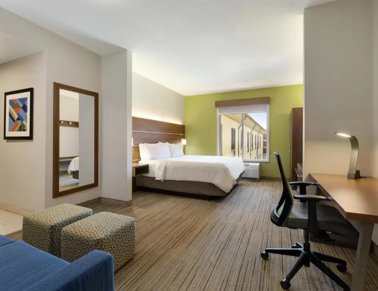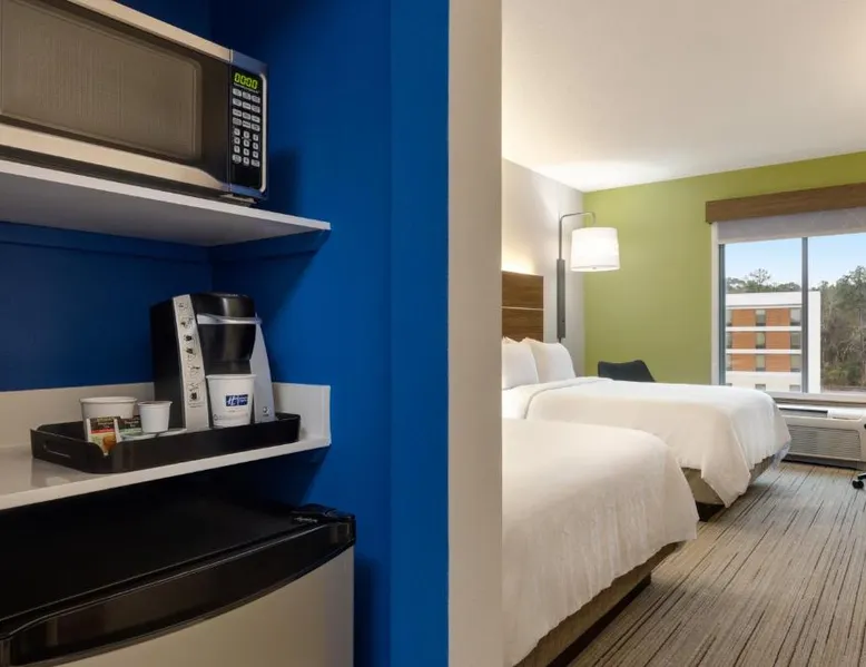 Comfortable Accommodations: Holiday Inn Express Hotel & Suites Opelika Auburn by IHG in Opelika offers air-conditioned rooms with private bathrooms, free WiFi, and modern amenities. Guests enjoy amenities such as a fitness center, spa and wellness center, and a seasonal outdoor swimming pool. Dining and Facilities: The hotel provides an American buffet breakfast with juice, fresh pastries, pancakes, and fruits. Additional facilities include a lounge, fitness room, 24-hour front desk, minimarket, daily housekeeping service, business area, outdoor seating area, car hire, and luggage storage. Prime Location: Located 33 mi from Columbus Airport, the hotel is near attractions like Auburn University (6.2 mi), Jordan Hare Stadium (6.8 mi), and The Gallery on Railroad (3.7 mi). Guests appreciate the room cleanliness, convenient location, and attentive property staff. This room features a microwave, refrigerator, and tea- and coffee-making facilities.