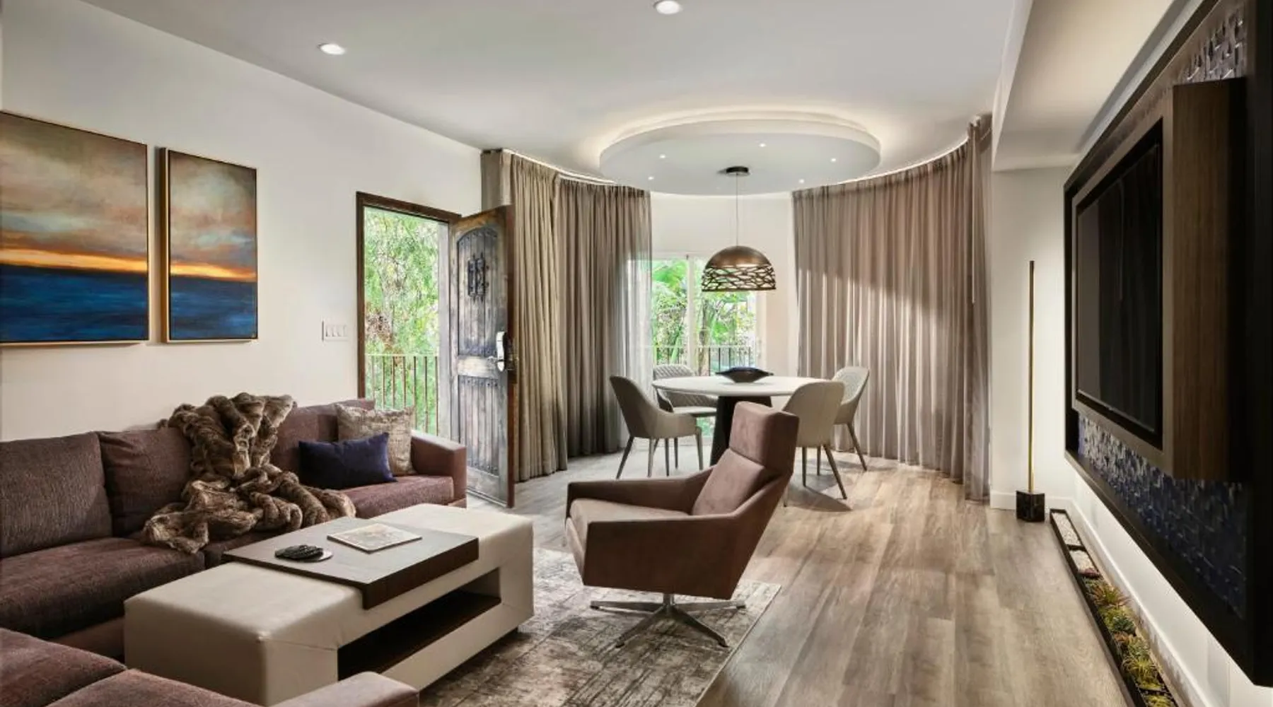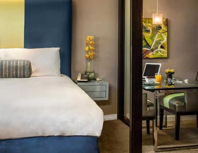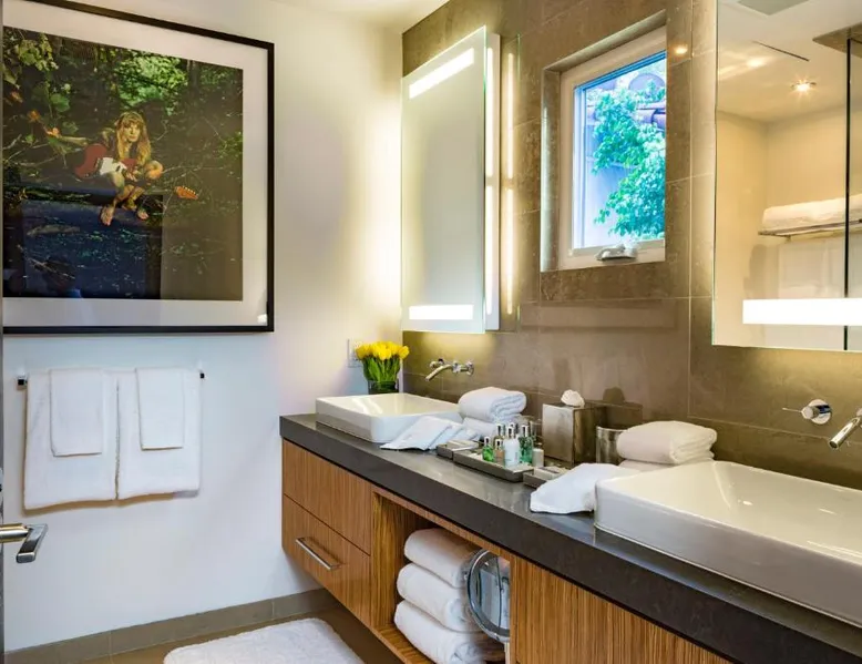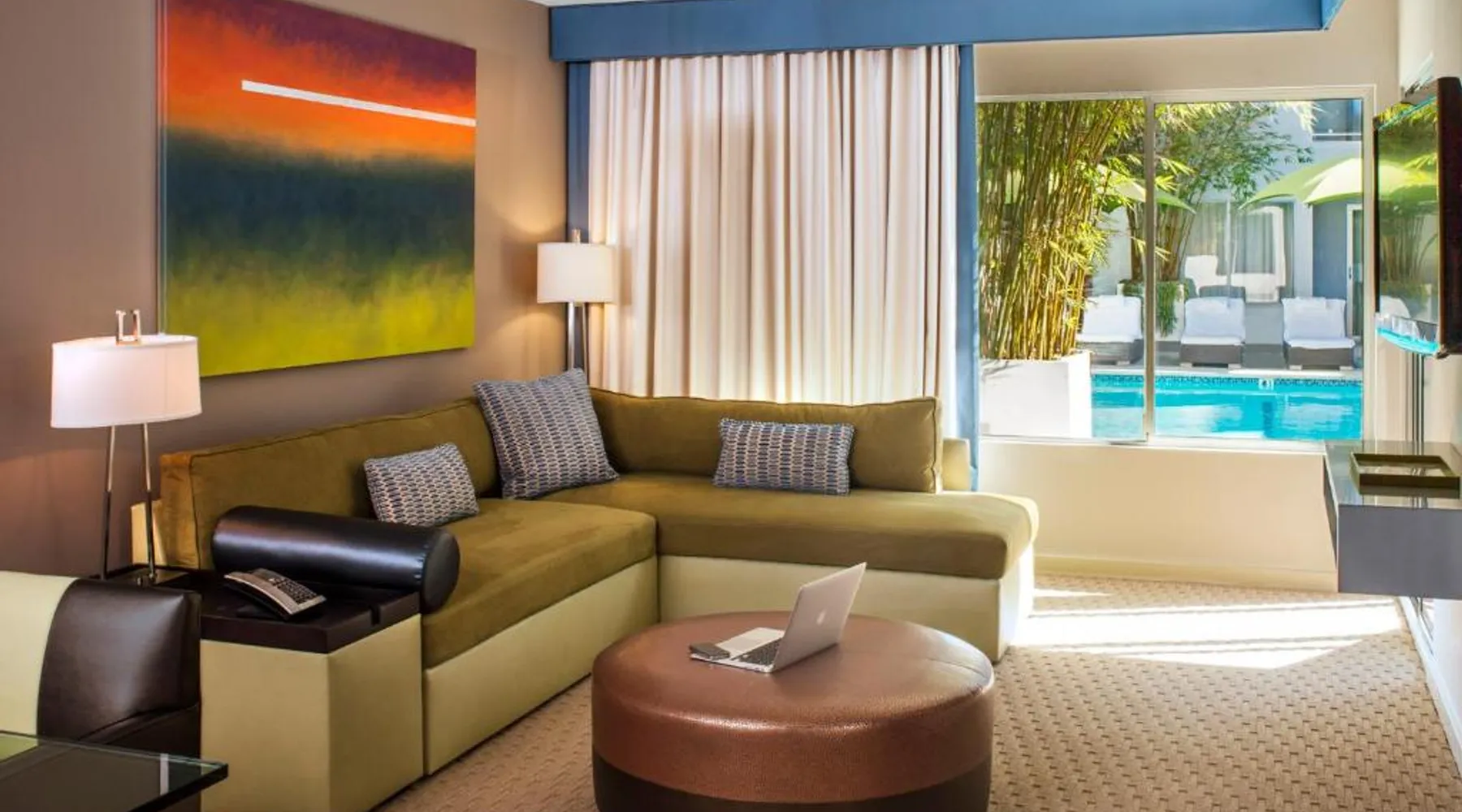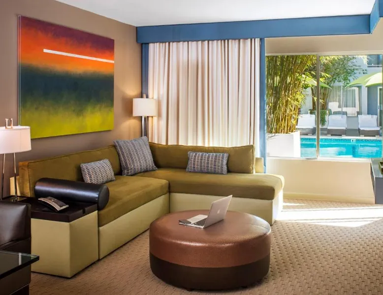 The Sunset Marquis Hotel Los Angeles is located in the heart of West Hollywood. Hidden away in a tree lined cul-de-sac, it is just steps from the famed sidewalks of the Sunset Strip in West Hollywood. The property features 2 outdoor pools and an on-site restaurant. Villas at the property include unique amenities like private elevators, kitchens,dining rooms, televisions, and living rooms. Suites include similar amenities with toiletries and Bluetooth enabled mobile speakers. There is an on-site bar available at the hotel. There is also a fitness center and spa available on-site. Guests can enjoy the gardens and 24-hour front desk. The property also is home to successful recording studios and an art gallery. The Sunset Strip is less than 0.6 mi from the property, while the Farmer's Market Los Angeles is 1.7 mi away. Dolby Theater and the Hollywood Walk of Fame are 2.3 mi away. Los Angeles International Airport is 12 mi from the property. 600 square feet. Additional surcharge: Taxes: 15.5%. Please note that additional surcharges are not included in the total amount of the booking and have to be paid in addition at the hotel.