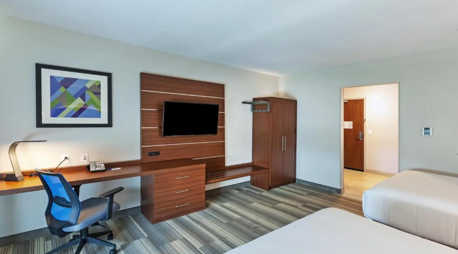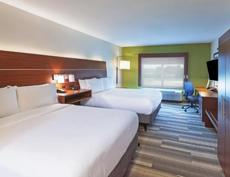 Comfortable Accommodations: Holiday Inn Express & Suites Tulsa South - Woodland Hills by IHG in Tulsa offers rooms with air-conditioning, private bathrooms, and modern amenities. Guests enjoy free WiFi, a fitness center, and a seasonal outdoor swimming pool. Dining and Facilities: The hotel provides a continental buffet breakfast with warm dishes, fresh pastries, pancakes, cheese, and juice. Additional facilities include a lounge, outdoor seating area, and free on-site private parking. Prime Location: Located 11 mi from Tulsa International Airport, the hotel is near attractions such as Rhema Bible College (3.7 mi) and Philbrook Museum (9.9 mi). Guests appreciate the room cleanliness, convenient location, and nearby shops. The double room includes a private bathroom fitted with a shower and a hairdryer. The spacious double room offers air conditioning, a tea and coffee maker, a wardrobe, a safe deposit box, as well as a flat-screen TV with cable channels. The unit has 1 bed.