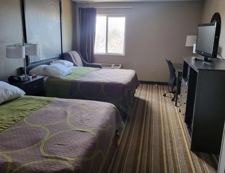 This motel is located 15 minutes outside of downtown Aurora, Illinois and 25 minutes from Splash Country Water Park. Free in-room Wi-Fi. This Aurora Super 8 provides accommodations equipped with microwaves and refrigerators. They are furnished with a seating area and cable TV. A hair dryer and ironing facilities are provided. A grab and go breakfast is served every morning at the Aurora Naperville Super 8. The front desk is open 24 hours a day. Laundry services are available. The Hollywood Casino is less than 20 minutes from Super 8 Aurora/Naperville. Downtown Chicago is less than an hour from the motel. This air-conditioned double room is consisted of of a flat-screen TV with cable channels and a private bathroom. The unit has 1 bed.