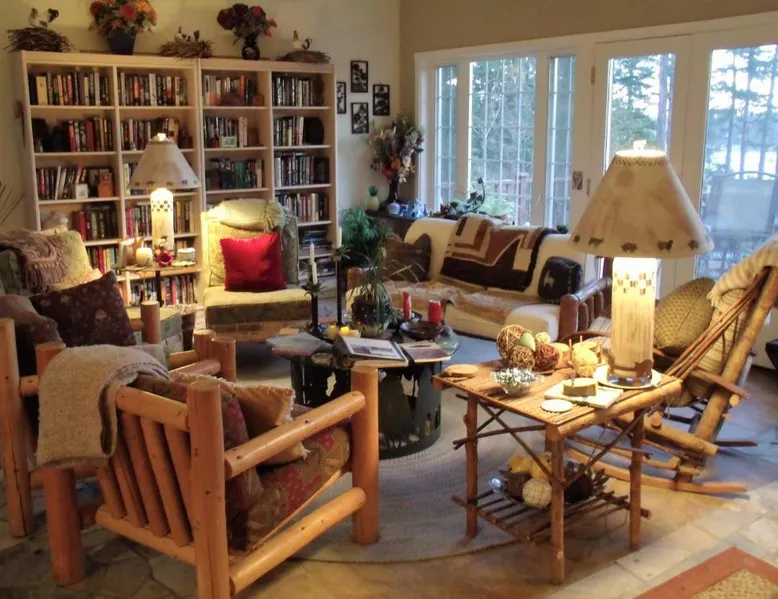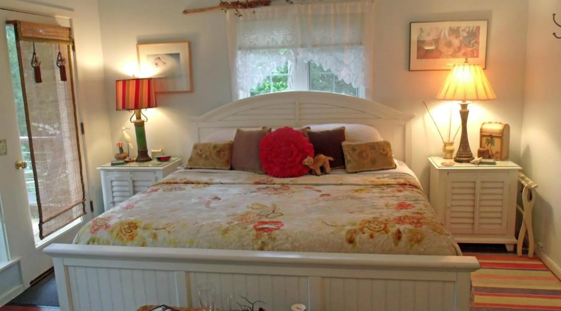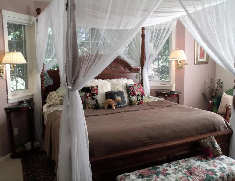 Comfortable Accommodations: Inn to the Woods in Friday Harbor offers adults-only rooms with private bathrooms, balconies, and modern amenities. Each room includes a private entrance, free WiFi, and a flat-screen TV. Exceptional Facilities: Guests can relax on the sun terrace or enjoy the outdoor fireplace. The property features a hot tub, outdoor seating area, and live music. Additional services include room service, car hire, and free on-site private parking. Delicious Breakfast: A variety of breakfast options are available, including local specialties, warm dishes, pancakes, cheese, fruits, and juice. Vegetarian, vegan, gluten-free, and kosher diets are accommodated. Activities and Location: Located 4.3 mi from Friday Harbor Airport, the property offers canoeing, hiking, cycling, and snorkeling. Guests appreciate the scenic lake views and proximity to local attractions. Featuring a private outdoor hot tub, this charming room with attached bathroom features a spa bath and a 4-poster bed.