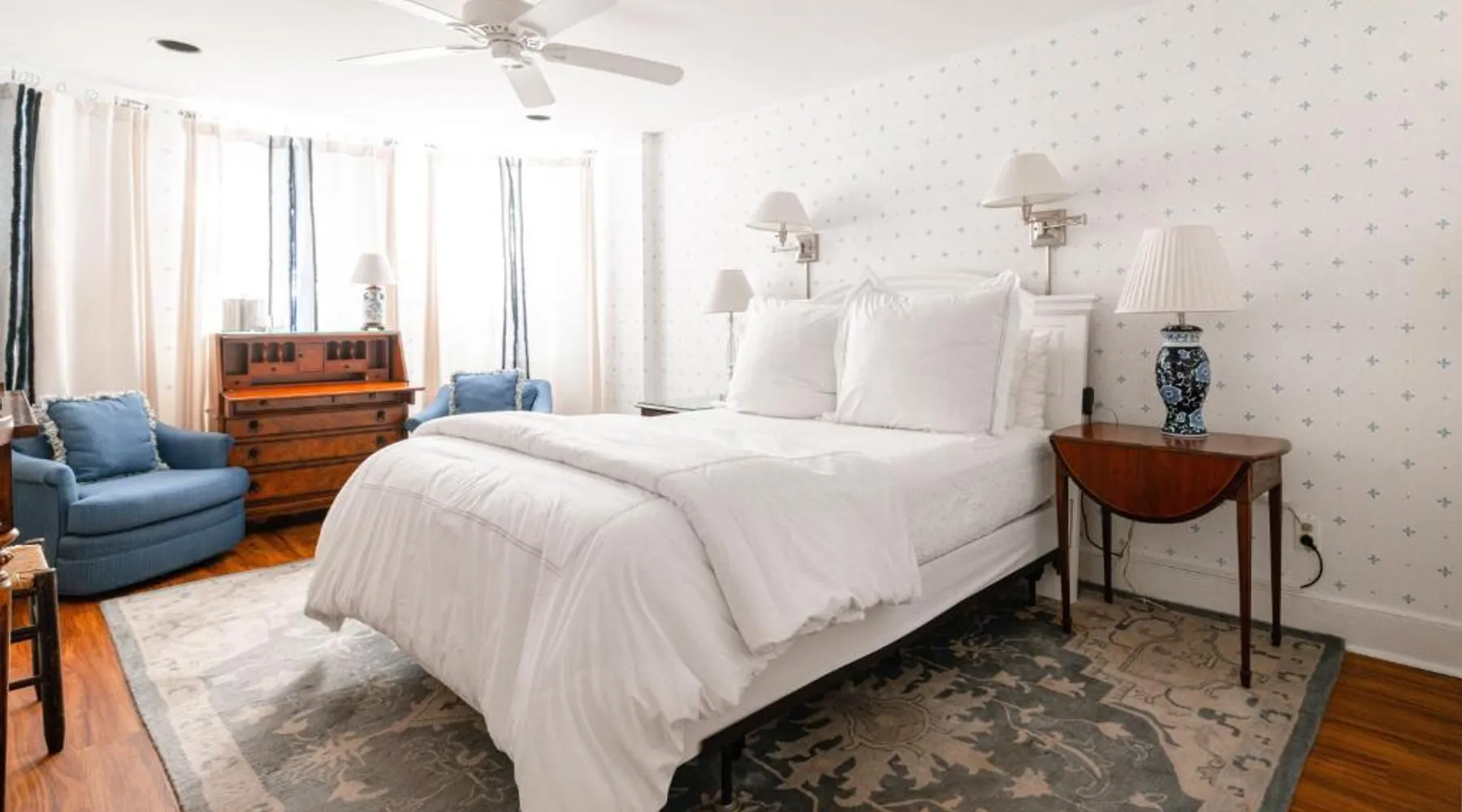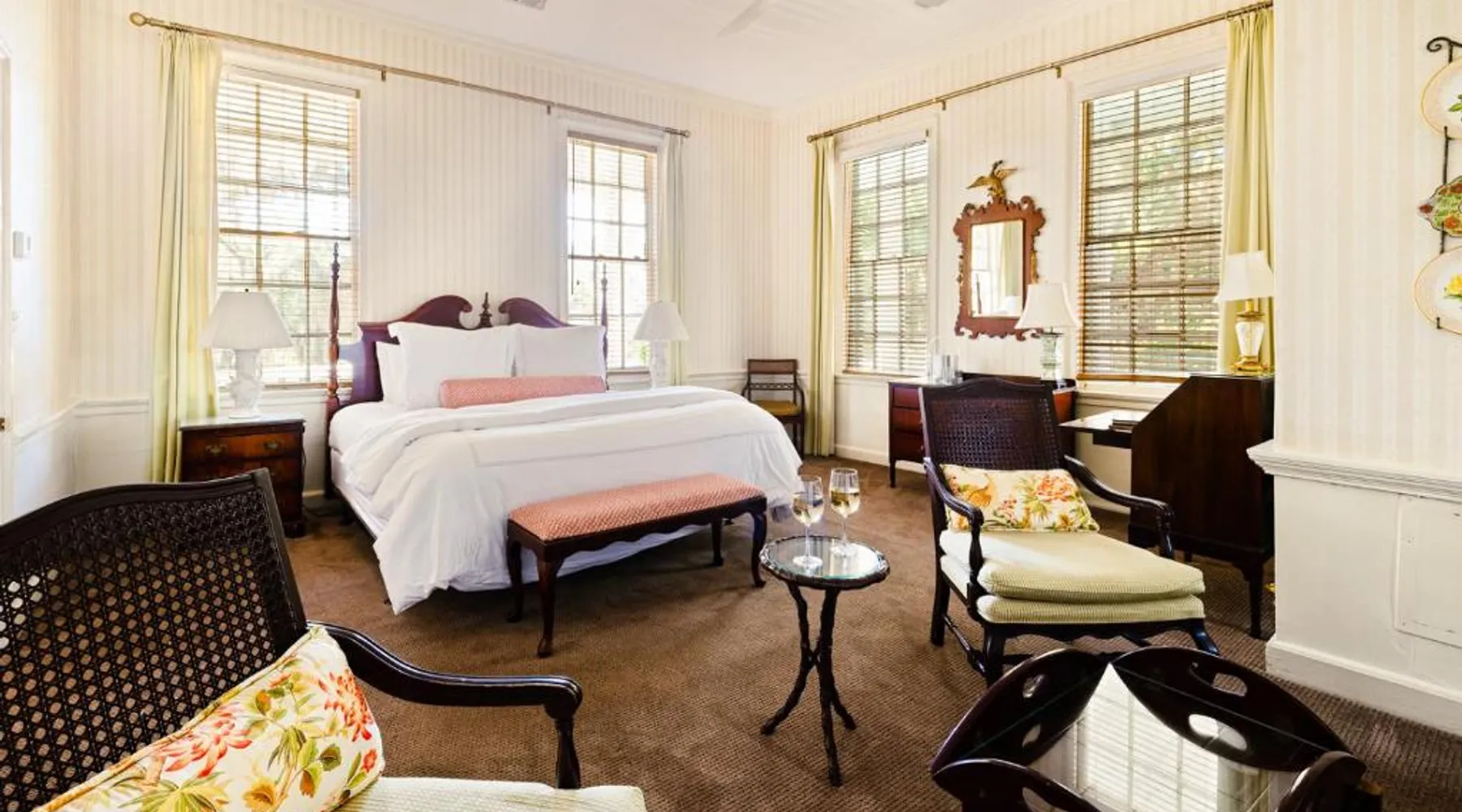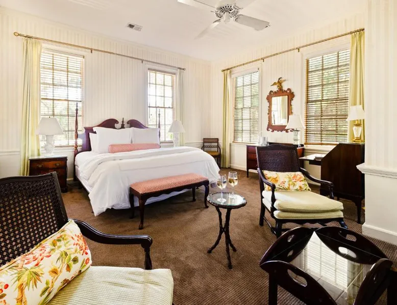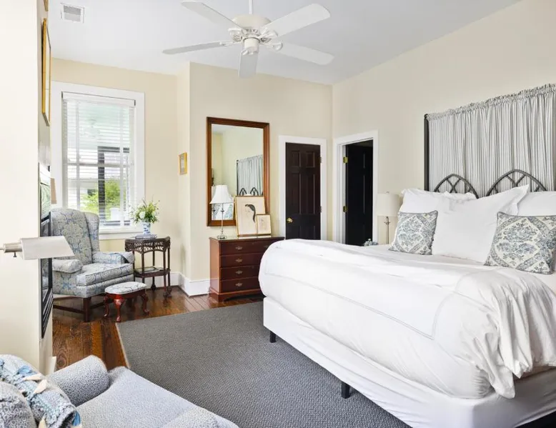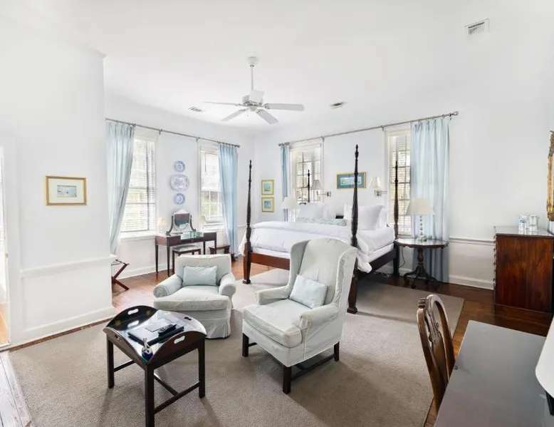 Located in historic Central Beaufort less than 1 mile from the Waterfront Park, this Inn offers a daily homemade breakfast. Built in 1864 and featuring antique decor, guests can relax on the spacious veranda. Rooms at the Rhett House have a fireplace and access to the veranda. Each classically decorated room is equipped with cable TV, a DVD player and free Wi-Fi. Guests of the Rhett House Inn can explore Beaufort by taking advantage of the free bicycle hire or going on a horse and carriage historic tour. A full southern breakfast is served each morning. In the afternoon, guests can dine on tea and pastries. Hors d’oeuvres and desserts are served in the evening. Hunting Island State Park is 20 minutes’ drive from the property. Parris Island is 10 miles away. Located on the second floor, this air conditioned guestroom includes a TV, telephone, and a private bathroom equipped with a bathrobe, free toiletries, and a bath or shower. Enjoy the private entrance, hardwood/parquet floors, and garden views.