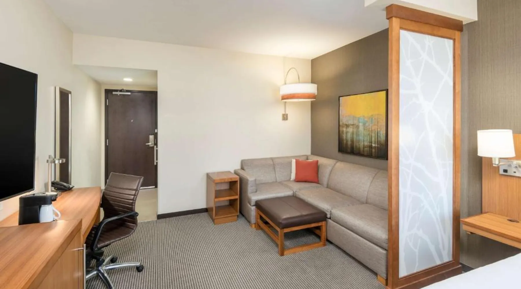 Boasting a fitness center and views of garden, Hyatt Place Greenville Downtown is located in Greenville, 984 feet from Peace Center. Around 2625 feet from Bon Secours Wellness Arena, the property is also 2953 feet away from Sirrine Stadium and offers free WiFi. The property has a restaurant. The units at the hotel are equipped with a seating area, a flat-screen TV with cable channels and a private bathroom with free toiletries and a bath or shower. Guest rooms at Hyatt Place Greenville Downtown feature air conditioning and a desk. Our hotel features an indoor pool, 24-hour fitness center, complimentary Full Hot Breakfast, cozy bar, and 24/7 dining options. Speaking Bulgarian, German, English and Spanish at the 24-hour front desk, staff will be happy to provide guests with practical information on the area. Falls Park is 2953 feet from Hyatt Place Greenville Downtown, while Greenville County Museum of Art is a 12-minute walk away. The nearest airport is Greenville-Spartanburg International Airport, 11 mi from the property. This room offers additional space. It includes a separate living room and a sofa bed. Blackout curtains and a work desk with an ergonomic chair are provided as well.