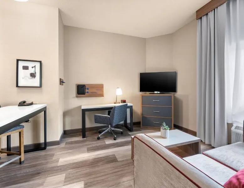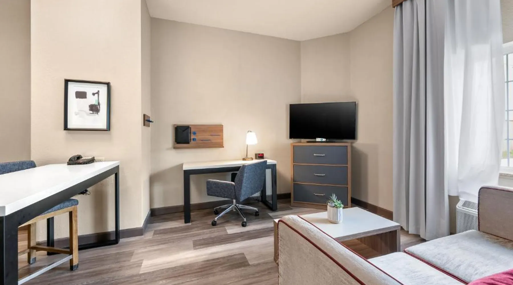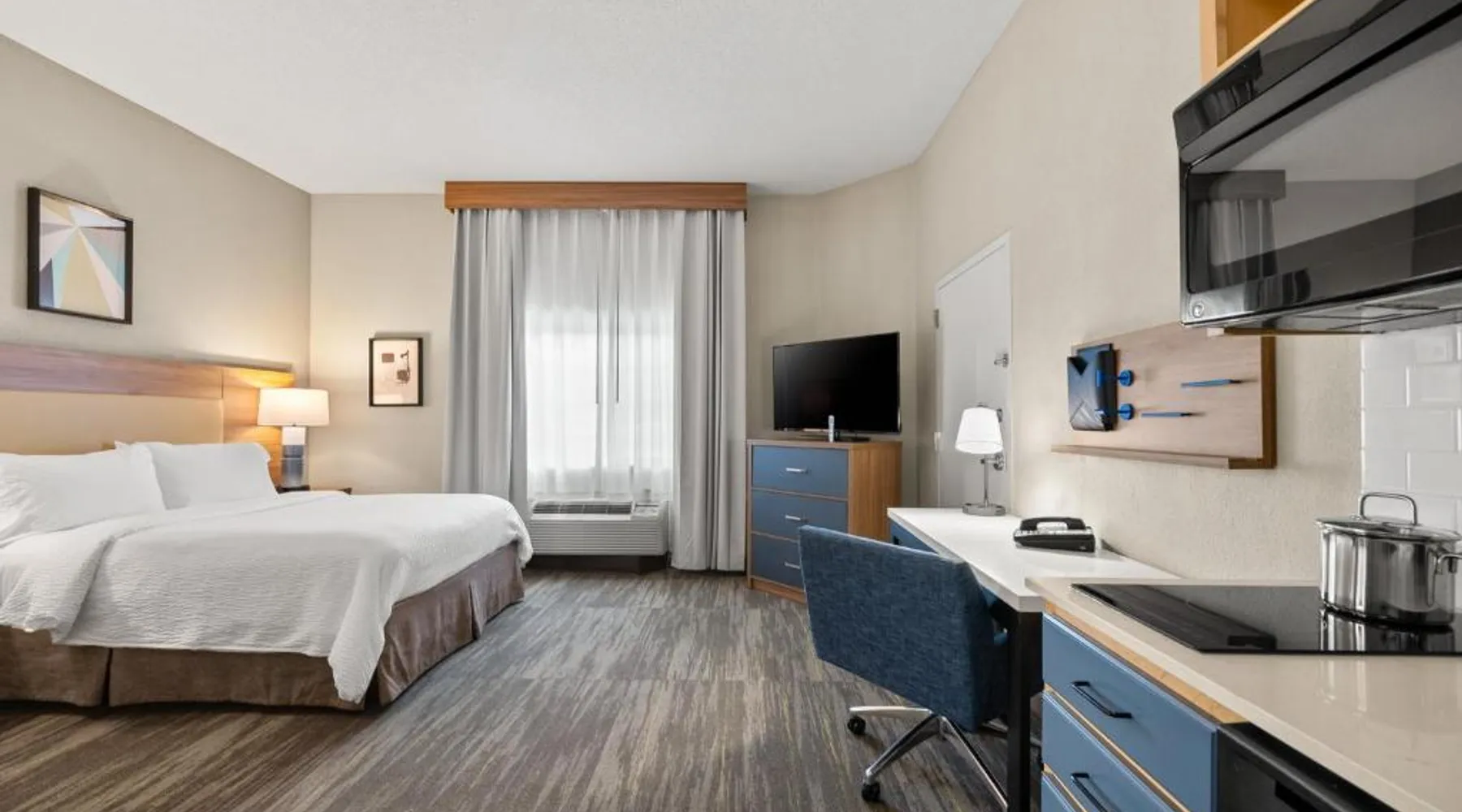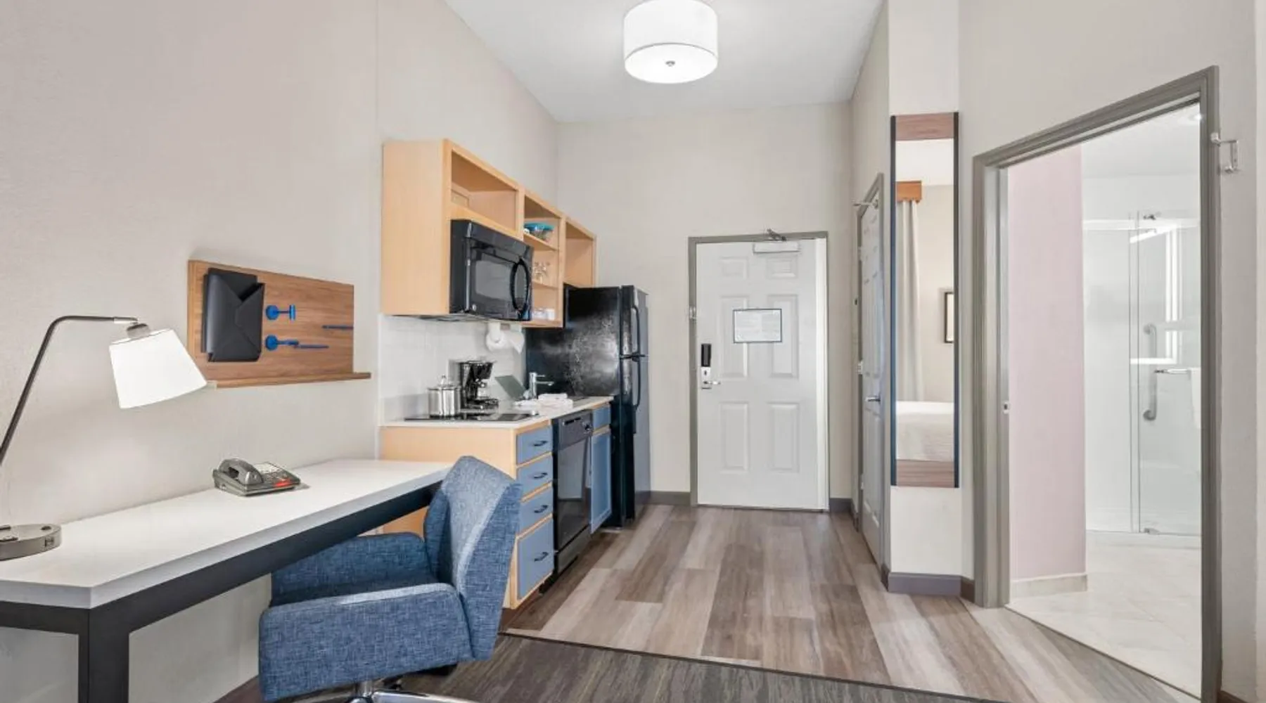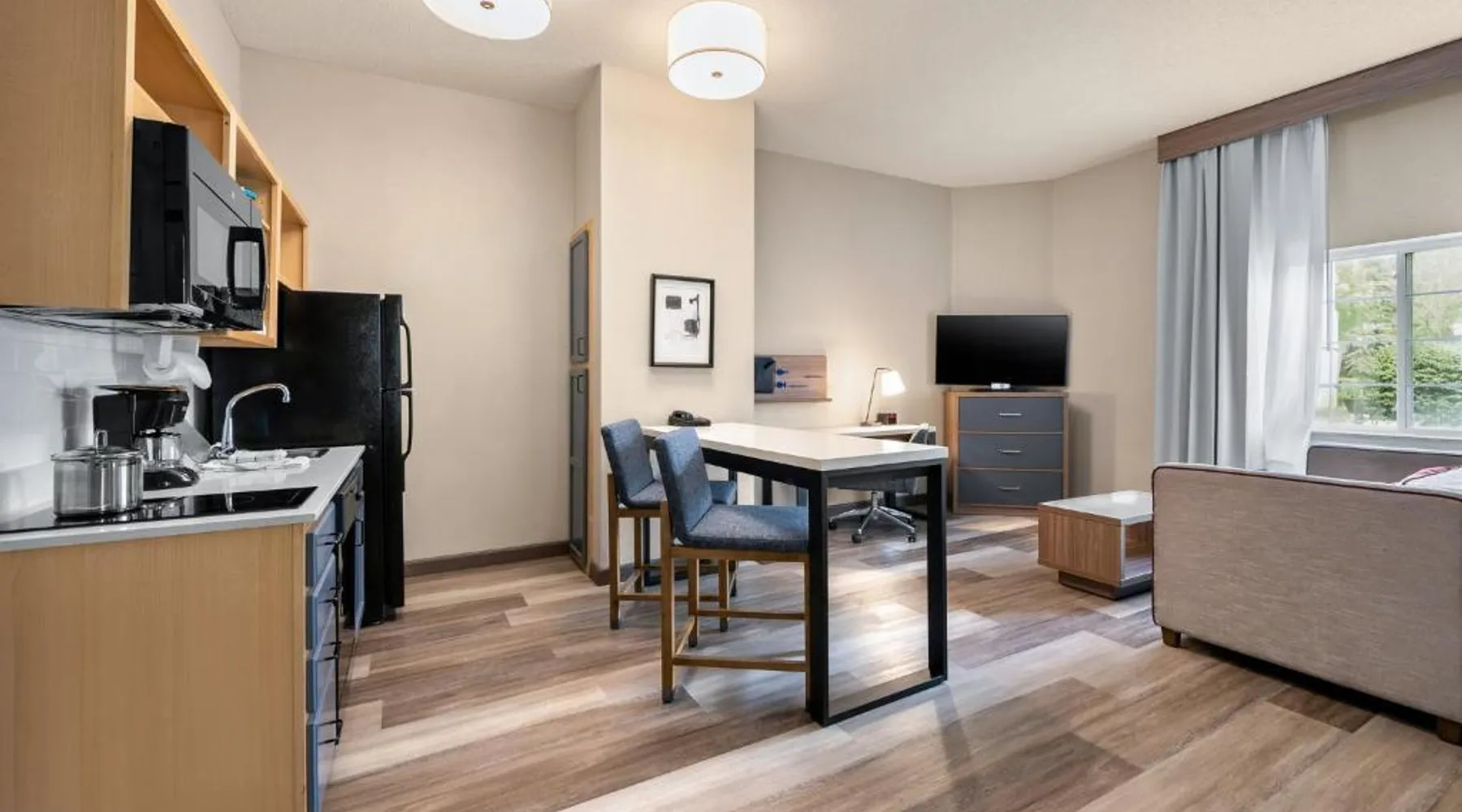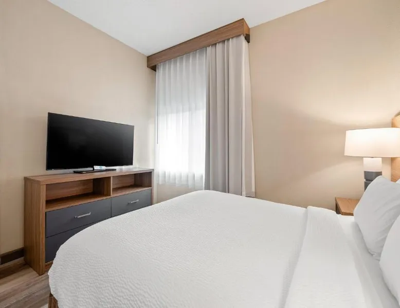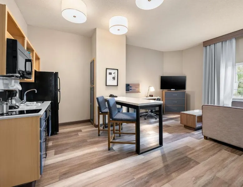 Comfortable Accommodations: Candlewood Suites Bordentown-Trenton by IHG in Bordentown offers family rooms with air-conditioning, private bathrooms, and fully equipped kitchens. Each room includes a work desk, TV, and free toiletries. Facilities and Services: Guests can enjoy a fitness center, outdoor seating area, picnic spots, and barbecue facilities. The hotel provides a elevator, 24-hour front desk, and free on-site parking. Additional amenities include a dining area and kitchenware. Location and Attractions: Located 13 mi from Trenton-Mercer Airport, the hotel is near Sesame Place (15 mi), Princeton University (18 mi), and Six Flags Great Adventure & Wild Safari (22 mi). Highly rated by guests, the property offers a welcoming environment. Featuring free toiletries, this studio includes a private bathroom with a bath or a shower and a hairdryer. In the fully equipped kitchen, guests will find a refrigerator, a dishwasher, kitchenware and a microwave. The studio has tiled floors, a seating area with a flat-screen TV with cable channels, air conditioning, a tea and coffee maker, as well as a dining area. The unit has 2 beds.