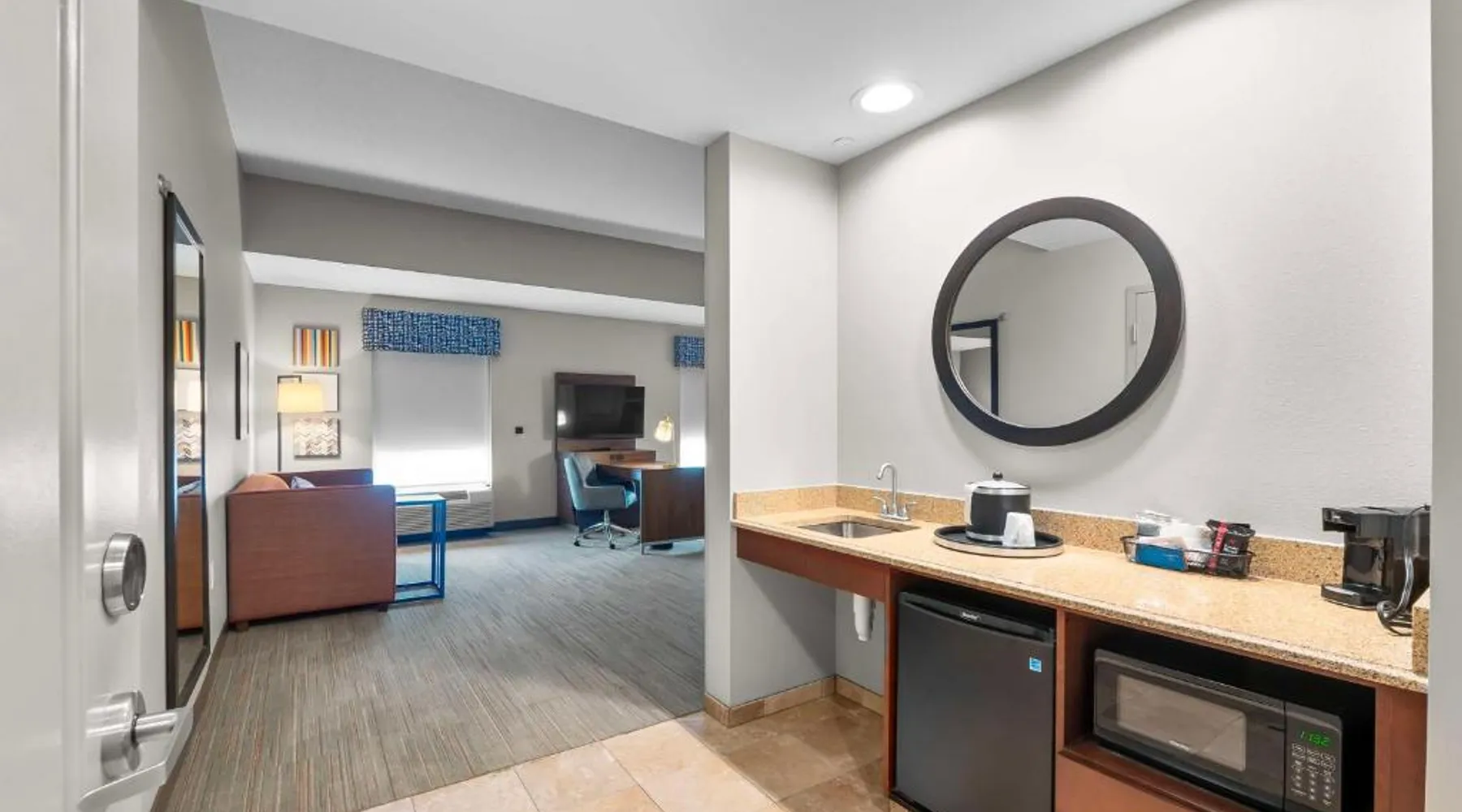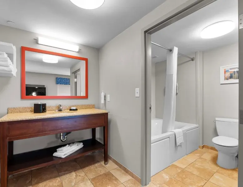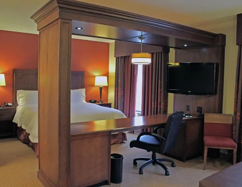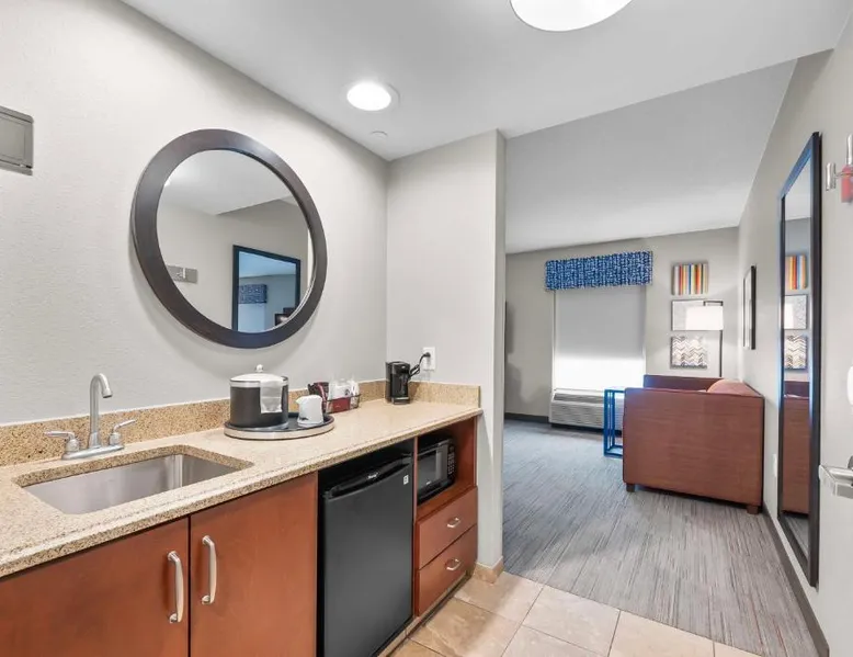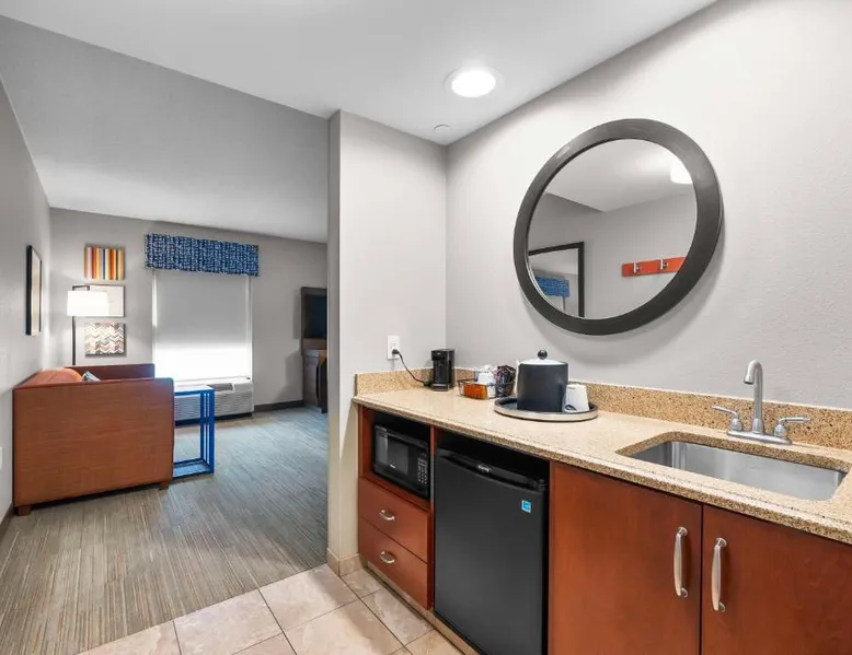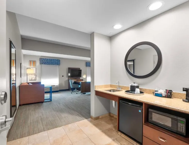 The Hampton Inn & Suites - Saint Louis South Interstate 55 is directly off Interstate 55, and 15 mi south of downtown St. Louis and its famous arch. Rooms at Hampton Inn & Suites - Saint Louis South Interstate 55 have flat-screen TVs. All rooms come furnished with a microwave, refrigerator, and work desk. A breakfast buffet is served every morning and newspapers are delivered to rooms at the Hampton Inn & Suites - Saint Louis South Interstate 55. Guests can relax in the indoor pool and spa bath after a long day or a workout in the hotel’s fitness center. The hotel offers many convenient amenities, such as a business center, an ATM/cash machine, and dry cleaning. The St. Louis Zoo is 30 minutes away from the Saint Louis South Interstate 55 Hampton Inn & Suites. The hotel is 25 mi away from Cahokia Mounds State Park, a UNESCO World Heritage site that features the largest pre-Columbian city in North America. One of the largest breweries in the world, the Anheuser-Busch Brewery, is 20 mi away. Studio has a sofa bed, microwave, and fridge.