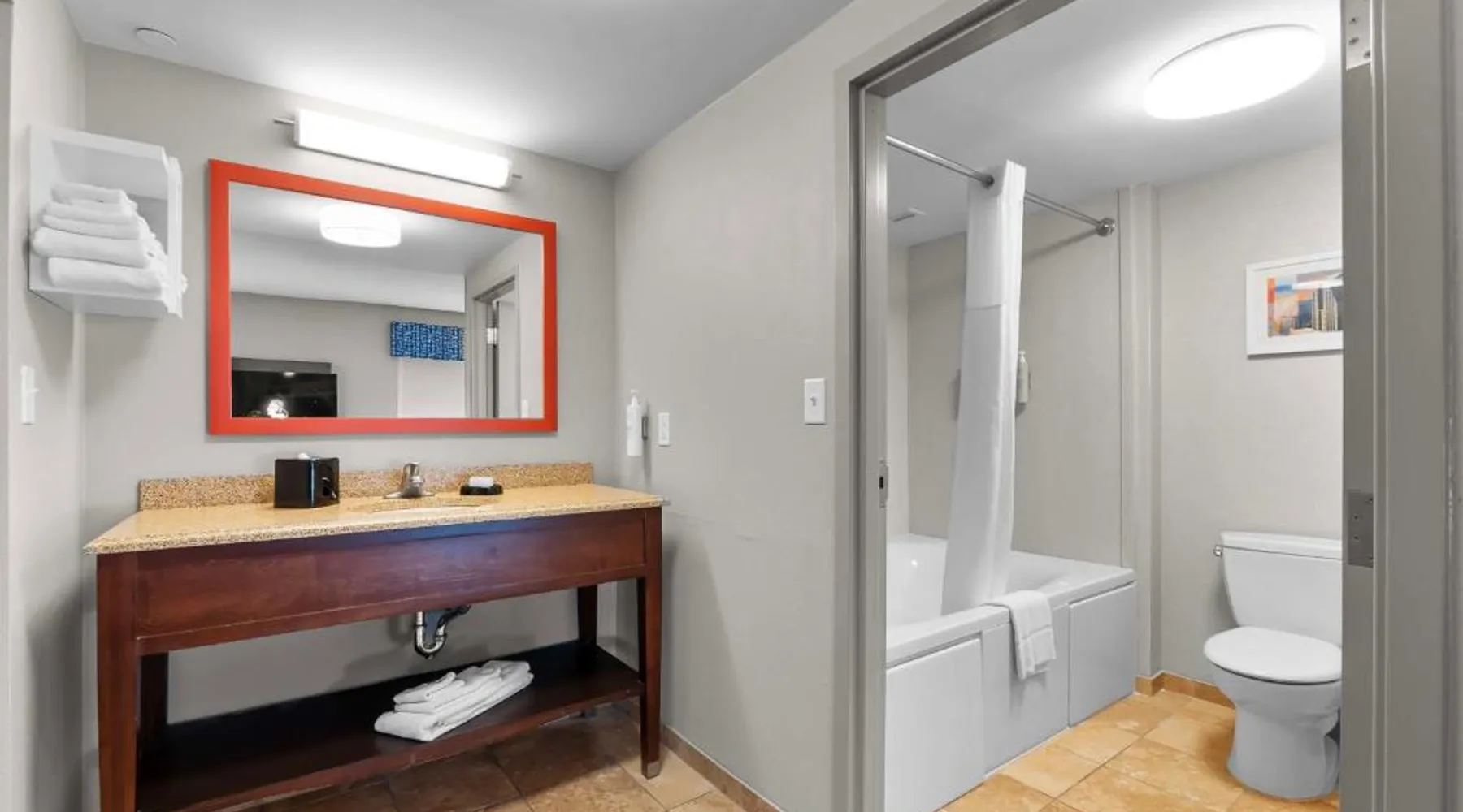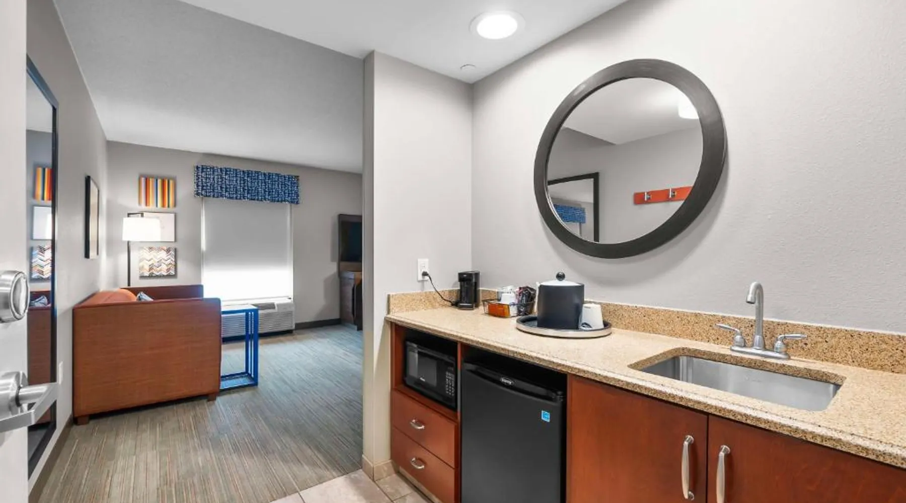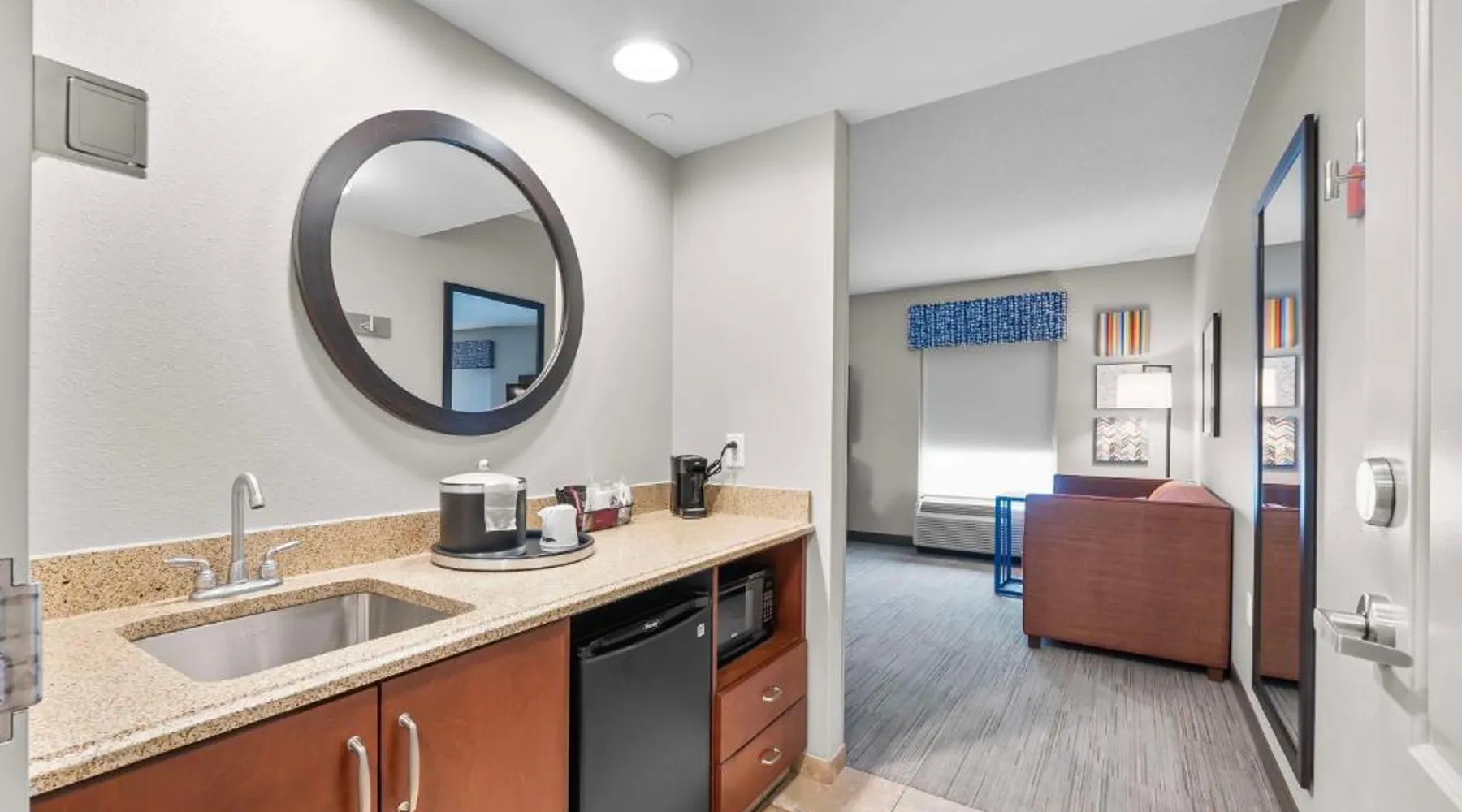 The Hampton Inn & Suites - Saint Louis South Interstate 55 is directly off Interstate 55, and 15 mi south of downtown St. Louis and its famous arch. Rooms at Hampton Inn & Suites - Saint Louis South Interstate 55 have flat-screen TVs. All rooms come furnished with a microwave, refrigerator, and work desk. A breakfast buffet is served every morning and newspapers are delivered to rooms at the Hampton Inn & Suites - Saint Louis South Interstate 55. Guests can relax in the indoor pool and spa bath after a long day or a workout in the hotel’s fitness center. The hotel offers many convenient amenities, such as a business center, an ATM/cash machine, and dry cleaning. The St. Louis Zoo is 30 minutes away from the Saint Louis South Interstate 55 Hampton Inn & Suites. The hotel is 25 mi away from Cahokia Mounds State Park, a UNESCO World Heritage site that features the largest pre-Columbian city in North America. One of the largest breweries in the world, the Anheuser-Busch Brewery, is 20 mi away. Studio has a sofa bed, microwave, and fridge.
