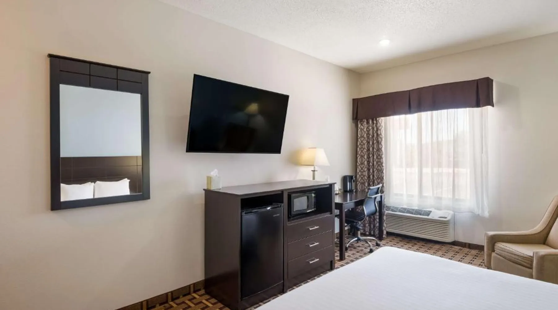 Comfortable Accommodations: SureStay Plus Hotel by Best Western Coralville Iowa City in Coralville offers family rooms with air-conditioning, private bathrooms, and free WiFi. Each room includes a work desk, refrigerator, and TV. Exceptional Facilities: Guests can enjoy a fitness center, indoor swimming pool, and free on-site private parking. Additional amenities include a lounge, fitness room, and outdoor seating area. Convenient Services: The hotel provides a shuttle service, 24-hour front desk, housekeeping, and express check-in and check-out. Free continental breakfast is available each morning. Nearby Attractions: Kinnick Stadium is 1.9 mi away, Paramount Theater 25 mi, and The Eastern Iowa Airport 19 mi from the property. Providing free toiletries, this triple room includes a private bathroom with a bath, a shower and a hairdryer. The triple room provides air conditioning, a sofa, heating and a flat-screen TV with cable channels. The unit offers 1 bed.