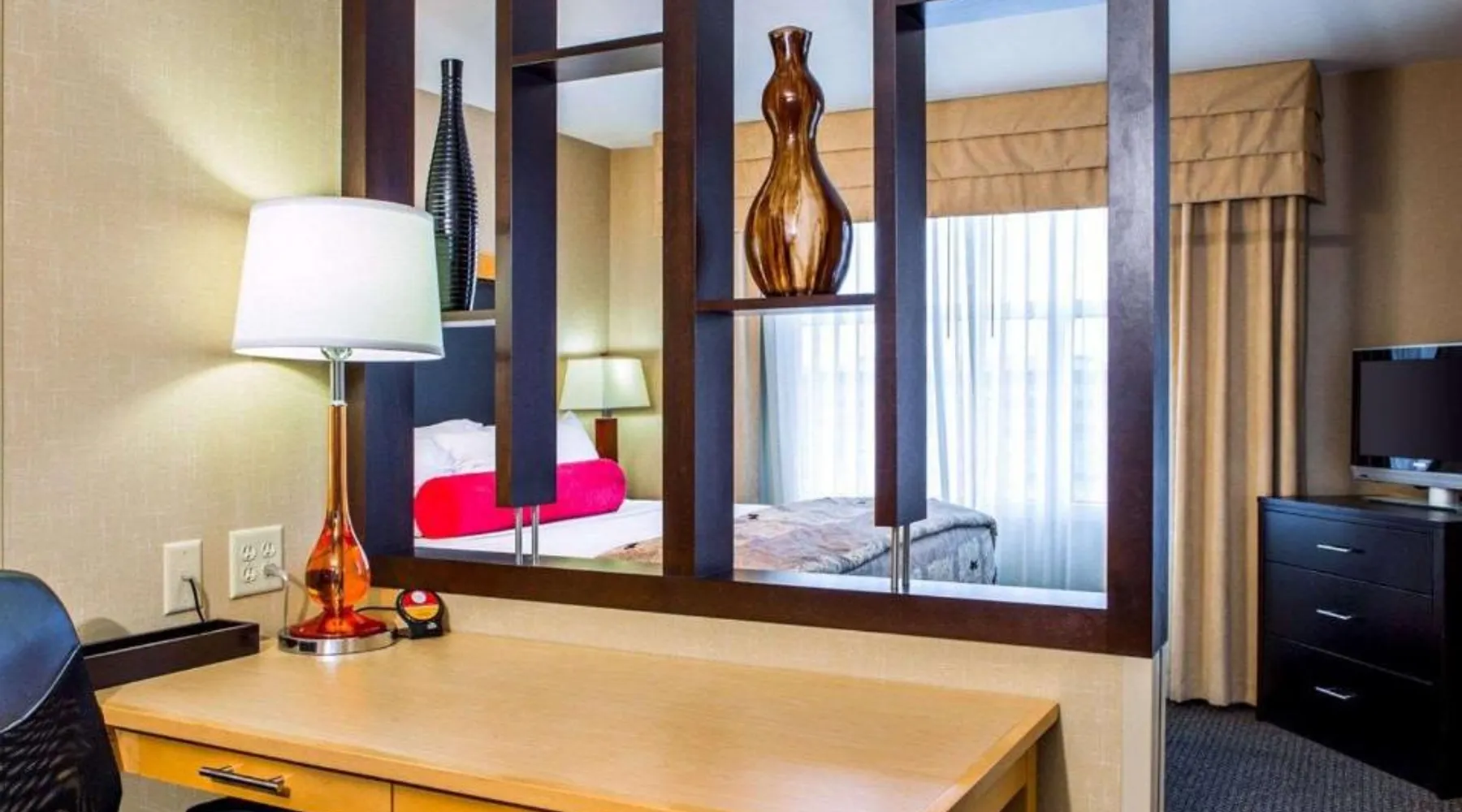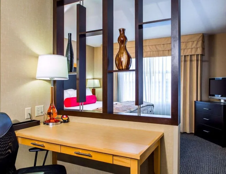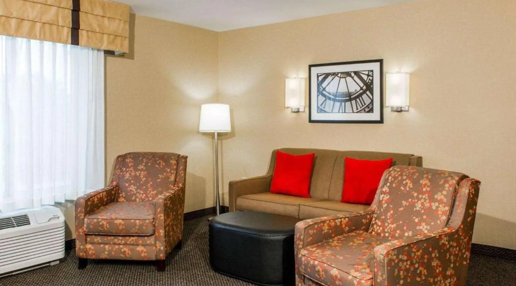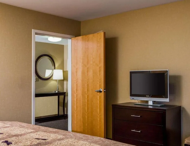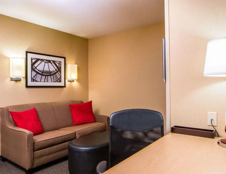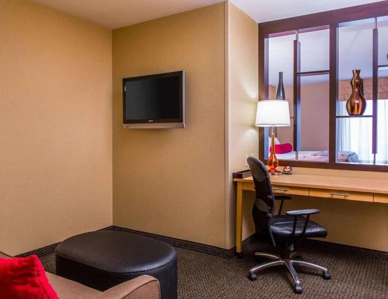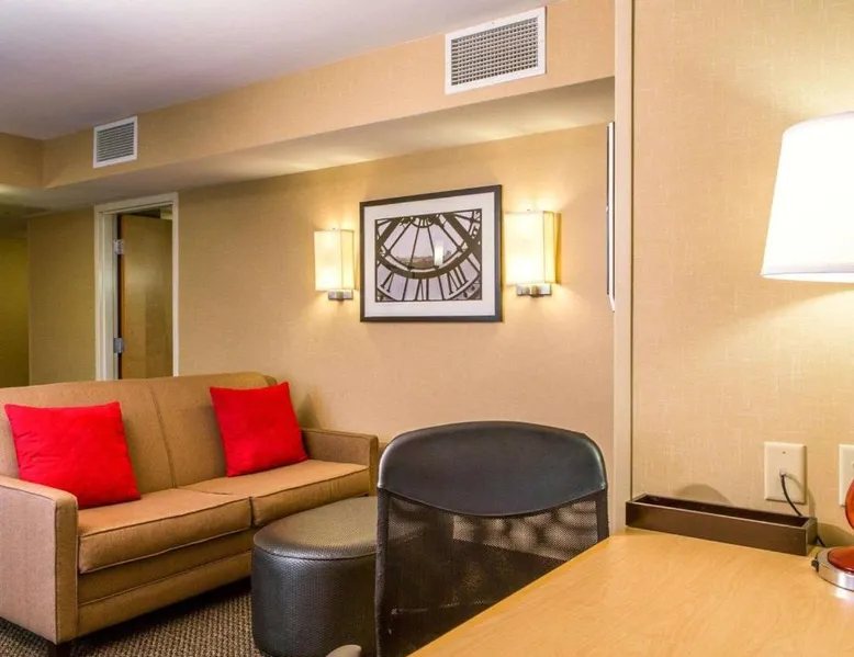 Comfortable Accommodations: Cambria Hotel Appleton in Appleton offers rooms with air-conditioning, private bathrooms, and free WiFi. Each room includes a work desk, TV, and sofa, ensuring a pleasant stay. Exceptional Facilities: Guests can enjoy a spa and wellness center, indoor swimming pool, fitness center, and hot tub. The on-site restaurant serves American cuisine with vegetarian and gluten-free options. A bar provides a relaxing atmosphere. Convenient Location: Located 11 mi from Outagamie County Regional Airport, the hotel is near attractions such as The History Museum at the Castle (4.3 mi) and Lambe Field (25 mi). Free on-site parking is available. Guest Satisfaction: Guests appreciate the attentive staff, room cleanliness, and comfort. This air-conditioned suite includes a flat-screen TV with cable channels and a private bathroom.
