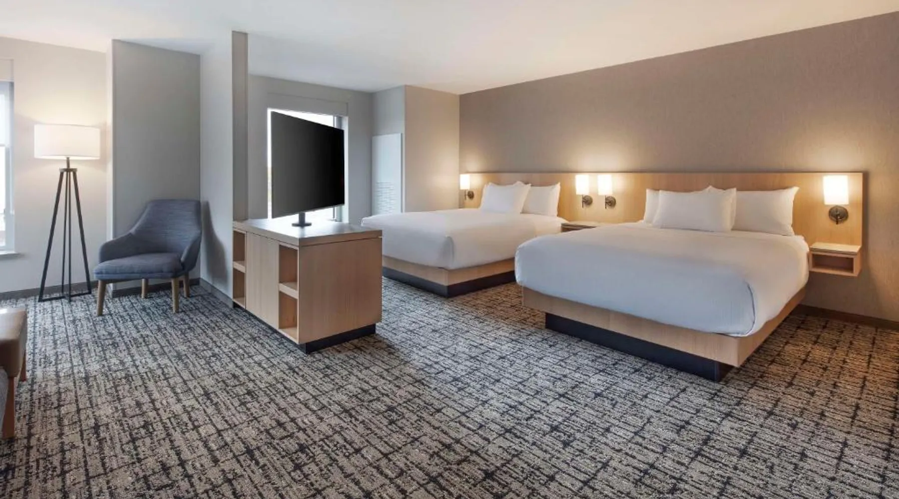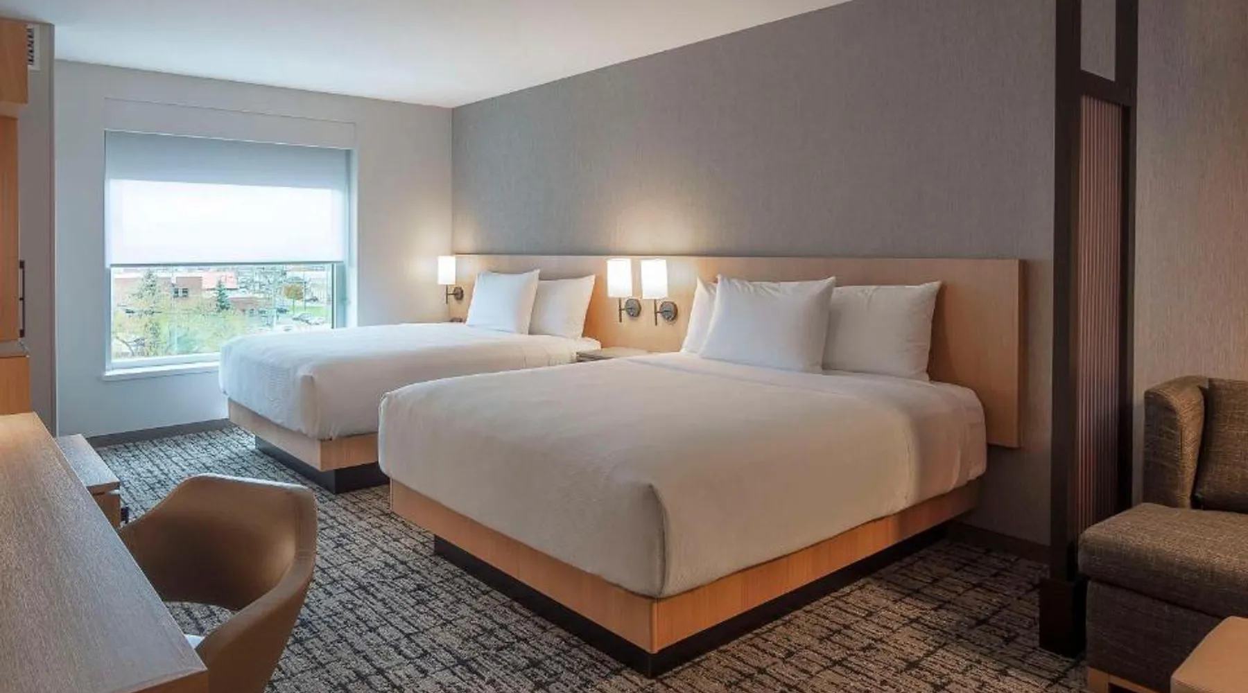 Comfortable Accommodations: Rooms feature air-conditioning, private bathrooms, tea and coffee makers, and free WiFi. Additional amenities include sofa beds, mini-bars, and flat-screen TVs. Dining Options: The family-friendly restaurant serves Italian cuisine with vegetarian, vegan, and gluten-free options. Guests can also enjoy a bar and outdoor seating area. Leisure Facilities: The hotel offers a saltwater swimming pool, indoor pool, fitness center, terrace, and outdoor fireplace. Private check-in and check-out services ensure a smooth arrival and departure. Prime Location: Located 4.3 mi from Greater Moncton Roméo LeBlanc International Airport, the hotel is near attractions such as Capitol Theater (9-minute walk) and Moncton Train Station (984 feet). Highly rated for staff and service support. This air-conditioned quadruple room is consisted of of a flat-screen TV with cable channels and a private bathroom. The unit has 2 beds.