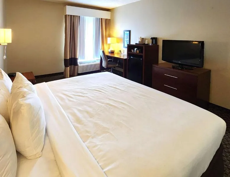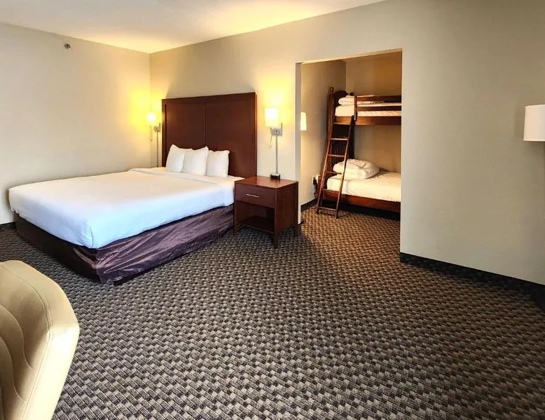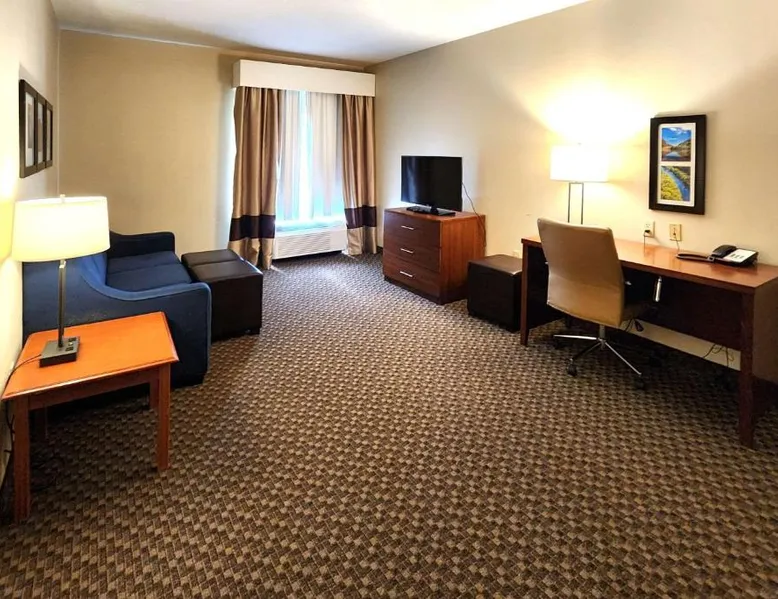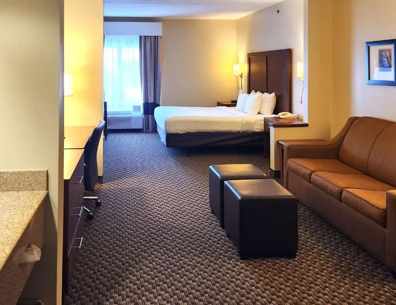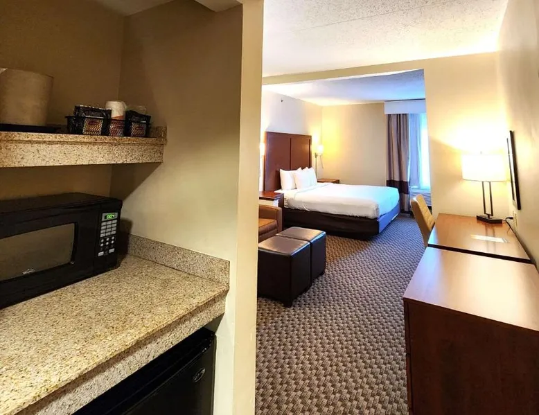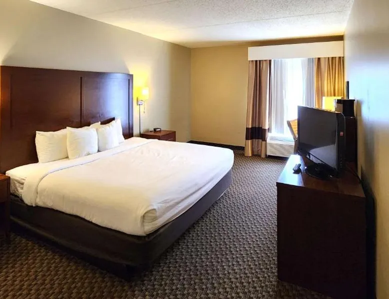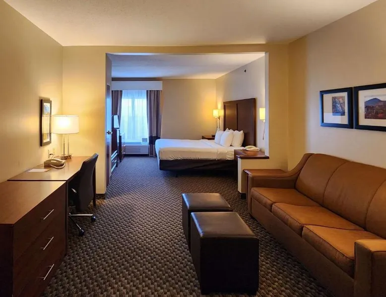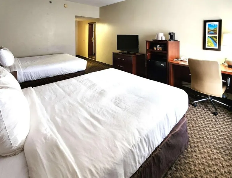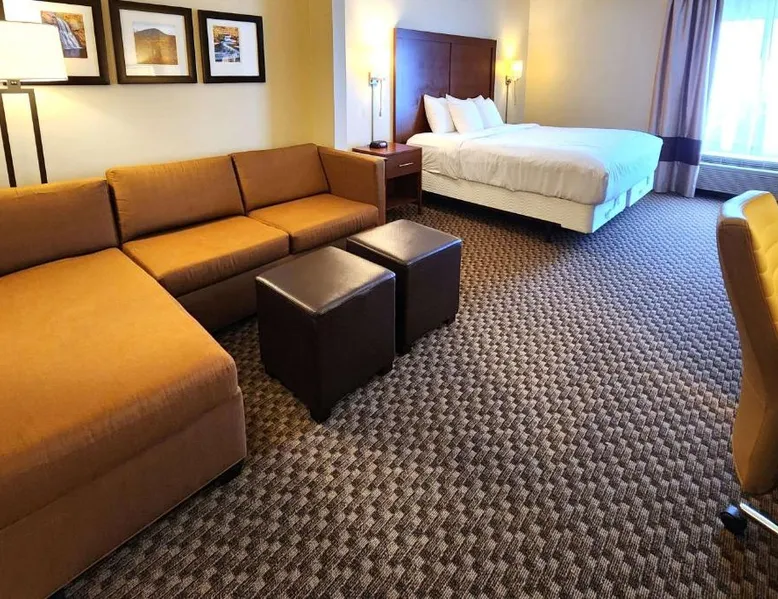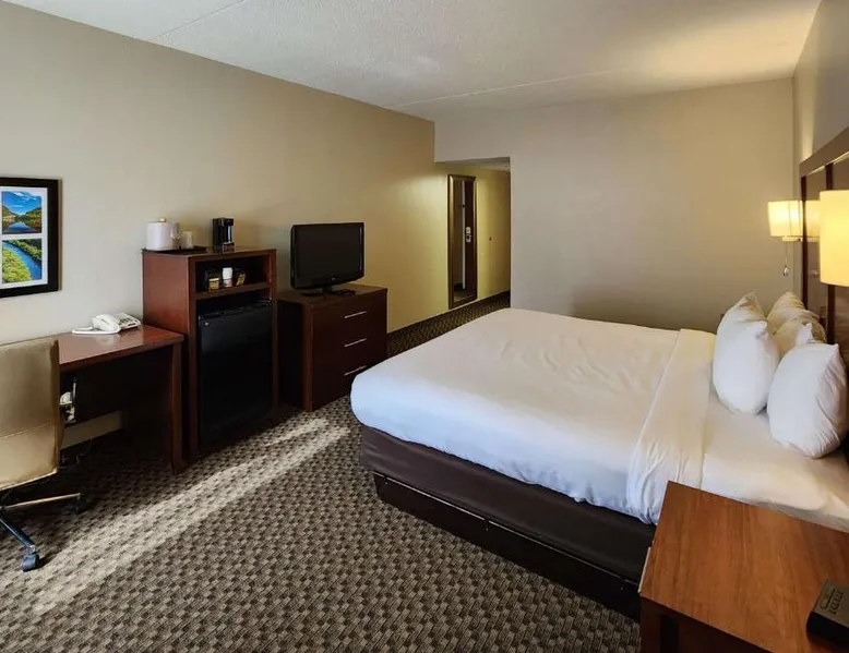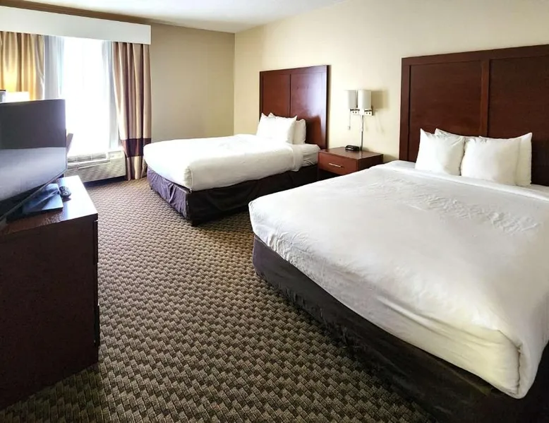 Located in the heart of the Pocono Mountains, the 100 percent nonsmoking Comfort Inn & Suites Mount Pocono hotel is close to popular area attractions. Nearby, visitors will find the Pocono Raceway, Camelbeach Waterpark and Peddler's Village, a premier shopping, dining and entertainment destination. For outdoor enthusiasts, Bushkill Falls and Delaware Water Gap National Recreation Area, offering white-water rafting, canoeing, kayaking, fishing and swimming, are only minutes away. Mount Airy Casino is four miles from the hotel. Skiers and snowboarders will appreciate the five major ski areas just minutes from this hotel. Additional points of interest include the Crossings Premium Outlets shopping center, American Candle Company and the Pocono Indian Museum. Several restaurants and cocktail lounges are located in the surrounding area. The hotel features a free breakfast, an indoor heated pool, hot tub, fitness room and game room. Business travelers can welcome the spacious work areas, high-speed Internet access and voice mail in every room. This hotel has a business center with meeting rooms that are perfect for hosting most functions. Guest rooms at this hotel come with coffee makers, hair dryers, safes, irons and ironing boards. In addition to standard amenities, some rooms have microwaves. For guest convenience, laundry facilities are located on the premises. The hotel also has a public safe. Featuring free toiletries, this twin/double room includes a private bathroom with a bath, a shower and a hairdryer. The twin/double room features air conditioning, a tea and coffee maker, a wardrobe, a carpeted floor, as well as a flat-screen TV with cable channels. The unit has 2 beds.