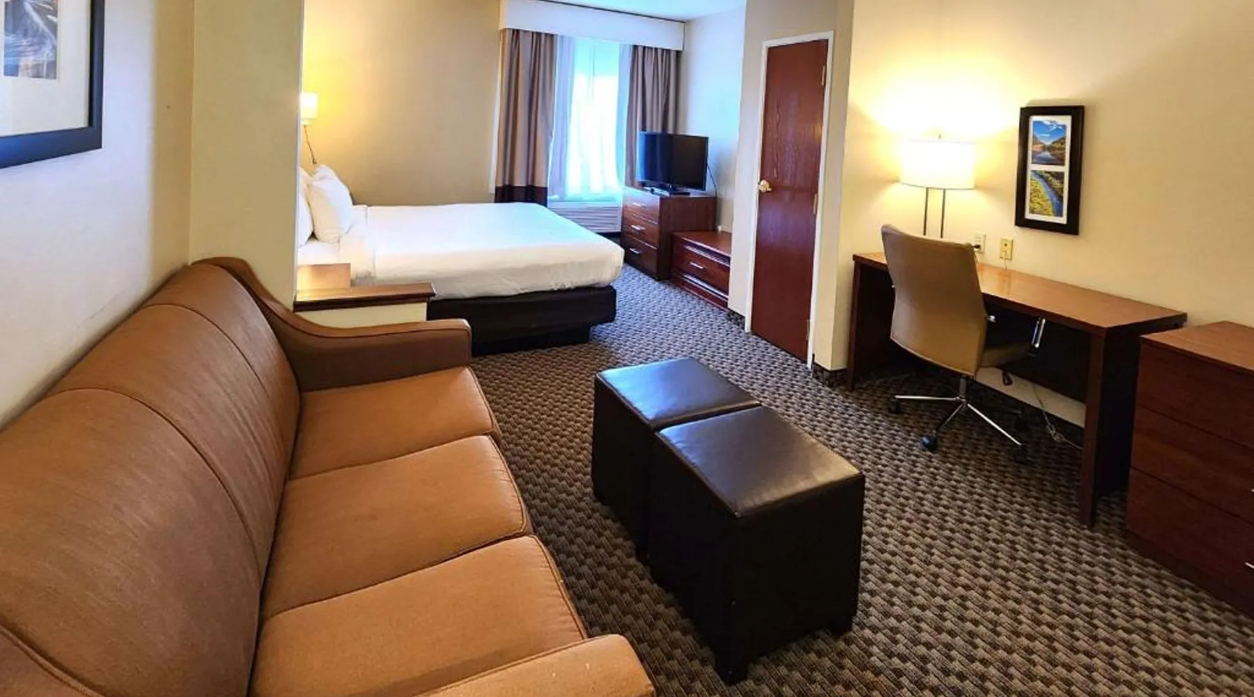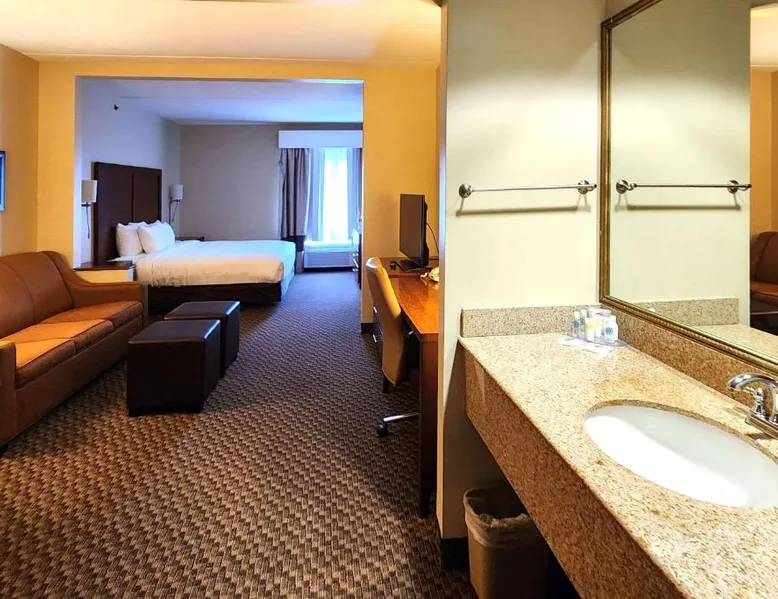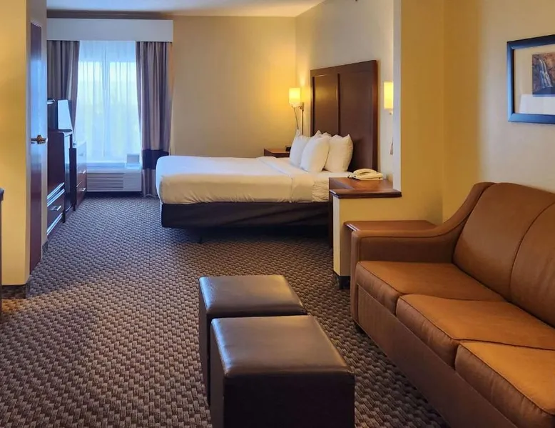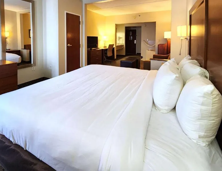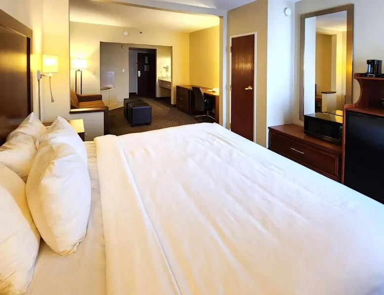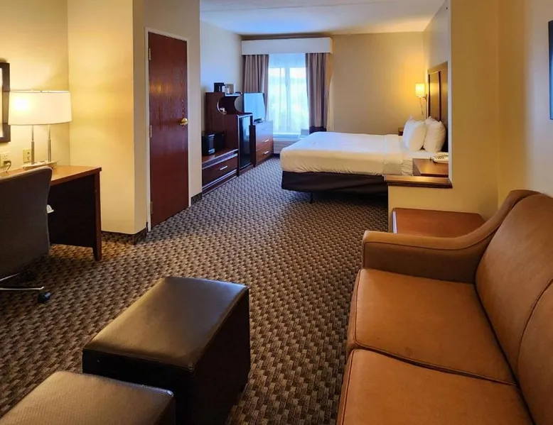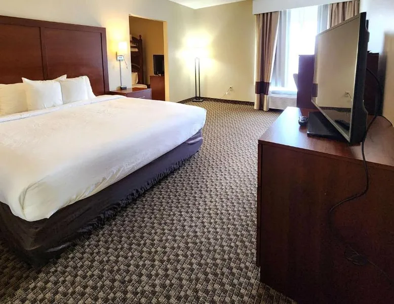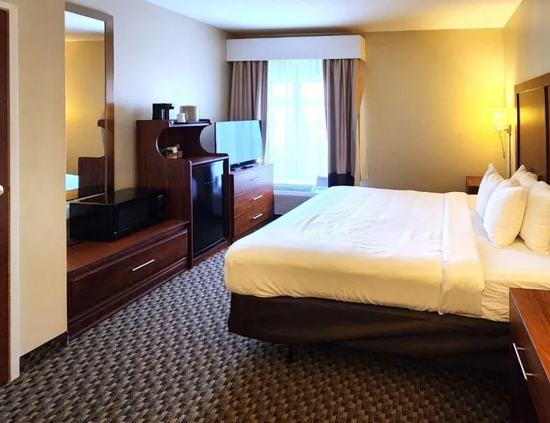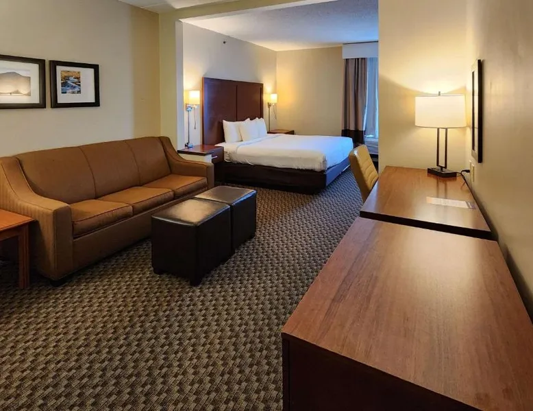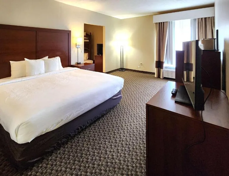 Located in the heart of the Pocono Mountains, the 100 percent nonsmoking Comfort Inn & Suites Mount Pocono hotel is close to popular area attractions. Nearby, visitors will find the Pocono Raceway, Camelbeach Waterpark and Peddler's Village, a premier shopping, dining and entertainment destination. For outdoor enthusiasts, Bushkill Falls and Delaware Water Gap National Recreation Area, offering white-water rafting, canoeing, kayaking, fishing and swimming, are only minutes away. Mount Airy Casino is four miles from the hotel. Skiers and snowboarders will appreciate the five major ski areas just minutes from this hotel. Additional points of interest include the Crossings Premium Outlets shopping center, American Candle Company and the Pocono Indian Museum. Several restaurants and cocktail lounges are located in the surrounding area. The hotel features a free breakfast, an indoor heated pool, hot tub, fitness room and game room. Business travelers can welcome the spacious work areas, high-speed Internet access and voice mail in every room. This hotel has a business center with meeting rooms that are perfect for hosting most functions. Guest rooms at this hotel come with coffee makers, hair dryers, safes, irons and ironing boards. In addition to standard amenities, some rooms have microwaves. For guest convenience, laundry facilities are located on the premises. The hotel also has a public safe. Featuring free toiletries, this twin/double room includes a private bathroom with a bath, a shower and a hairdryer. The twin/double room features air conditioning, a tea and coffee maker, a wardrobe, a carpeted floor, as well as a flat-screen TV with cable channels. The unit has 2 beds.