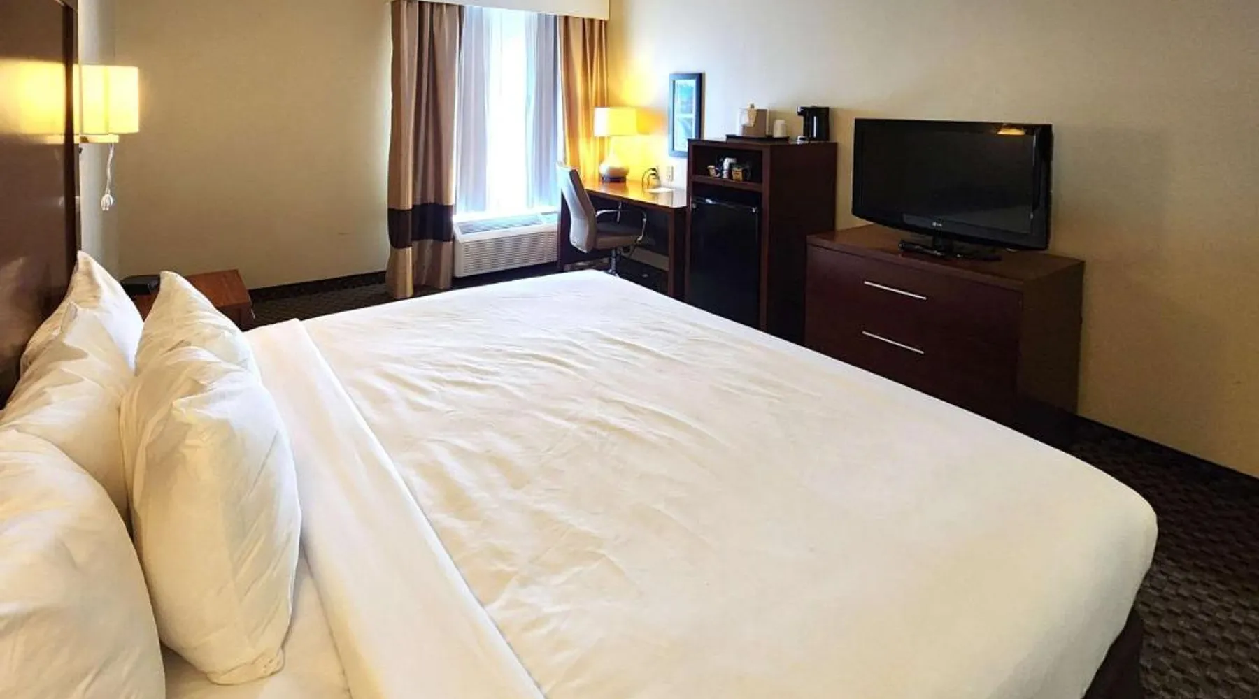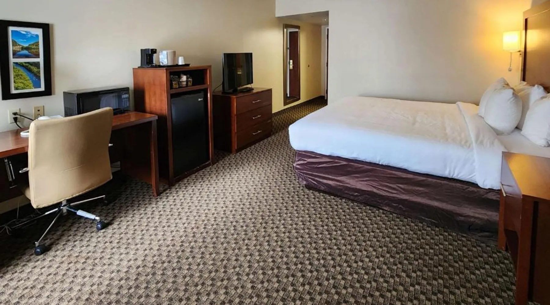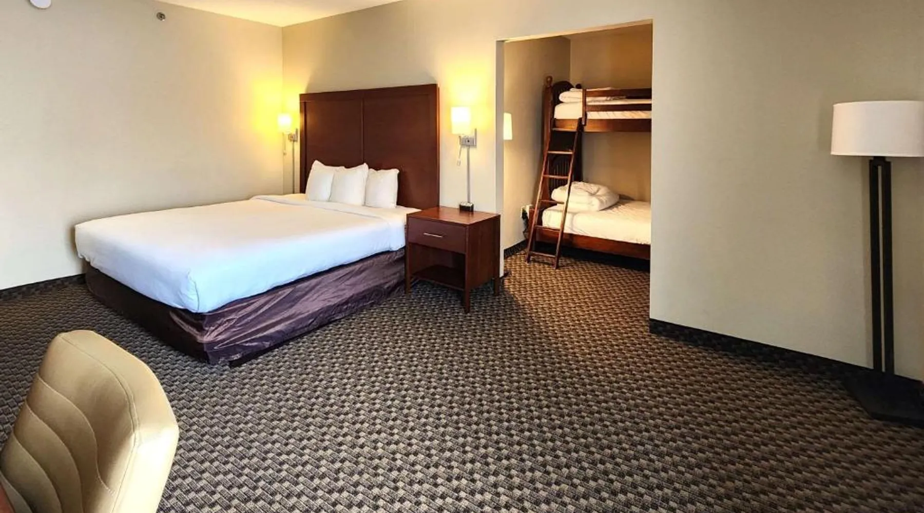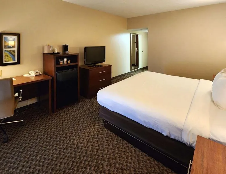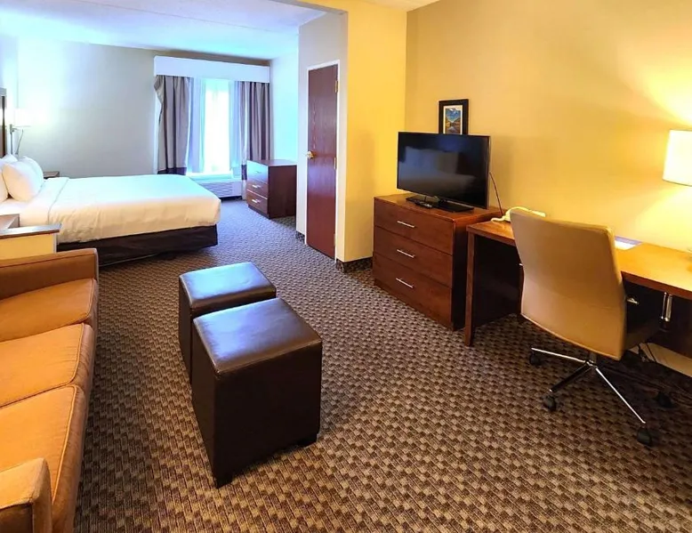Located in the heart of the Pocono Mountains, the 100 percent nonsmoking Comfort Inn & Suites Mount Pocono hotel is close to popular area attractions. Nearby, visitors will find the Pocono Raceway, Camelbeach Waterpark and Peddler's Village, a premier shopping, dining and entertainment destination. For outdoor enthusiasts, Bushkill Falls and Delaware Water Gap National Recreation Area, offering white-water rafting, canoeing, kayaking, fishing and swimming, are only minutes away. Mount Airy Casino is four miles from the hotel. Skiers and snowboarders will appreciate the five major ski areas just minutes from this hotel. Additional points of interest include the Crossings Premium Outlets shopping center, American Candle Company and the Pocono Indian Museum. Several restaurants and cocktail lounges are located in the surrounding area. The hotel features a free breakfast, an indoor heated pool, hot tub, fitness room and game room. Business travelers can welcome the spacious work areas, high-speed Internet access and voice mail in every room. This hotel has a business center with meeting rooms that are perfect for hosting most functions. Guest rooms at this hotel come with coffee makers, hair dryers, safes, irons and ironing boards. In addition to standard amenities, some rooms have microwaves. For guest convenience, laundry facilities are located on the premises. The hotel also has a public safe. Featuring free toiletries, this twin/double room includes a private bathroom with a bath, a shower and a hairdryer. The twin/double room features air conditioning, a tea and coffee maker, a wardrobe, a carpeted floor, as well as a flat-screen TV with cable channels. The unit has 2 beds.