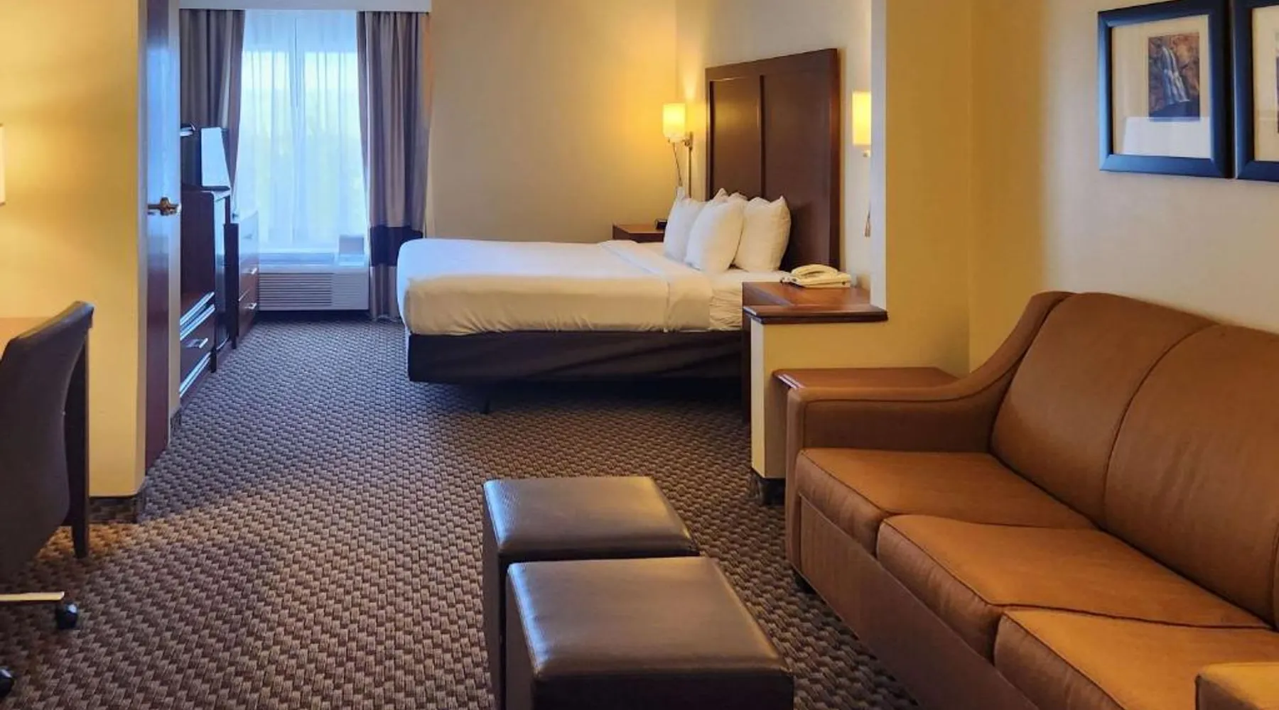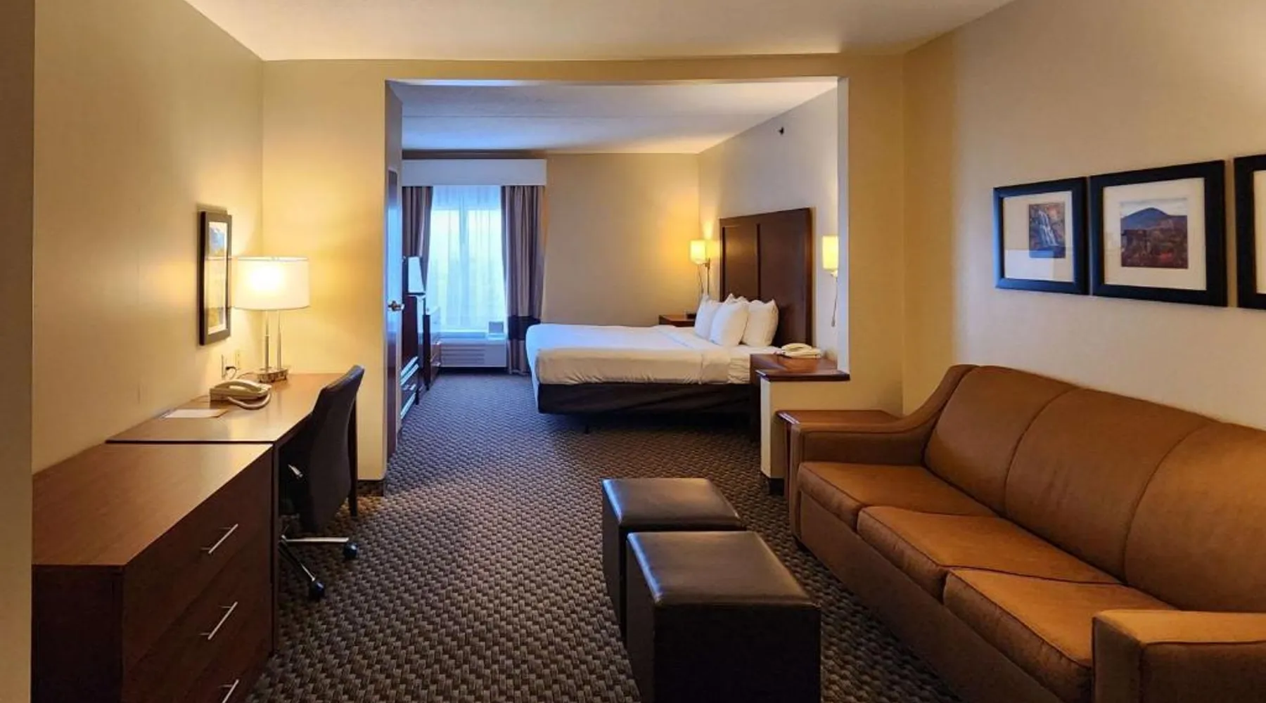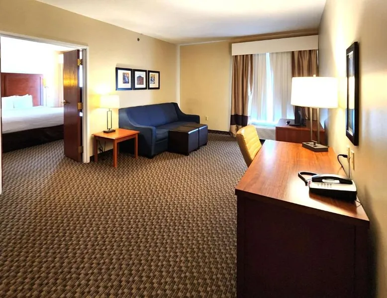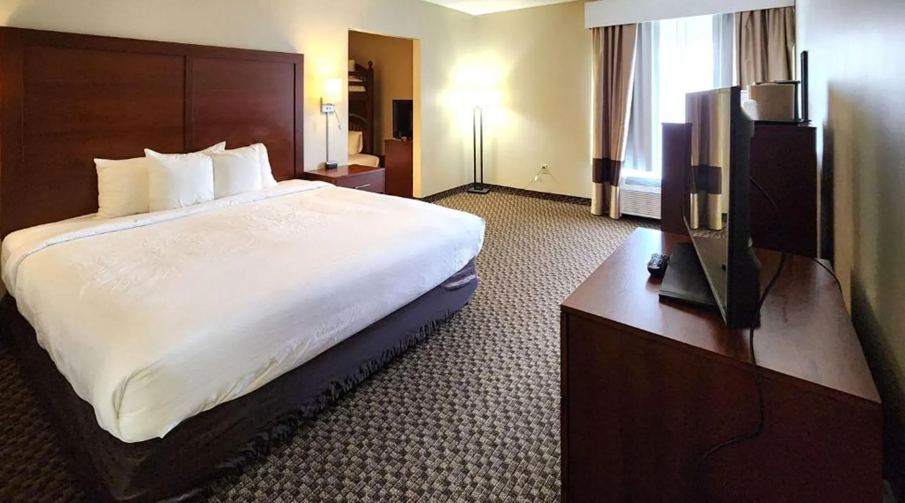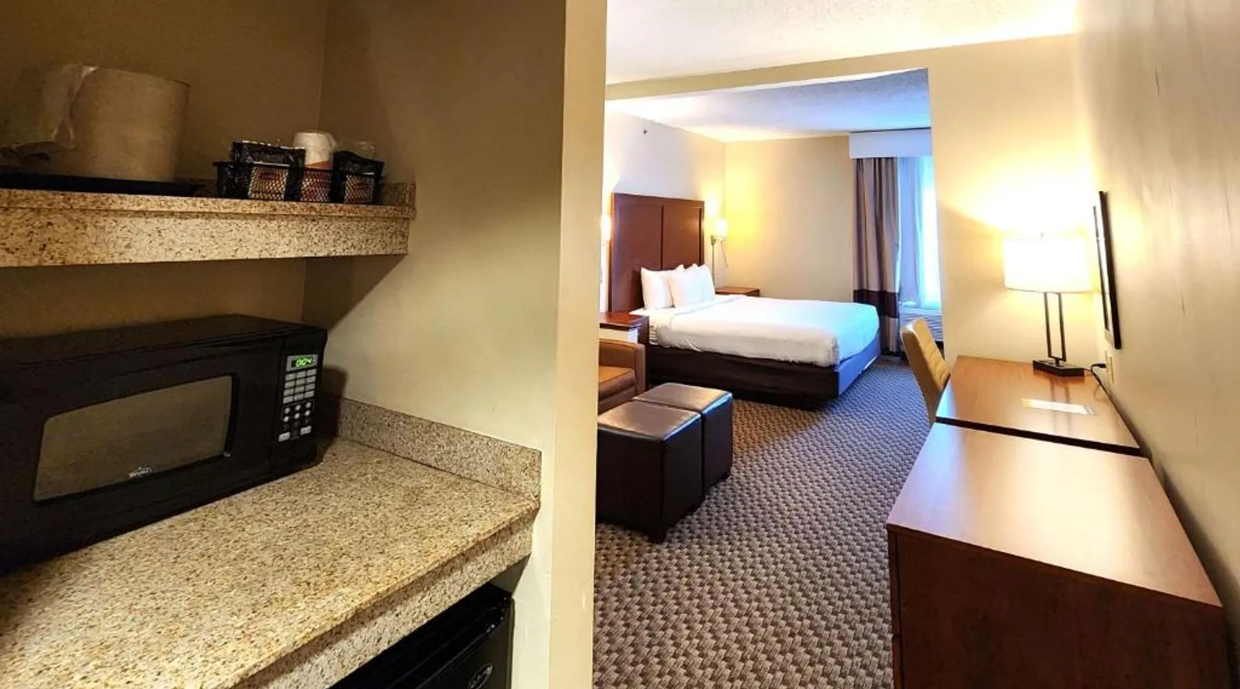 Located in the heart of the Pocono Mountains, the 100 percent nonsmoking Comfort Inn & Suites Mount Pocono hotel is close to popular area attractions. Nearby, visitors will find the Pocono Raceway, Camelbeach Waterpark and Peddler's Village, a premier shopping, dining and entertainment destination. For outdoor enthusiasts, Bushkill Falls and Delaware Water Gap National Recreation Area, offering white-water rafting, canoeing, kayaking, fishing and swimming, are only minutes away. Mount Airy Casino is four miles from the hotel. Skiers and snowboarders will appreciate the five major ski areas just minutes from this hotel. Additional points of interest include the Crossings Premium Outlets shopping center, American Candle Company and the Pocono Indian Museum. Several restaurants and cocktail lounges are located in the surrounding area. The hotel features a free breakfast, an indoor heated pool, hot tub, fitness room and game room. Business travelers can welcome the spacious work areas, high-speed Internet access and voice mail in every room. This hotel has a business center with meeting rooms that are perfect for hosting most functions. Guest rooms at this hotel come with coffee makers, hair dryers, safes, irons and ironing boards. In addition to standard amenities, some rooms have microwaves. For guest convenience, laundry facilities are located on the premises. The hotel also has a public safe. Featuring free toiletries, this twin/double room includes a private bathroom with a bath, a shower and a hairdryer. The twin/double room features air conditioning, a tea and coffee maker, a wardrobe, a carpeted floor, as well as a flat-screen TV with cable channels. The unit has 2 beds.