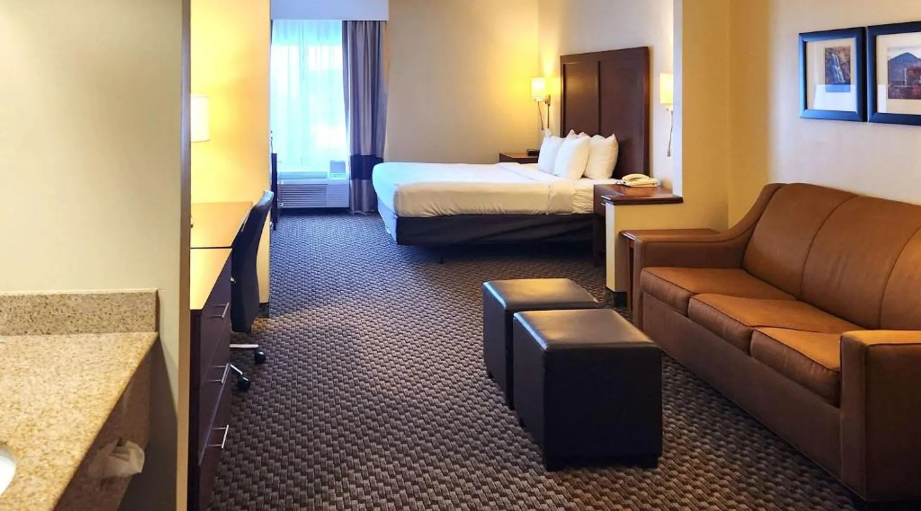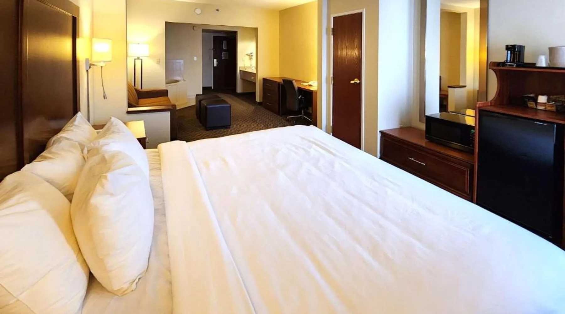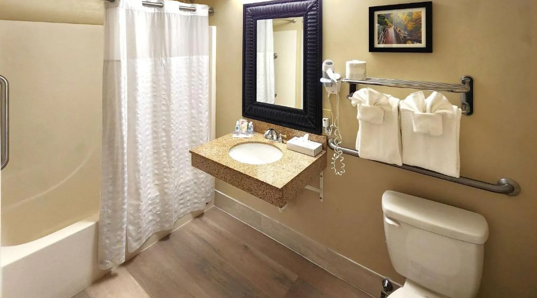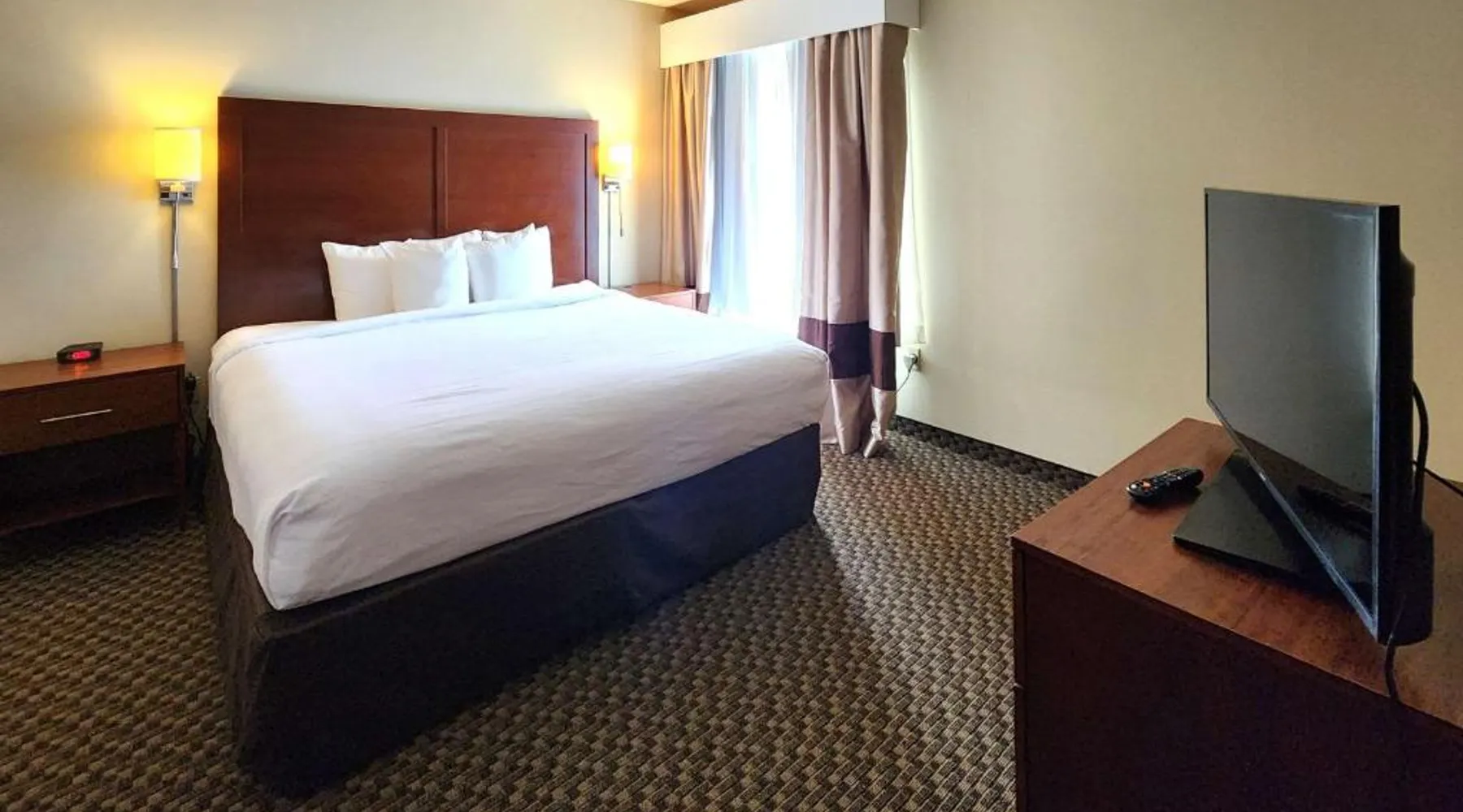 Located in the heart of the Pocono Mountains, the 100 percent nonsmoking Comfort Inn & Suites Mount Pocono hotel is close to popular area attractions. Nearby, visitors will find the Pocono Raceway, Camelbeach Waterpark and Peddler's Village, a premier shopping, dining and entertainment destination. For outdoor enthusiasts, Bushkill Falls and Delaware Water Gap National Recreation Area, offering white-water rafting, canoeing, kayaking, fishing and swimming, are only minutes away. Mount Airy Casino is four miles from the hotel. Skiers and snowboarders will appreciate the five major ski areas just minutes from this hotel. Additional points of interest include the Crossings Premium Outlets shopping center, American Candle Company and the Pocono Indian Museum. Several restaurants and cocktail lounges are located in the surrounding area. The hotel features a free breakfast, an indoor heated pool, hot tub, fitness room and game room. Business travelers can welcome the spacious work areas, high-speed Internet access and voice mail in every room. This hotel has a business center with meeting rooms that are perfect for hosting most functions. Guest rooms at this hotel come with coffee makers, hair dryers, safes, irons and ironing boards. In addition to standard amenities, some rooms have microwaves. For guest convenience, laundry facilities are located on the premises. The hotel also has a public safe. Featuring free toiletries, this twin/double room includes a private bathroom with a bath, a shower and a hairdryer. The twin/double room features air conditioning, a tea and coffee maker, a wardrobe, a carpeted floor, as well as a flat-screen TV with cable channels. The unit has 2 beds.