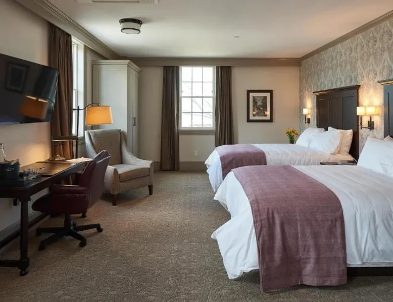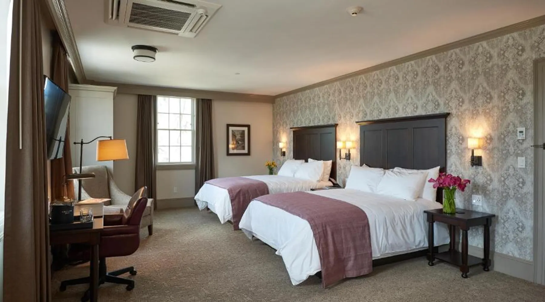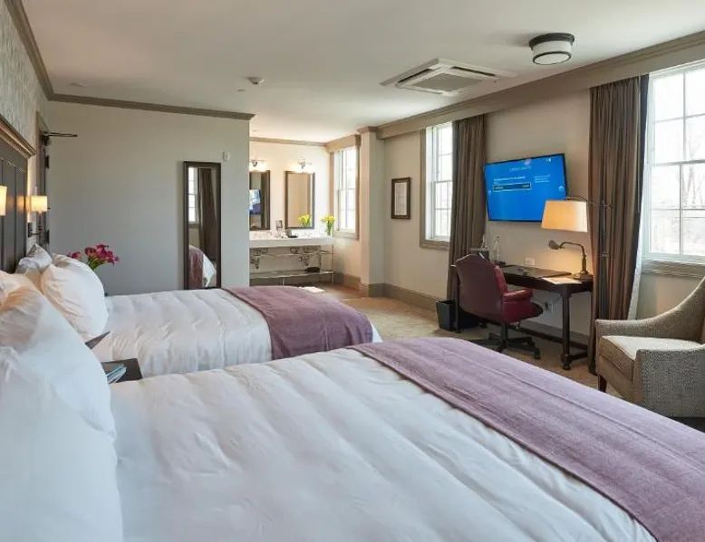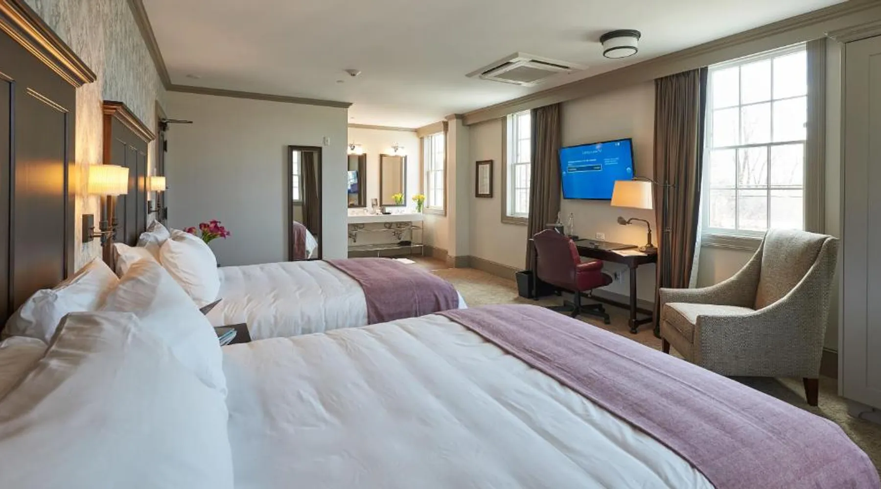 Comfortable Accommodations: The Groton Inn in Groton offers family rooms with private bathrooms, featuring bathrobes, hairdryers, work desks, free toiletries, wardrobes, and TVs. Each room includes a refrigerator and seating area, ensuring a pleasant stay. Exceptional Facilities: Guests can enjoy a fitness center, garden, terrace, restaurant, bar, and free WiFi. Additional amenities include an outdoor fireplace, fitness room, elevator, 24-hour front desk, concierge service, housekeeping, child-friendly buffet, business area, outdoor seating, and free on-site private parking. Dining Experience: The on-site restaurant serves American cuisine for dinner, complemented by a continental breakfast featuring fresh pastries and fruits. An outdoor seating area provides a pleasant setting for meals. Local Attractions: Located 20 mi from Minute Man National Historical Park and 30 mi from Mall Of New Hampshire, the hotel is near an ice-skating rink. Activities such as fishing, skiing, hiking, and cycling are available in the surrounding area. This quadruple room features a wardrobe, heating and a flat-screen TV. The unit offers 2 beds.
