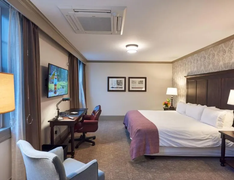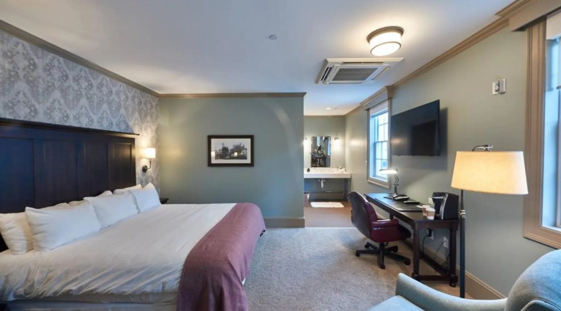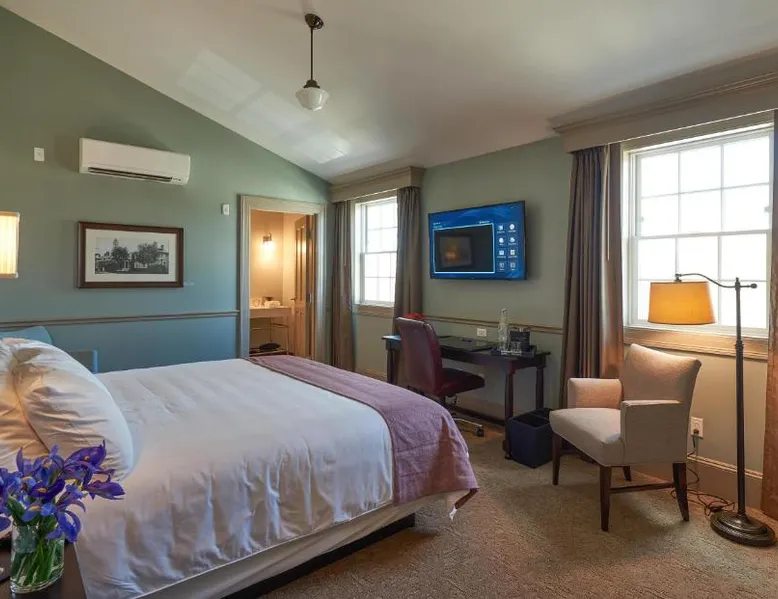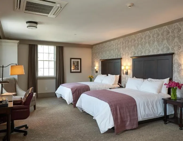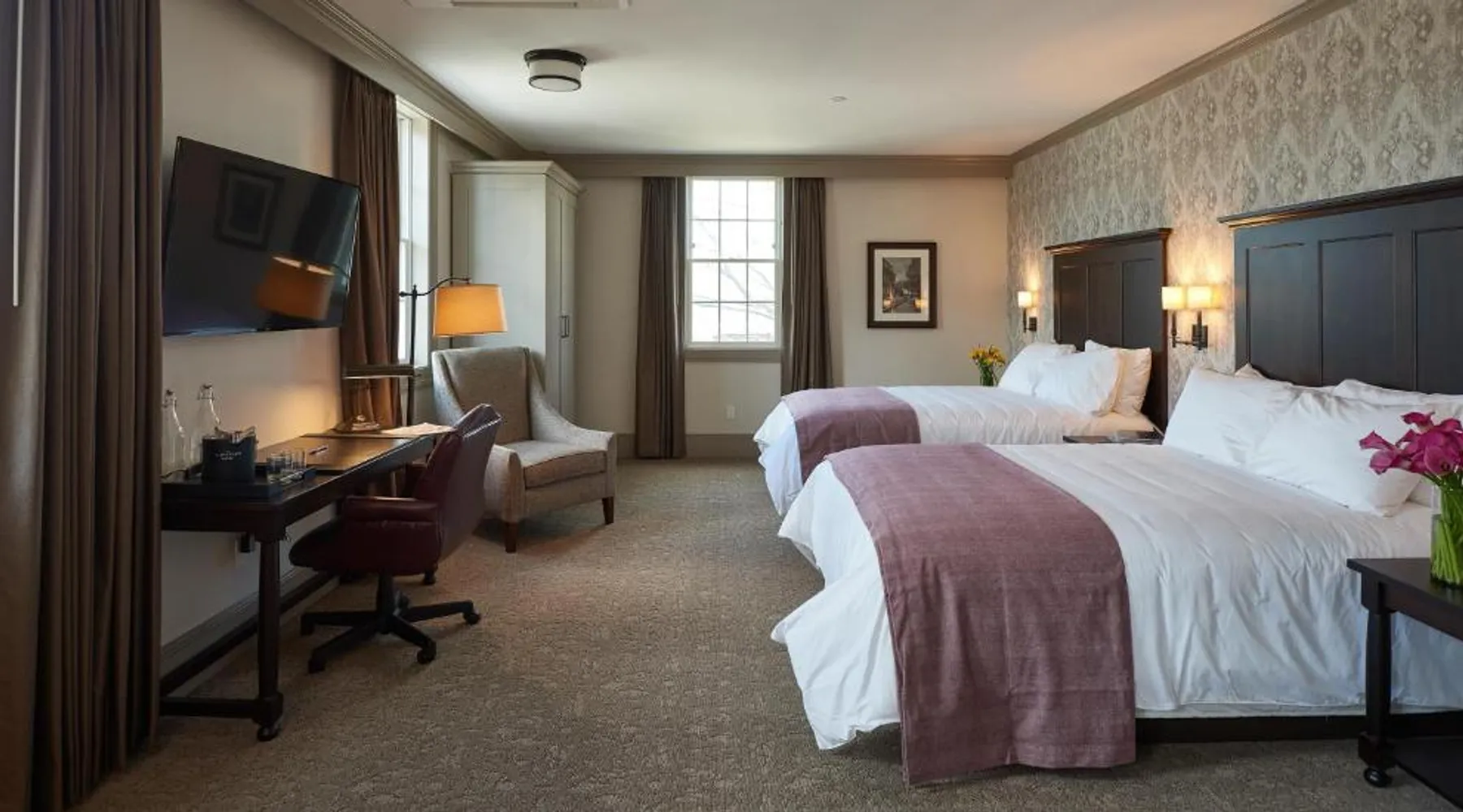 Comfortable Accommodations: The Groton Inn in Groton offers family rooms with private bathrooms, featuring bathrobes, hairdryers, work desks, free toiletries, wardrobes, and TVs. Each room includes a refrigerator and seating area, ensuring a pleasant stay. Exceptional Facilities: Guests can enjoy a fitness center, garden, terrace, restaurant, bar, and free WiFi. Additional amenities include an outdoor fireplace, fitness room, elevator, 24-hour front desk, concierge service, housekeeping, child-friendly buffet, business area, outdoor seating, and free on-site private parking. Dining Experience: The on-site restaurant serves American cuisine for dinner, complemented by a continental breakfast featuring fresh pastries and fruits. An outdoor seating area provides a pleasant setting for meals. Local Attractions: Located 20 mi from Minute Man National Historical Park and 30 mi from Mall Of New Hampshire, the hotel is near an ice-skating rink. Activities such as fishing, skiing, hiking, and cycling are available in the surrounding area. This quadruple room features a wardrobe, heating and a flat-screen TV. The unit offers 2 beds.