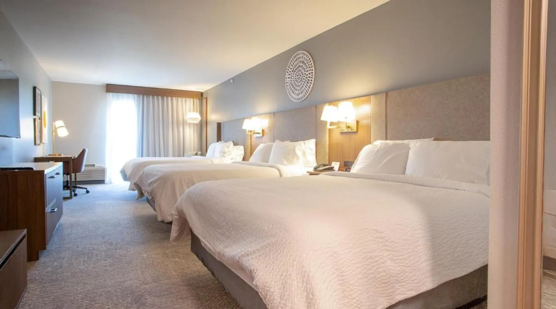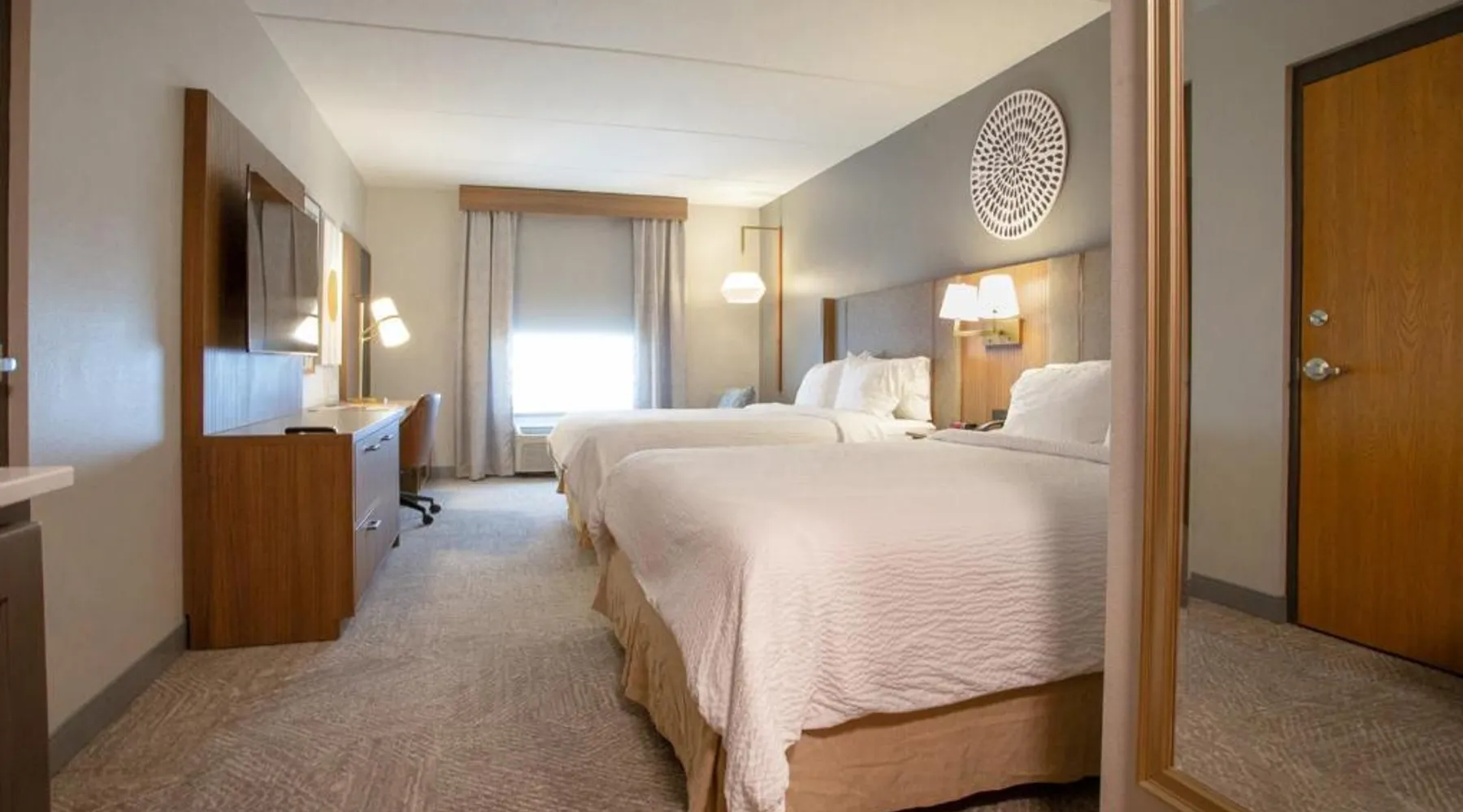 We will begin renovation on Monday March 3rd, 2025. All public areas and amenities will still be available, at this time we are beginning work on one of our guest room floors. This should not be an impact to your stay, however we wanted to make you aware prior to your arrival. If you have any further questions, please feel free to reach out! Just off Highway 10, a short drive from Dow Gardens, this hotel in Midland, Michigan offers contemporary guestrooms with free wireless internet access and an on-site restaurant. Holiday Inn Midland features an indoor pool and indoor/outdoor hot tub. Guests can also take advantage of the 24-hour fitness center or the well-equipped business center. The hotel's Sports Bar and Grill serves American cuisine for breakfast, lunch and dinner. Guestrooms at the Midland Holiday Inn offer 32-inch flat-screen TVs. Guests will also enjoy in-room microwaves, mini-refrigerators and coffeemakers. A kitchenette fitted with a refrigerator, a microwave and a tea and coffee maker is available for cooking and storing food. A seating area with a flat-screen TV, a desk, a balcony and a private bathroom are offered in this spacious double room. The unit has 3 beds.
