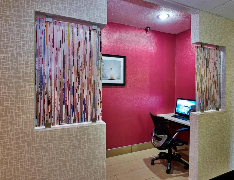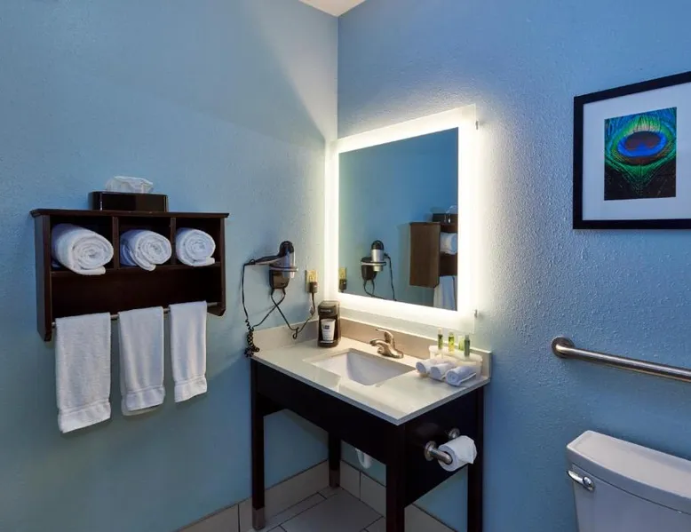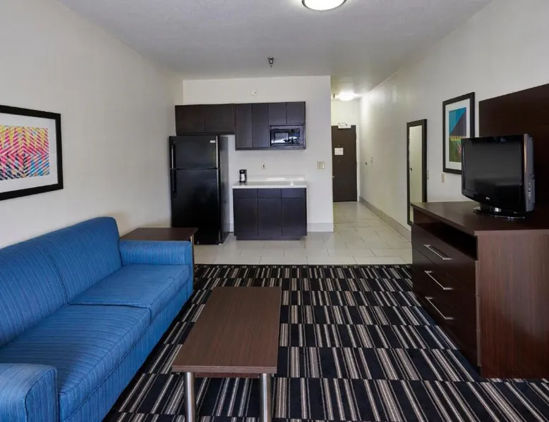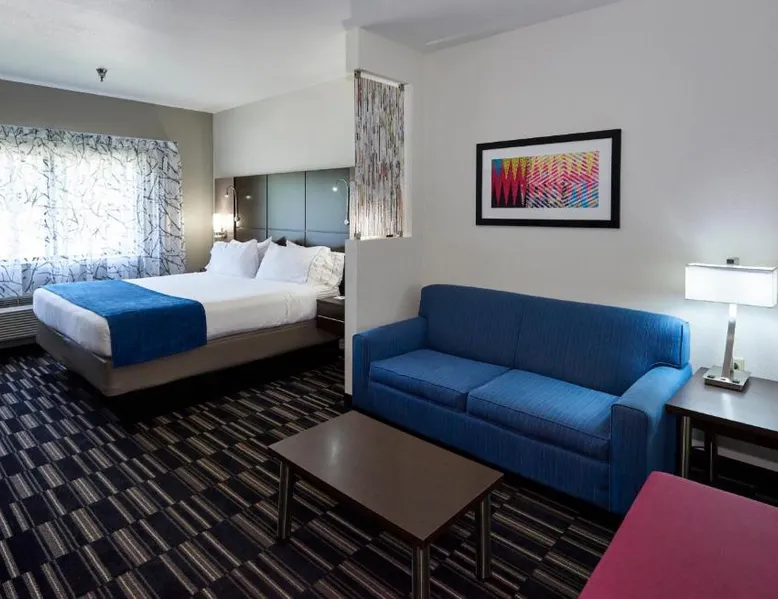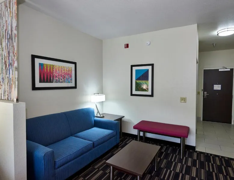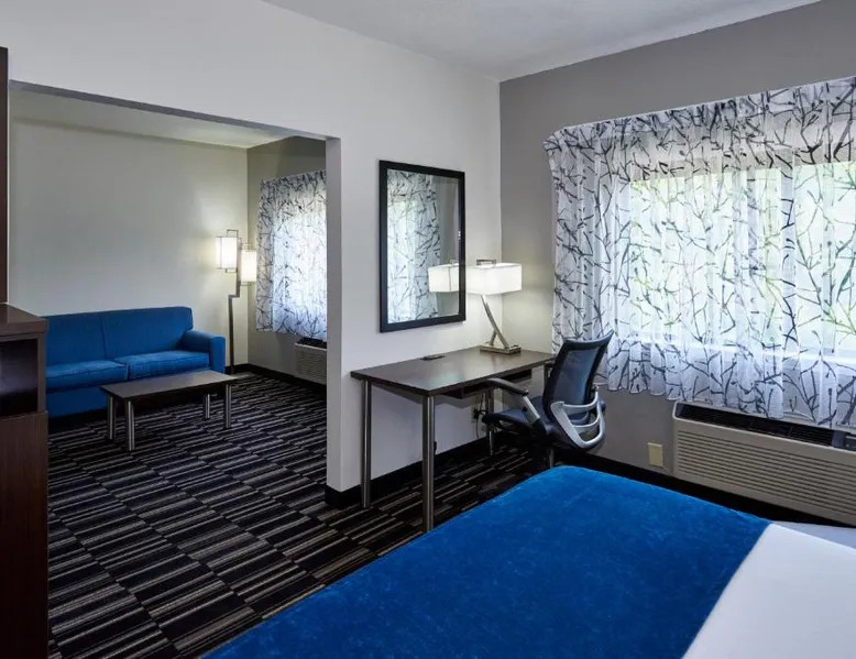Comfortable Accommodations: Holiday Inn Express & Suites Birmingham South - Pelham by IHG in Pelham offers family rooms with air-conditioning, private bathrooms, tea and coffee makers, and free WiFi. Each room includes a work desk, refrigerator, microwave, and sofa. Leisure Facilities: Guests can enjoy a fitness center, indoor swimming pool, and free on-site parking. Additional amenities include a elevator, 24-hour front desk, housekeeping service, and a business area. Prime Location: Located 20 mi from Birmingham-Shuttlesworth International Airport, the hotel is near attractions such as Samford University (11 mi), Birmingham Zoo (14 mi), and an ice-skating rink. Highly rated for its location, staff, and room cleanliness. This accessible room features a cable TV, seating area, and desk. Visual telephone and door alarms are also included.