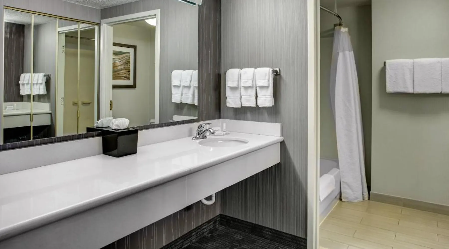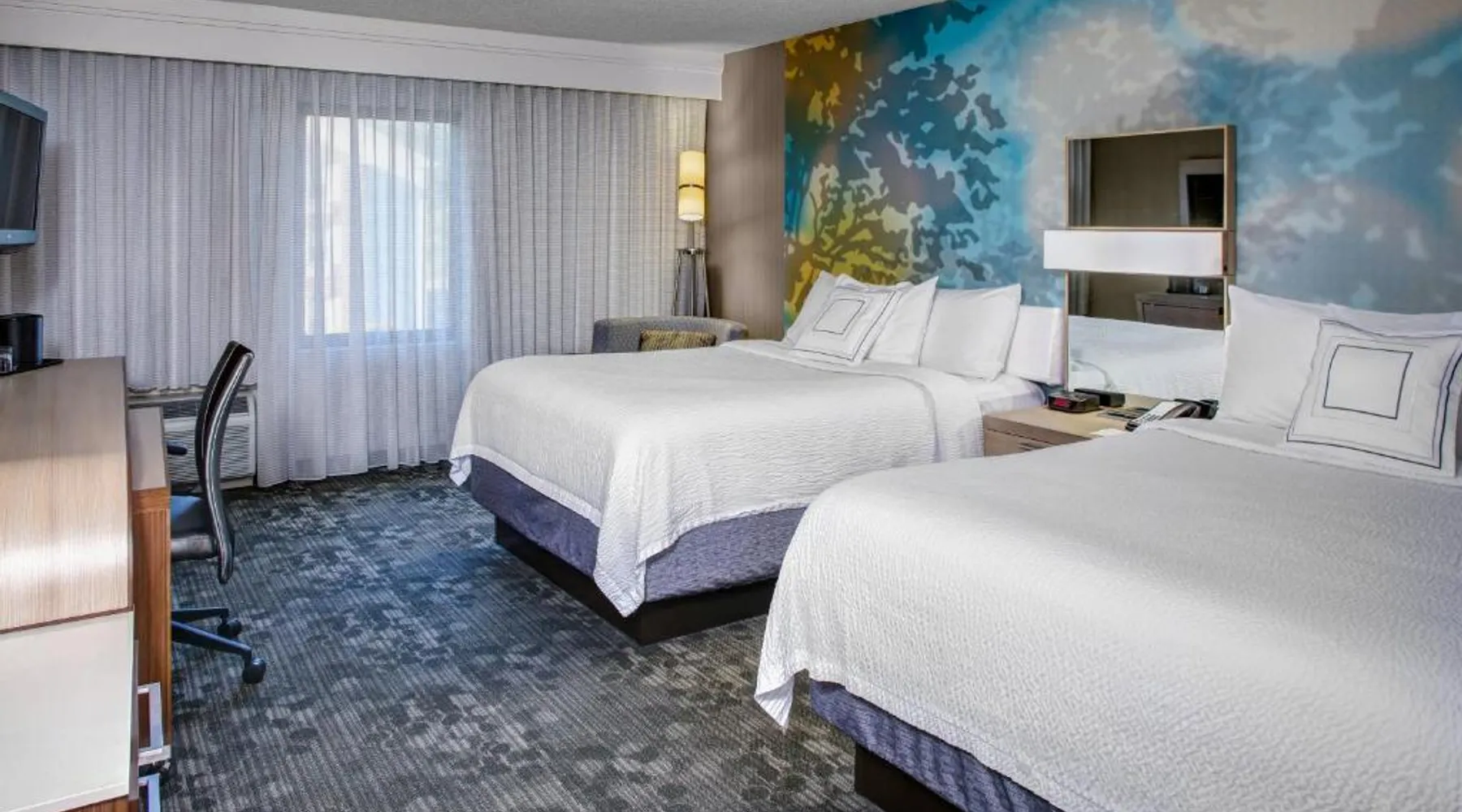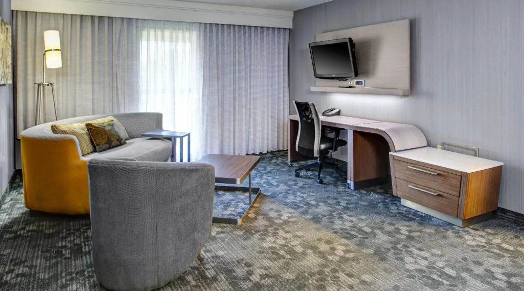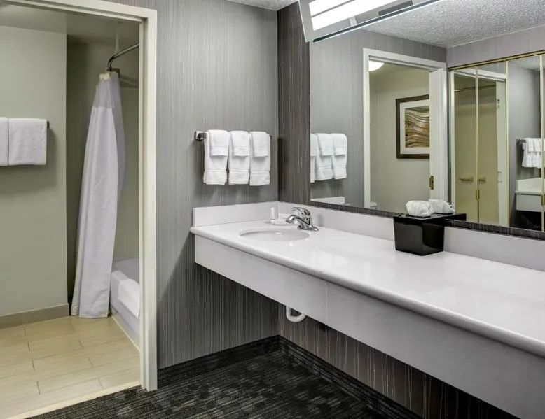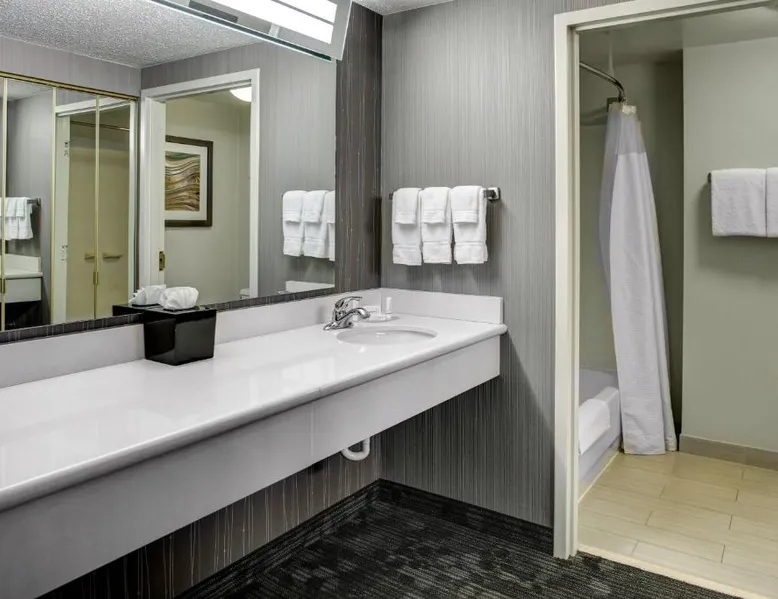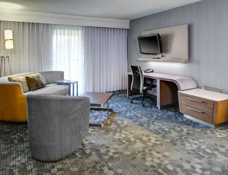 Comfortable Accommodations: Courtyard by Marriott Cleveland Westlake in Westlake offers family rooms with air-conditioning, private bathrooms, and modern amenities. Each room includes a work desk, TV, and soundproofing for a pleasant stay. Dining and Leisure: The hotel features a family-friendly restaurant serving American cuisine with vegetarian options. Guests can enjoy dinner and cocktails in a traditional and modern ambiance. Additional facilities include a fitness center, terrace, indoor swimming pool, and free WiFi. Convenient Location: Located 6.2 mi from Cleveland Hopkins International Airport, the hotel is near attractions such as Westfield Great Northern Shopping Center (5 mi) and Cleveland Browns Stadium (13 mi). Free on-site private parking is available. This room features cable TV and a work desk.