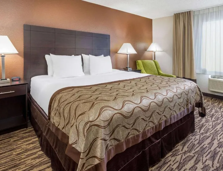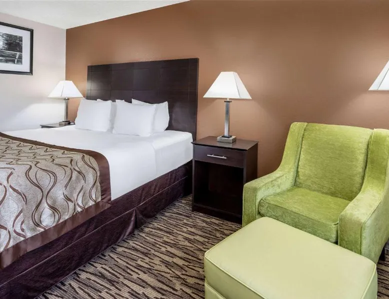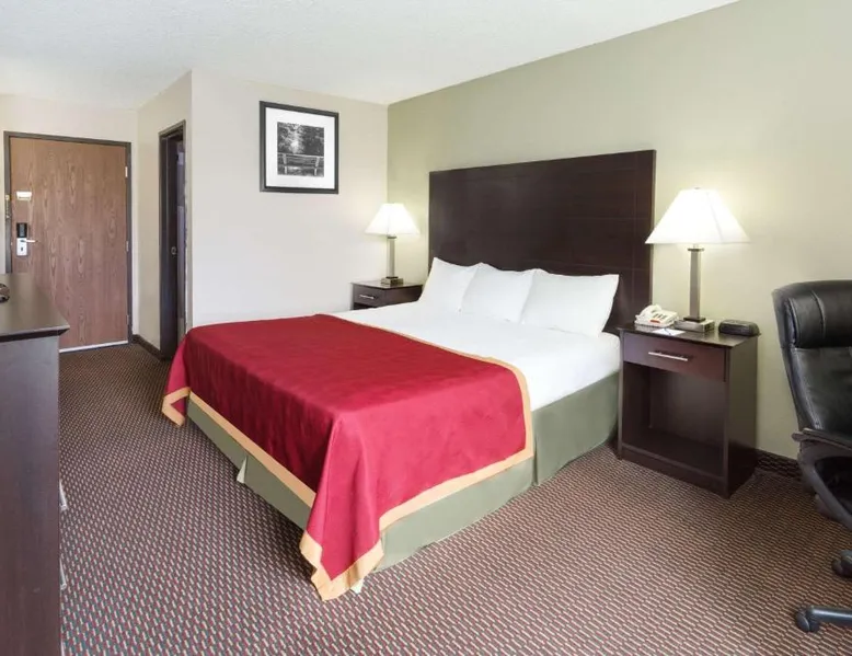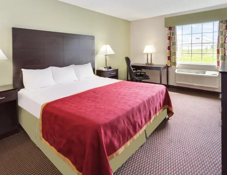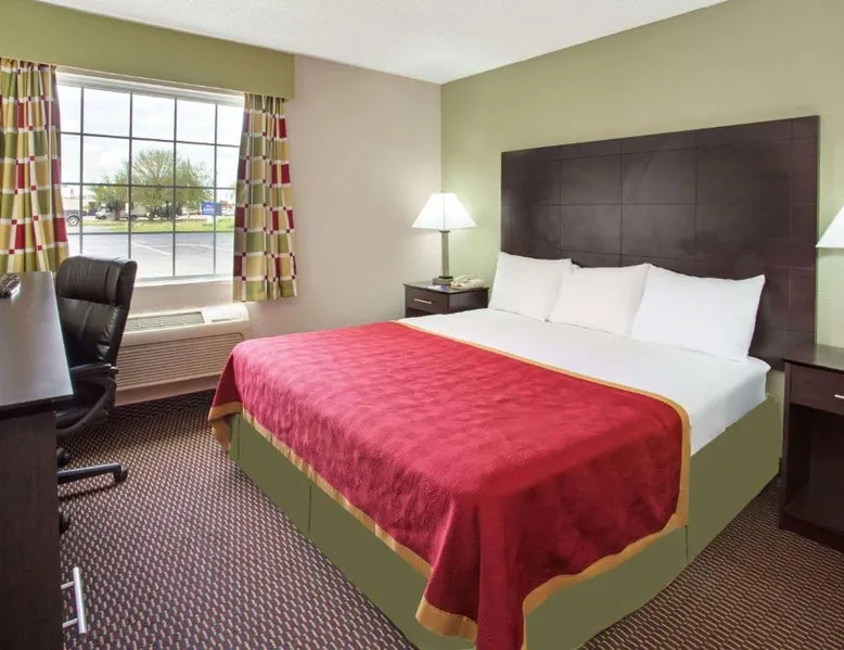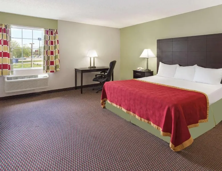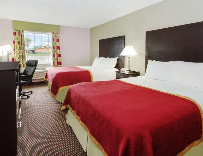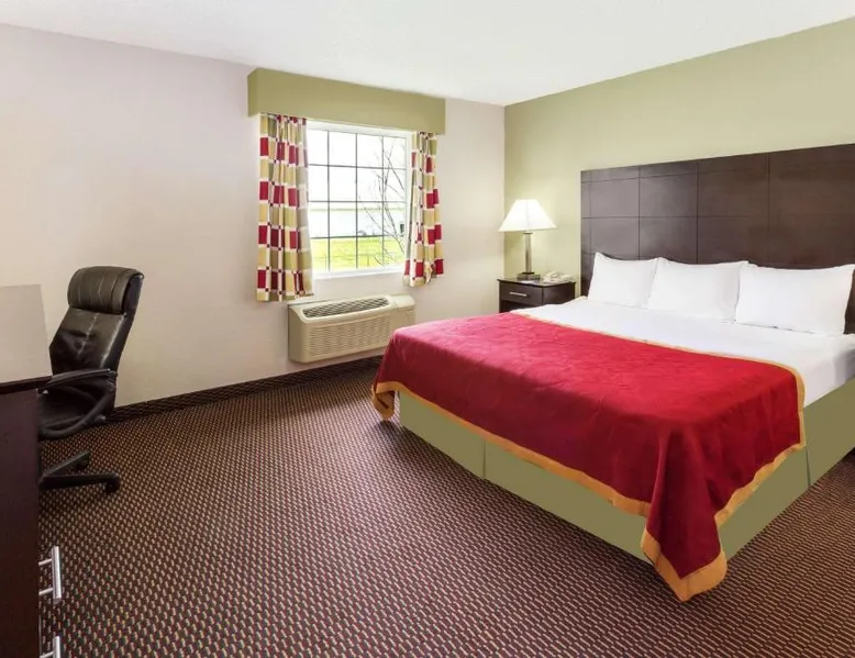 The Baymont Inn & Suites Beloit is close to a number of popular Wisconsin attractions. This Beloit, WI hotel provides easy access to local points of interest like Geneva Lakes Greyhound Track, Ledges Sporting Horses Stables and the Logan Museum of Anthropology. Enjoy America's favorite past time and catch a Beloit Snappers baseball game at nearby Pohlman Field, or frolic in the great outdoors at Pearl Lake and Horace White Park. Whether you are looking to have fun or just relax, Beloit and the surrounding area offers a variety of activities. There are many retailers and restaurants close to the hotel. This Beloit, WI hotel provides guests with features like free continental breakfast and free coffee, free wireless high-speed Internet access, free local calls, microwaves and refrigerators in all rooms and it is a pet-friendly hotel; fees apply. Business travelers can appreciate modern conveniences this Wisconsin hotel provides, including access to copy and fax service, and in-room amenities like spacious work desks. All guest rooms are equipped with coffee makers, flat-screen televisions, hair dryers, irons, ironing boards, safes and cable television. Nonsmoking rooms can be requested. Coin-operated laundry facilities are provided for guest use. Ample parking is available and can accommodate most vehicles. The spacious double room offers air conditioning, a seating area, as well as a private bathroom featuring a bath or a shower and a hairdryer. This double room features a carpeted floor, heating and a TV with cable channels. The unit offers 1 bed.
