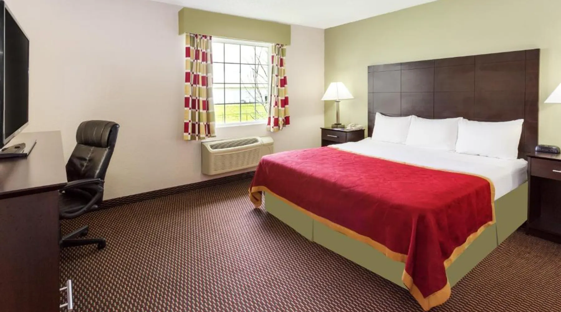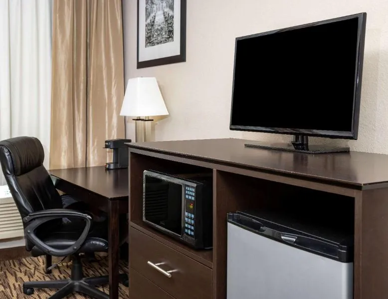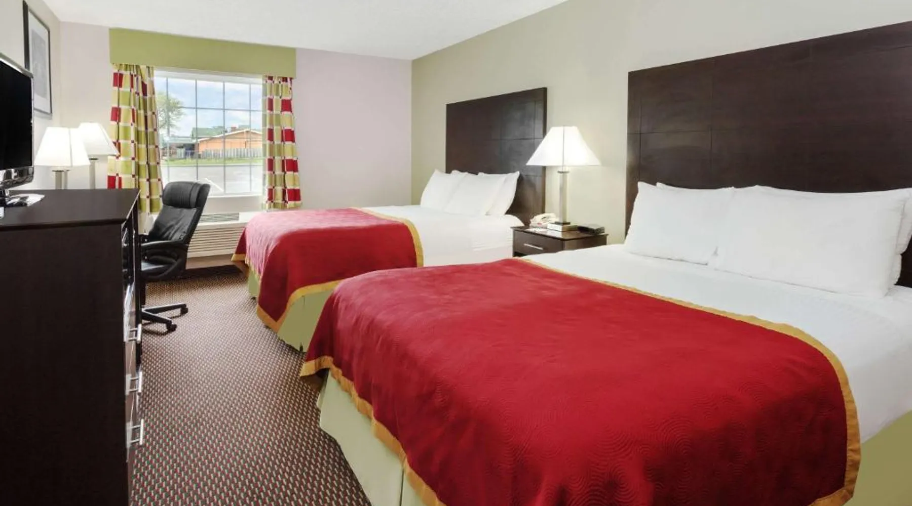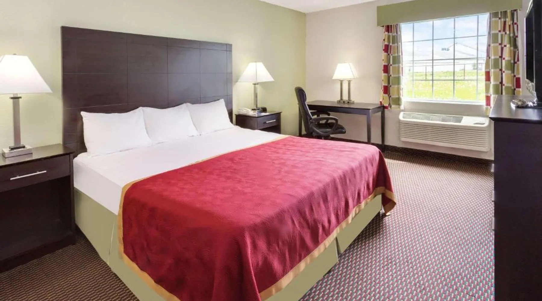 The Baymont Inn & Suites Beloit is close to a number of popular Wisconsin attractions. This Beloit, WI hotel provides easy access to local points of interest like Geneva Lakes Greyhound Track, Ledges Sporting Horses Stables and the Logan Museum of Anthropology. Enjoy America's favorite past time and catch a Beloit Snappers baseball game at nearby Pohlman Field, or frolic in the great outdoors at Pearl Lake and Horace White Park. Whether you are looking to have fun or just relax, Beloit and the surrounding area offers a variety of activities. There are many retailers and restaurants close to the hotel. This Beloit, WI hotel provides guests with features like free continental breakfast and free coffee, free wireless high-speed Internet access, free local calls, microwaves and refrigerators in all rooms and it is a pet-friendly hotel; fees apply. Business travelers can appreciate modern conveniences this Wisconsin hotel provides, including access to copy and fax service, and in-room amenities like spacious work desks. All guest rooms are equipped with coffee makers, flat-screen televisions, hair dryers, irons, ironing boards, safes and cable television. Nonsmoking rooms can be requested. Coin-operated laundry facilities are provided for guest use. Ample parking is available and can accommodate most vehicles. The spacious double room offers air conditioning, a seating area, as well as a private bathroom featuring a bath or a shower and a hairdryer. This double room features a carpeted floor, heating and a TV with cable channels. The unit offers 1 bed.