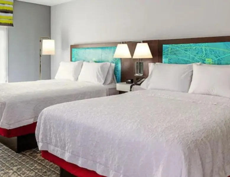 Comfortable Accommodations: Hampton Inn & Suites Ypsilanti in Ypsilanti offers family rooms with air-conditioning, private bathrooms, and modern amenities. Guests enjoy free WiFi, streaming services, and private parking. Leisure Facilities: The hotel features a fitness center, indoor swimming pool, and outdoor seating area. Additional facilities include a lounge, minimarket, and electric vehicle charging station. Dining Options: A child-friendly buffet serves American breakfast with warm dishes, fresh pastries, fruits, and juice. Nearby Attractions: Eastern Michigan University is 2.6 mi away, Yost Ice Arena 9.3 mi, and Ann Arbor Hands-On Museum 11 mi. Offering free toiletries, this quadruple room includes a private bathroom with a bath, a shower and a hairdryer. This quadruple room is air-conditioned and features a flat-screen TV with streaming services, a tea and coffee maker, a carpeted floor and heating. The unit offers 2 beds.