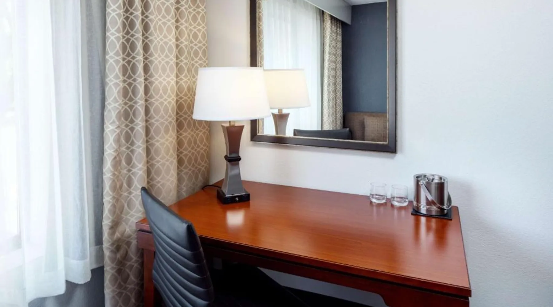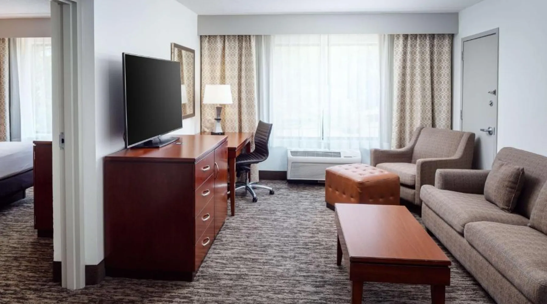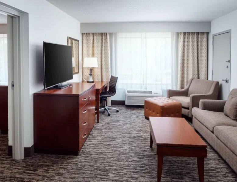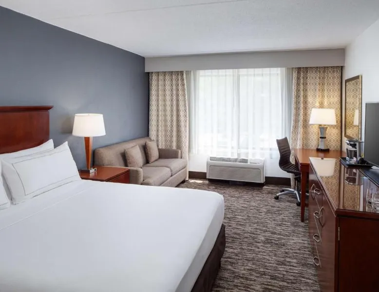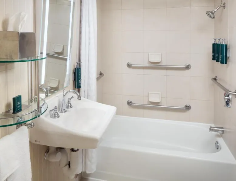 Located off US Highway 1, close to Princeton University and the historic town center of Princeton, New Jersey, this hotel offers contemporary facilities and convenient amenities, such as an on-site restaurant and lounge. The Doubletree by Hilton Princeton features a free shuttle to destinations and businesses within a 5-mile (5 mi) radius. After enjoying the signature warm chocolate chip cookie at check-in, guests can go for a swim in the heated indoor pool or work in the business center. Active guests will also appreciate the hotel's fitness center, which features Precor equipment. The Ridgeway Bar & Grille, the DoubleTree by Hilton Princeton's restaurant, serves delicious steaks and fresh North Atlantic seafood. It is open for breakfast, lunch and dinner and room service is also available. Guests can also visit the hotel's concierge for information on local dining and entertainment options. This suite has air conditioning, a tea and coffee maker and a TV. The unit has 2 beds.