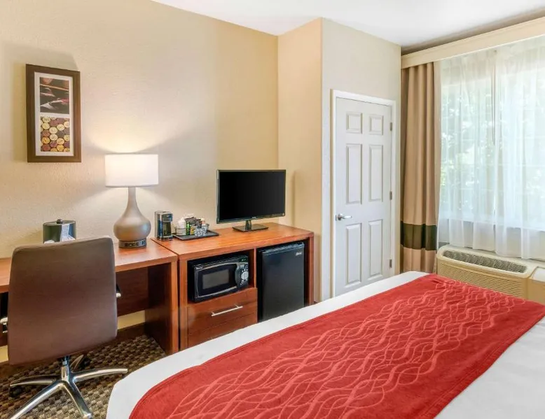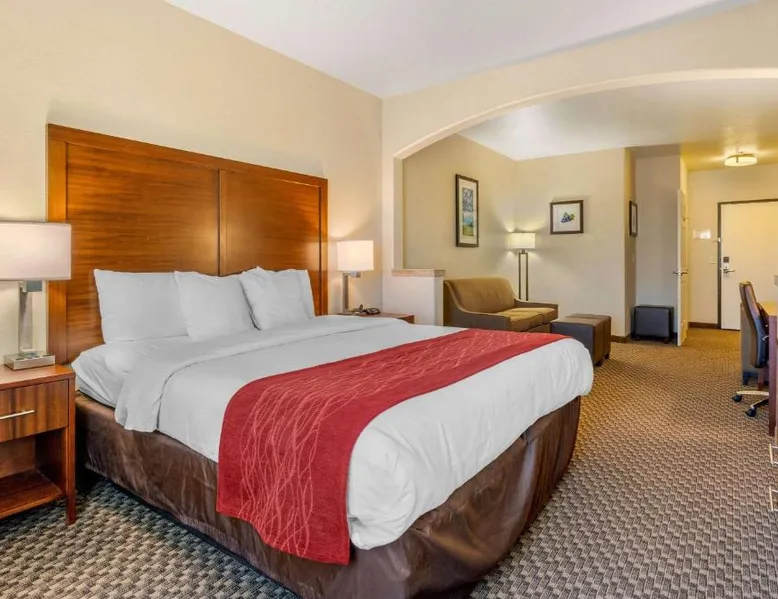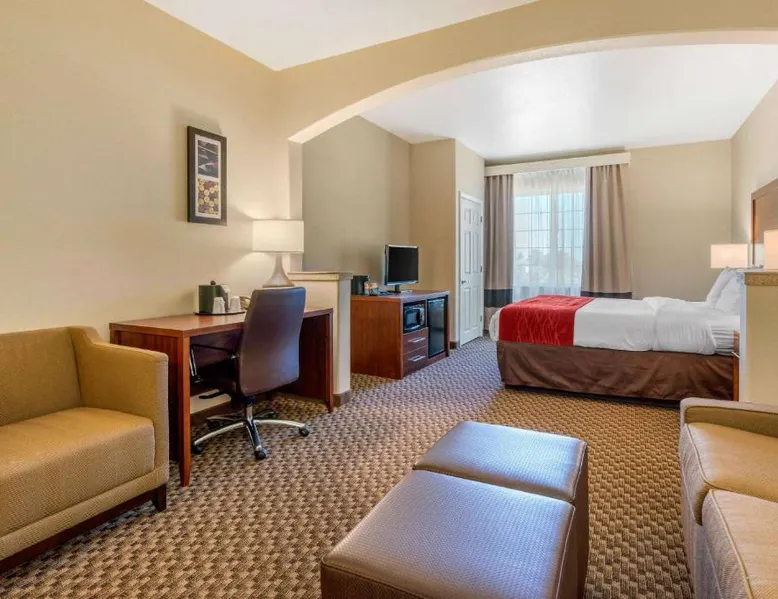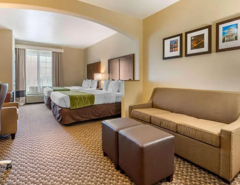 Comfortable Accommodations: Comfort Inn & Suites Galt - Lodi North in Galt offers family rooms with private bathrooms, air-conditioning, and free WiFi. Each room includes a tea and coffee maker, work desk, and soundproofing for a restful stay. Wellness and Fitness: Guests can relax in the spa and wellness center or stay active in the fitness center. Additional amenities include a hot tub, sauna, and fitness room, ensuring a balanced and enjoyable experience. Convenient Location: Located 29 mi from Stockton Metropolitan Airport, the hotel is near attractions such as University of the Pacific (25 mi) and Sacramento Zoo (22 mi). Free on-site private parking is available for guests. Exceptional Service: Highly rated for its convenient location, attentive staff, and impeccable room cleanliness, Comfort Inn & Suites Galt - Lodi North provides excellent service support and a welcoming environment. Guests will have a special experience as this twin/double room provides a hot tub. Offering free toiletries, this twin/double room includes a private bathroom with a bath, a shower and a hairdryer. The spacious air-conditioned twin/double room offers a flat-screen TV with cable channels, a private entrance, soundproof walls, a tea and coffee maker as well as a quiet street view. The unit offers 3 beds.