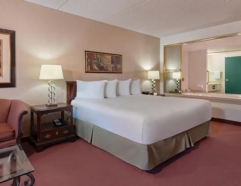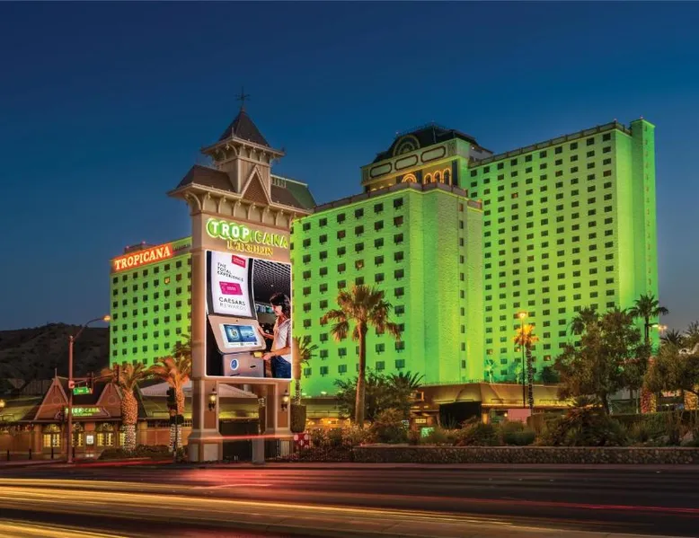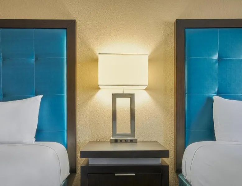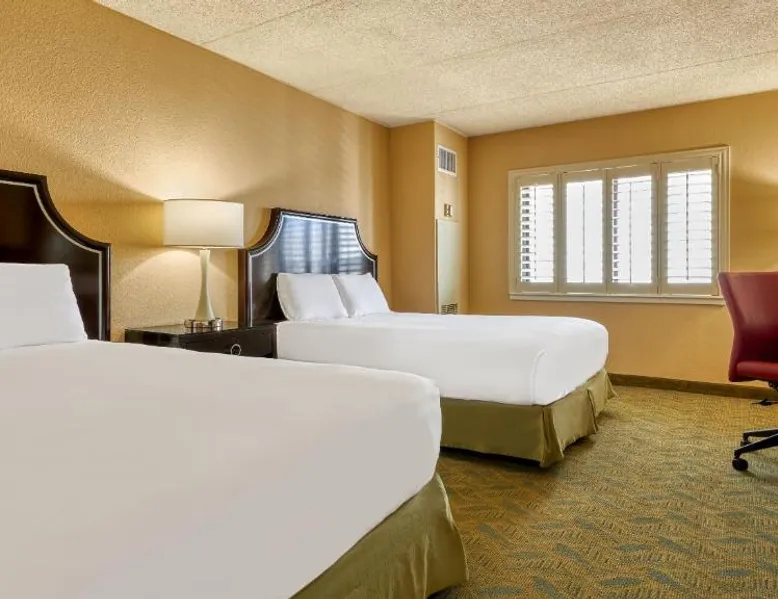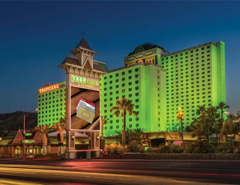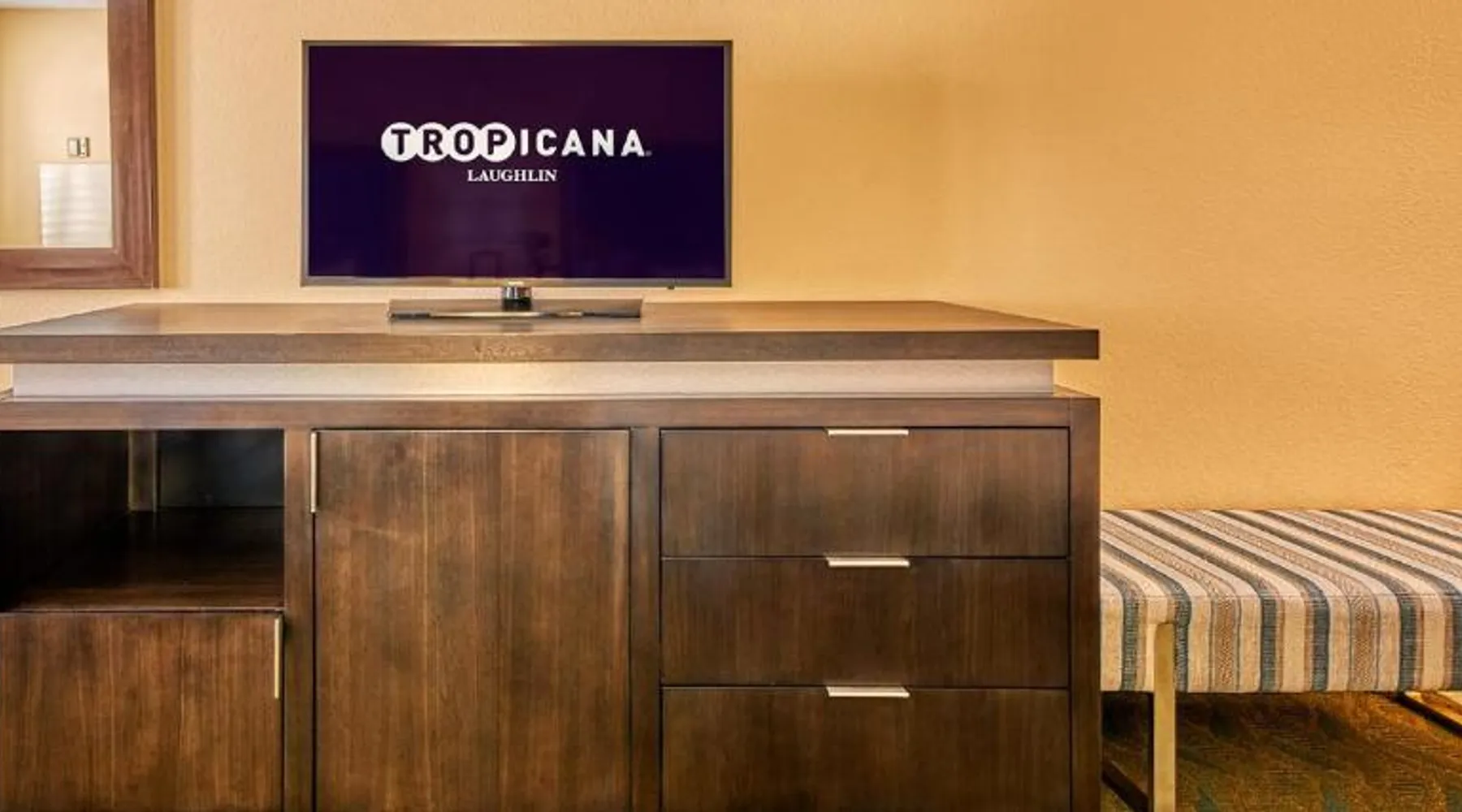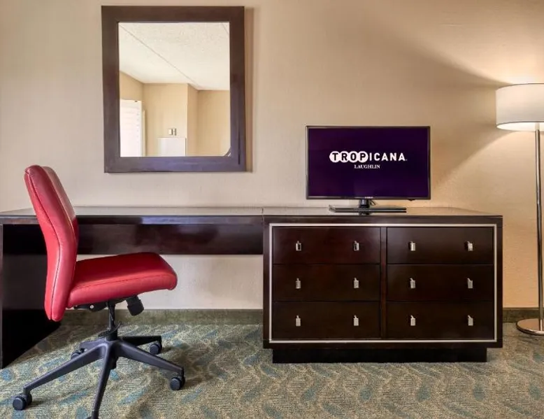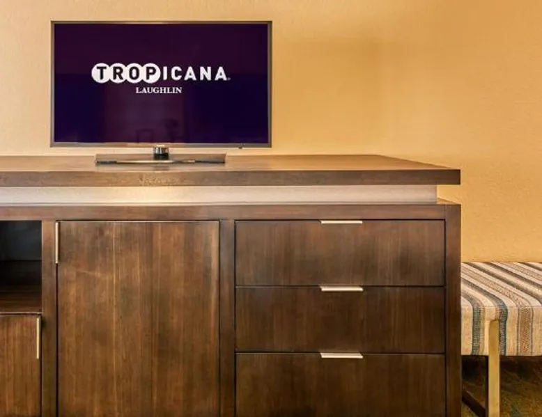 Tropicana Laughlin, a Caesars Rewards Casino property offers features a year around outdoor pool, dining options, bars and retail outlets. The on-site casino offers favorites such as slots and video poker. The comfortable rooms include flat-screen TVs. Laughlin/Bullhead International Airport is 7 minutes’ drive away. Guest rooms at Tropicana Laughlin include coffee-making facilities, a seating area and a desk. Select rooms offer river views. Guests can enjoy sporting events, music videos, concerts and movies on the 140-inch poolside HDTV. A hot tub and private cabana rentals are also provided in the pool area. Lake Mohave is 3.7 mi from this resort hotel. The Mohave National Preserve is 2 hours’ drive away. Las Vegas is 90 minutes’ drive from Tropicana Laughlin. Resort fee inclusions: In-room Wi-Fi Pool access at Tropicana and Harrah's Harrah's fitness center Self-parking Complimentary bottles of water in-room Harrah's Beach access The spacious double room offers air conditioning, a tea and coffee maker, as well as a private bathroom featuring a bath and a shower. The double room features a wardrobe, a carpeted floor, heating, as well as a flat-screen TV with cable channels. The unit offers 1 bed.