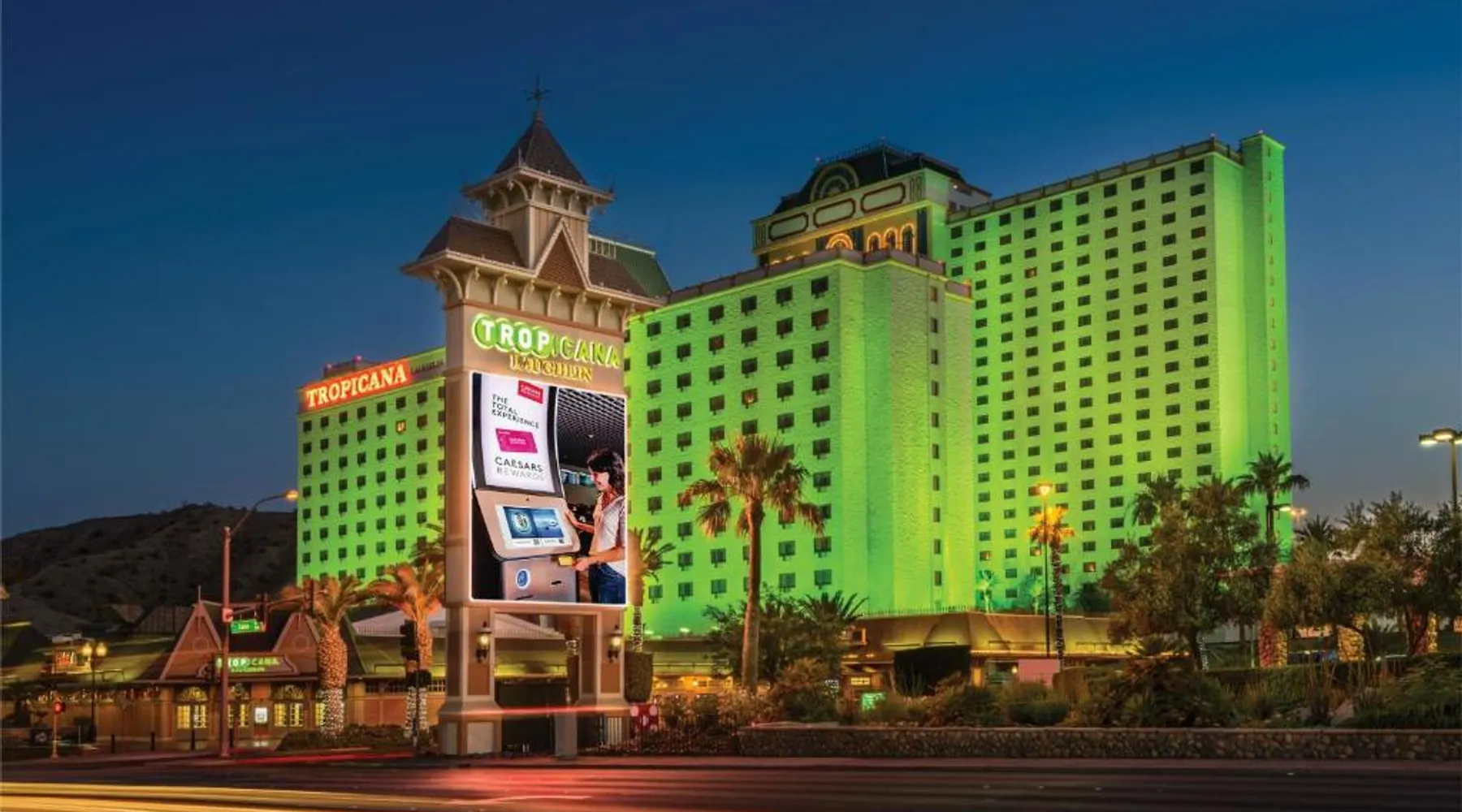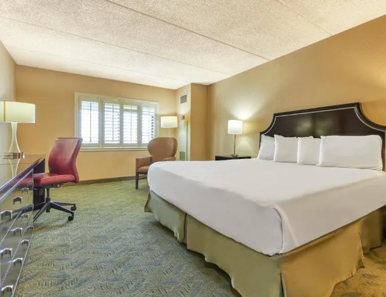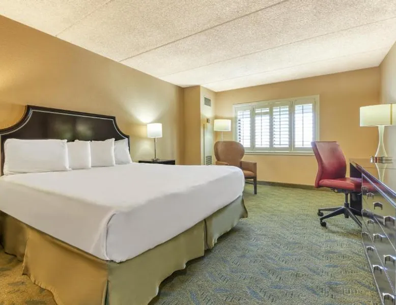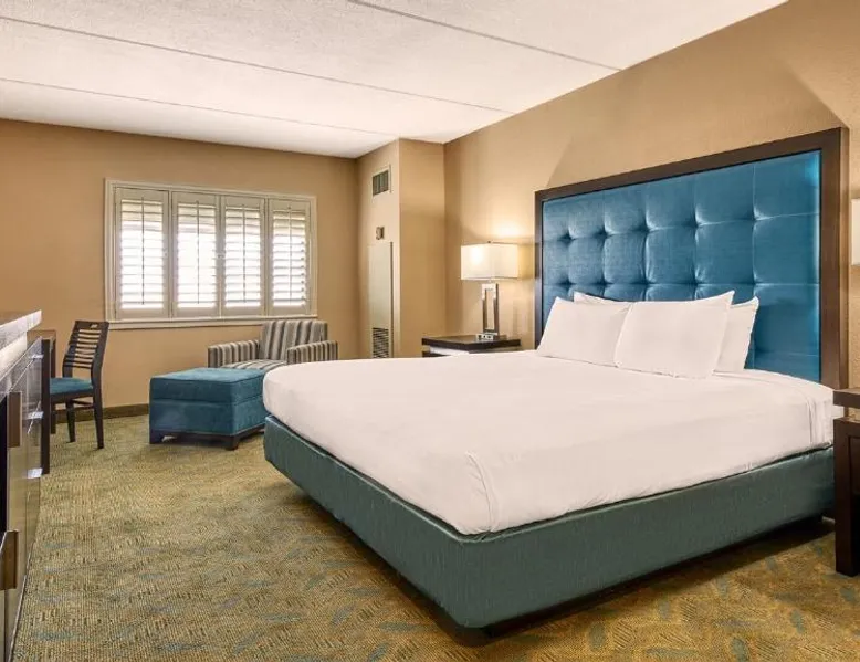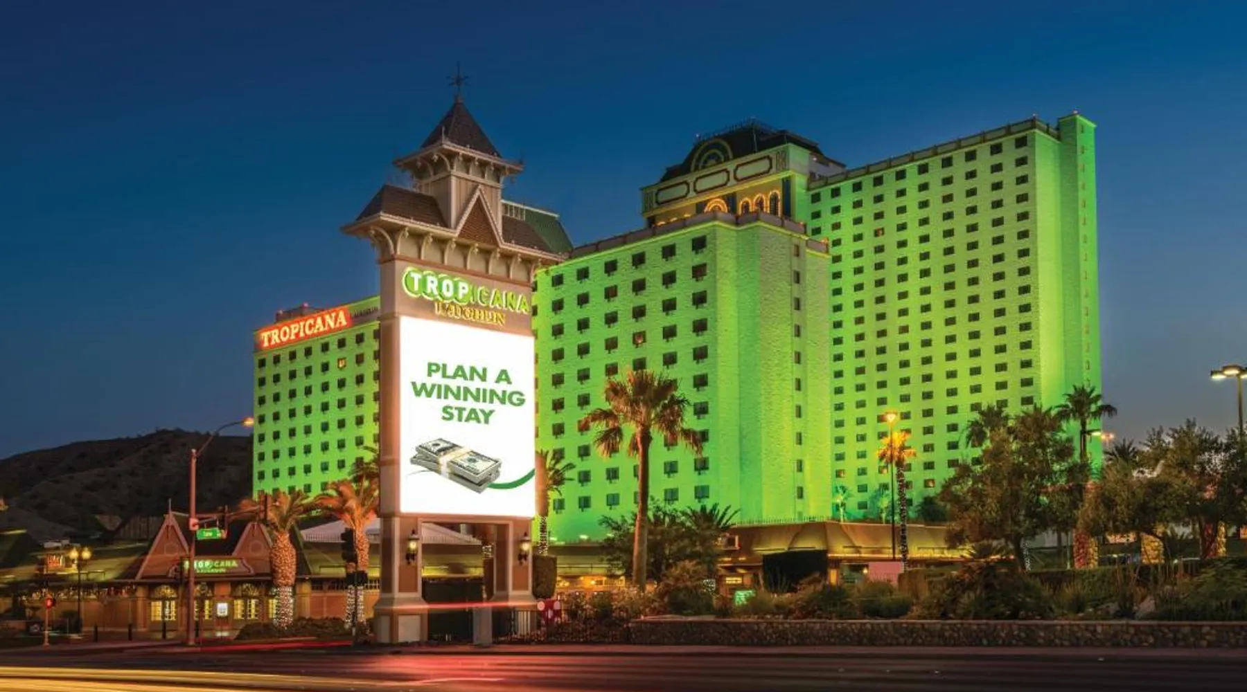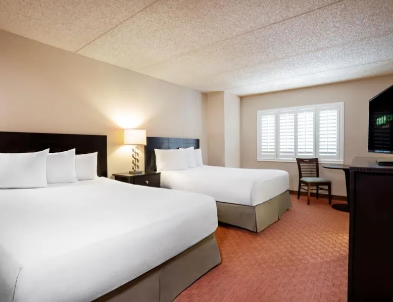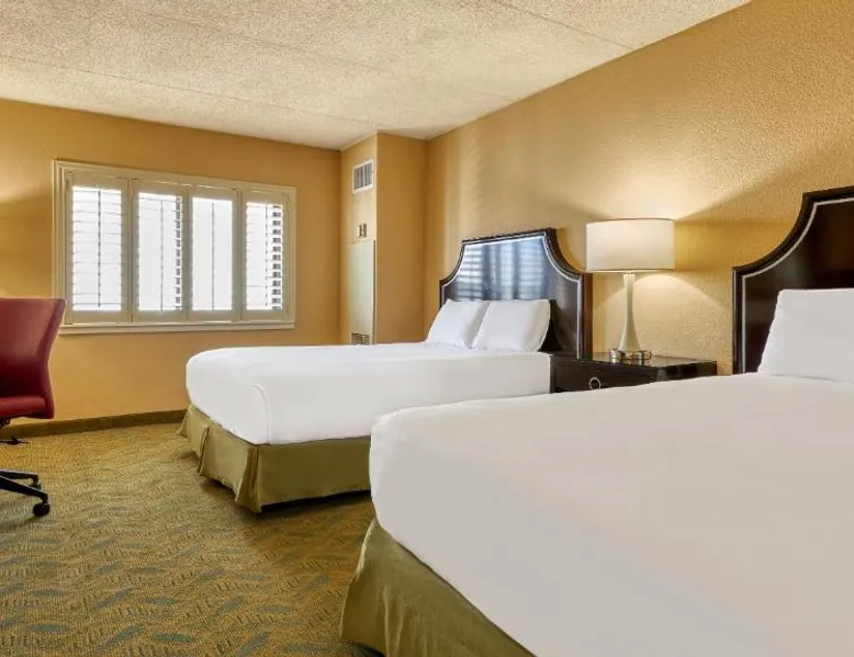 Tropicana Laughlin, a Caesars Rewards Casino property offers features a year around outdoor pool, dining options, bars and retail outlets. The on-site casino offers favorites such as slots and video poker. The comfortable rooms include flat-screen TVs. Laughlin/Bullhead International Airport is 7 minutes’ drive away. Guest rooms at Tropicana Laughlin include coffee-making facilities, a seating area and a desk. Select rooms offer river views. Guests can enjoy sporting events, music videos, concerts and movies on the 140-inch poolside HDTV. A hot tub and private cabana rentals are also provided in the pool area. Lake Mohave is 3.7 mi from this resort hotel. The Mohave National Preserve is 2 hours’ drive away. Las Vegas is 90 minutes’ drive from Tropicana Laughlin. Resort fee inclusions: In-room Wi-Fi Pool access at Tropicana and Harrah's Harrah's fitness center Self-parking Complimentary bottles of water in-room Harrah's Beach access The spacious double room offers air conditioning, a tea and coffee maker, as well as a private bathroom featuring a bath and a shower. The double room features a wardrobe, a carpeted floor, heating, as well as a flat-screen TV with cable channels. The unit offers 1 bed.