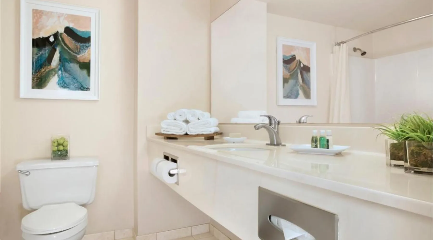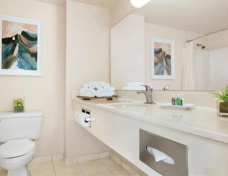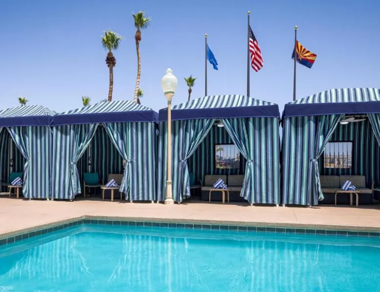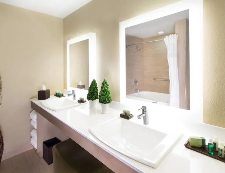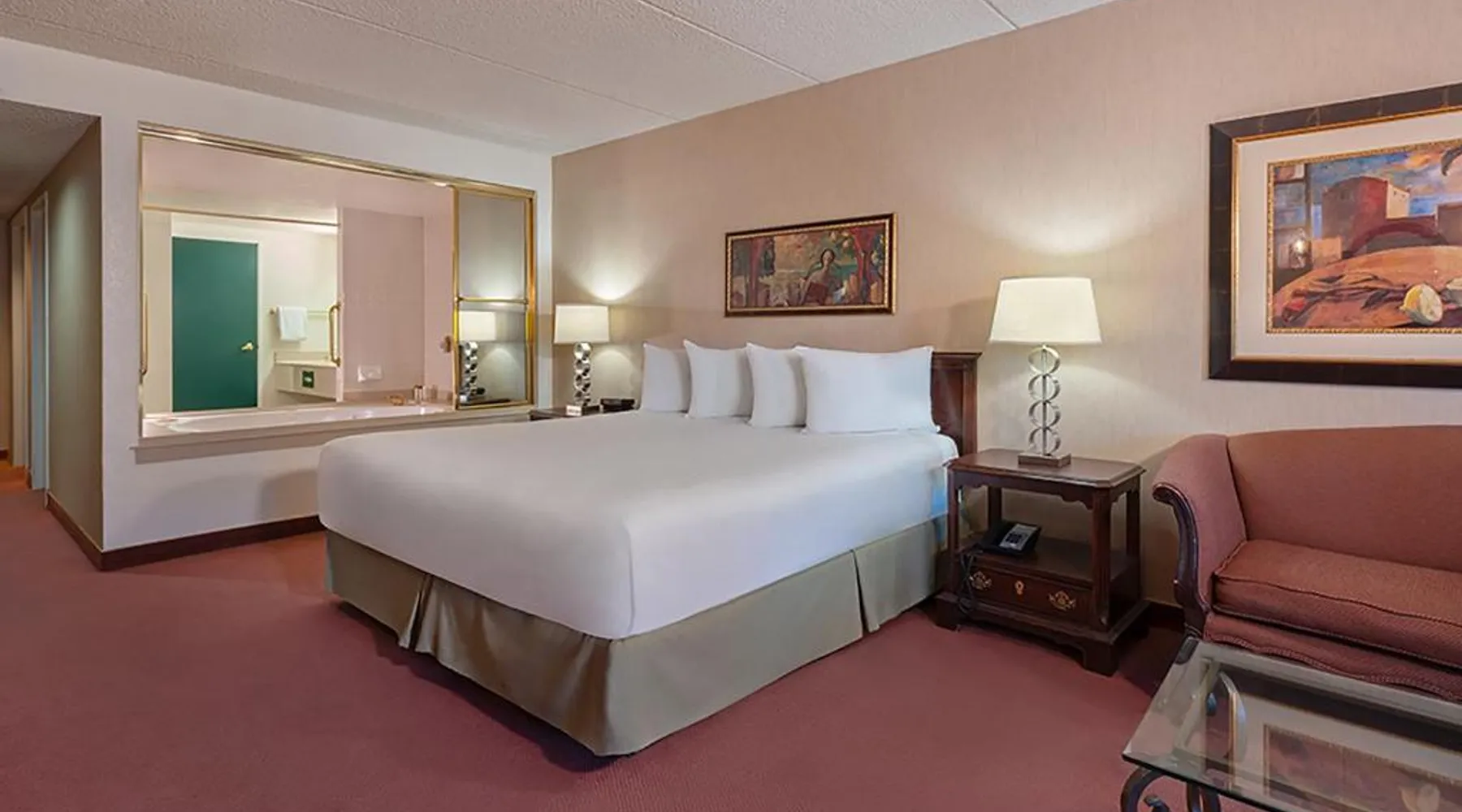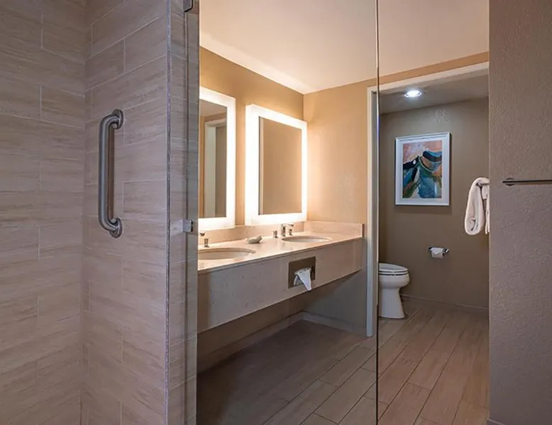 Tropicana Laughlin, a Caesars Rewards Casino property offers features a year around outdoor pool, dining options, bars and retail outlets. The on-site casino offers favorites such as slots and video poker. The comfortable rooms include flat-screen TVs. Laughlin/Bullhead International Airport is 7 minutes’ drive away. Guest rooms at Tropicana Laughlin include coffee-making facilities, a seating area and a desk. Select rooms offer river views. Guests can enjoy sporting events, music videos, concerts and movies on the 140-inch poolside HDTV. A hot tub and private cabana rentals are also provided in the pool area. Lake Mohave is 3.7 mi from this resort hotel. The Mohave National Preserve is 2 hours’ drive away. Las Vegas is 90 minutes’ drive from Tropicana Laughlin. Resort fee inclusions: In-room Wi-Fi Pool access at Tropicana and Harrah's Harrah's fitness center Self-parking Complimentary bottles of water in-room Harrah's Beach access The spacious double room offers air conditioning, a tea and coffee maker, as well as a private bathroom featuring a bath and a shower. The double room features a wardrobe, a carpeted floor, heating, as well as a flat-screen TV with cable channels. The unit offers 1 bed.