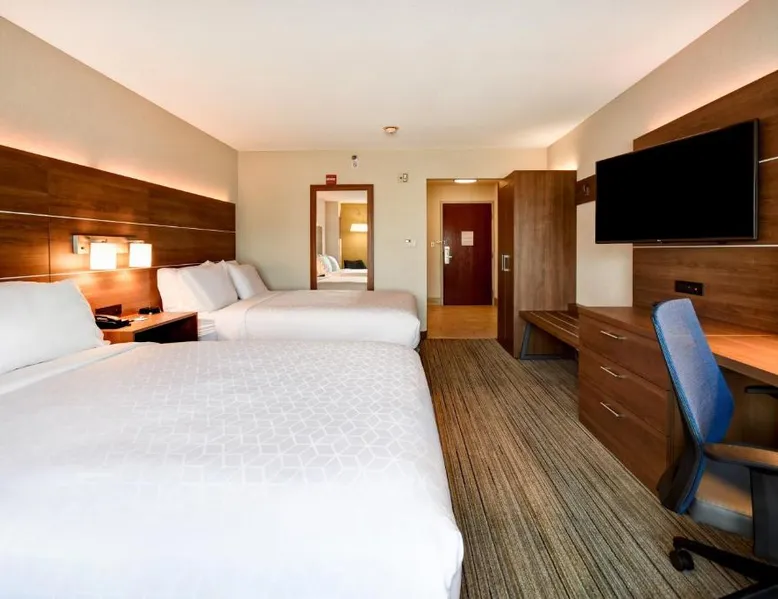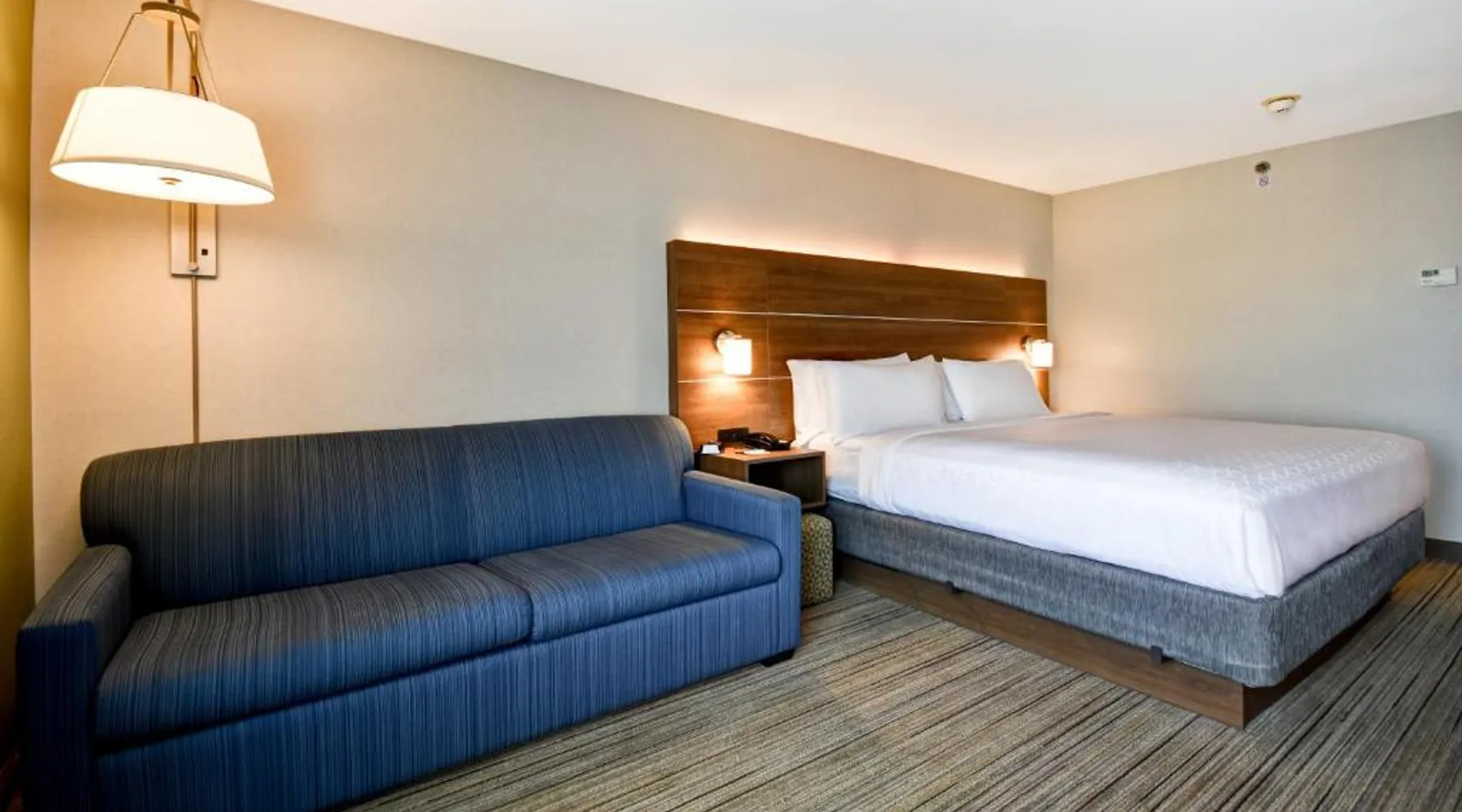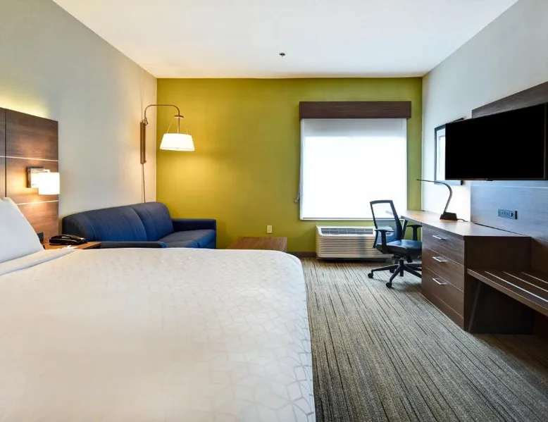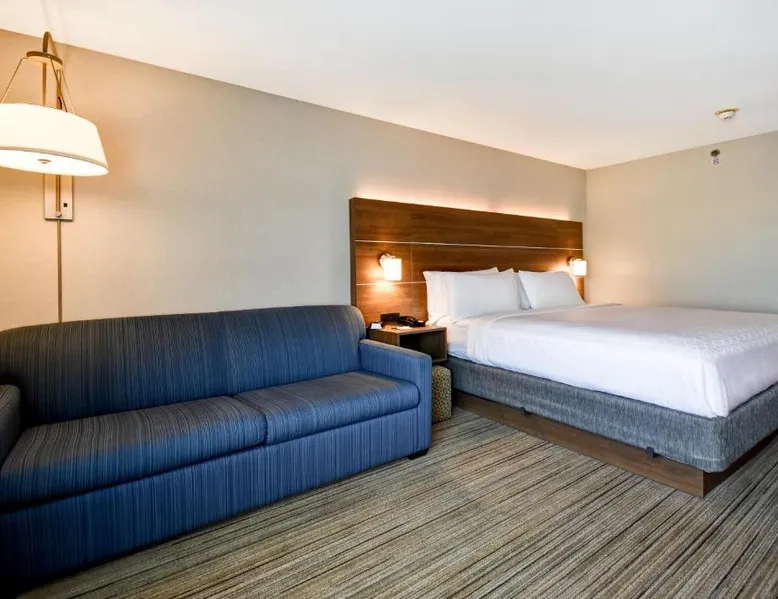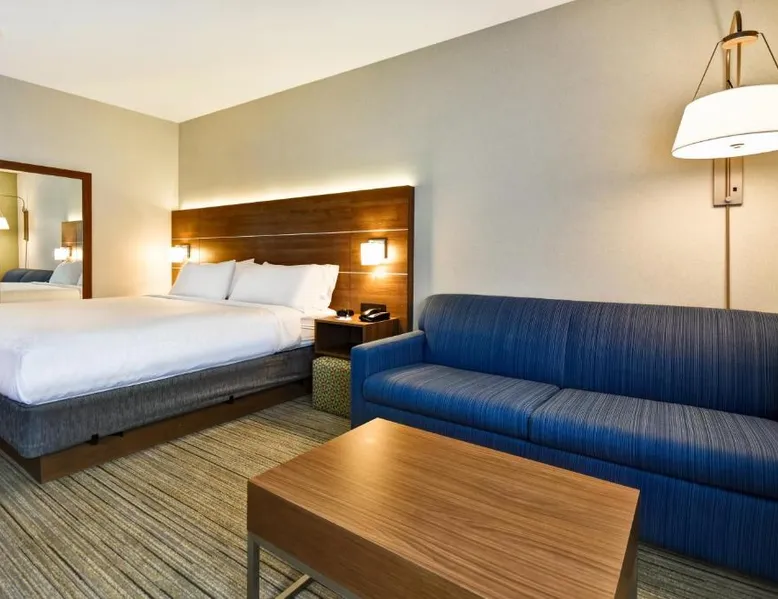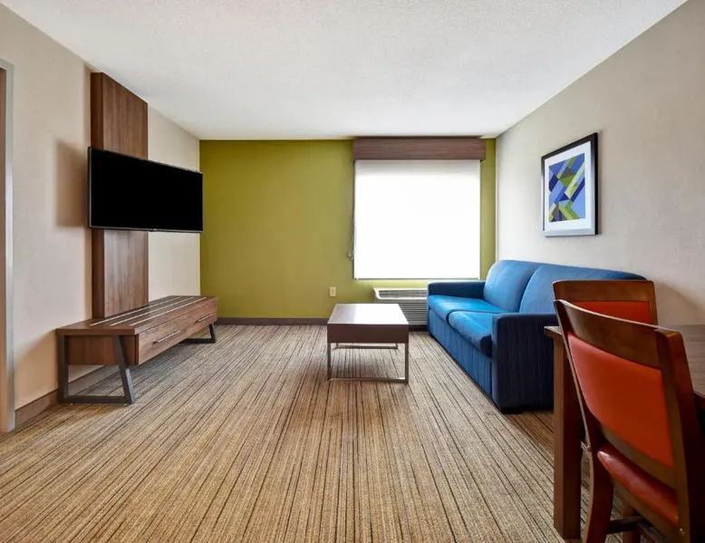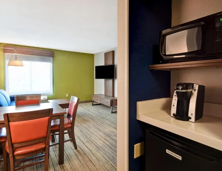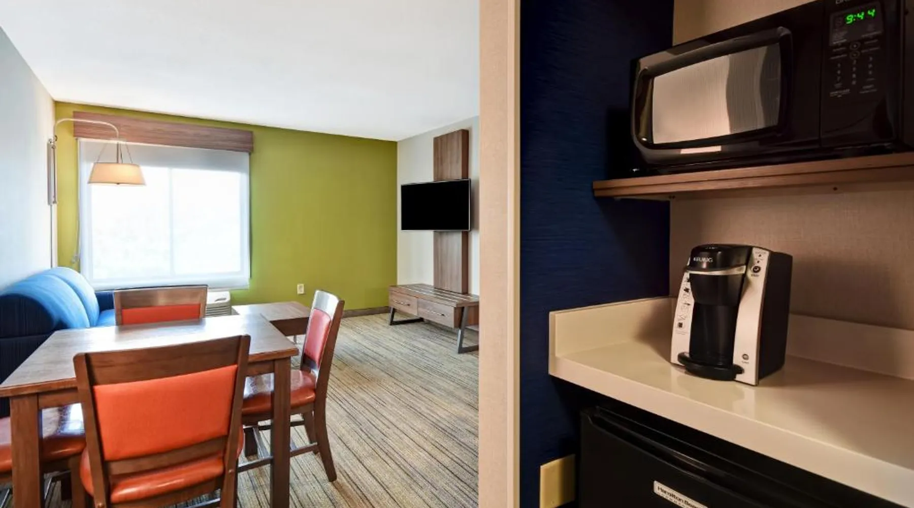Comfortable Accommodations: Holiday Inn Express Newport North - Middletown by IHG in Middletown offers family rooms with air-conditioning, private bathrooms, and city views. Each room includes a tea and coffee maker, work desk, and free toiletries. Exceptional Facilities: Guests enjoy a fitness center, sun terrace, and indoor swimming pool. Additional amenities include a lounge, business area, and outdoor seating. Free on-site parking is available. Prime Location: Located 27 mi from New Bedford Regional Airport, the hotel is near attractions such as the International Tennis Hall of Fame (3.1 mi) and The Breakers (4.3 mi). Guests appreciate the friendly staff and comfortable rooms. Large room kitchenette and seating area with sofa bed.