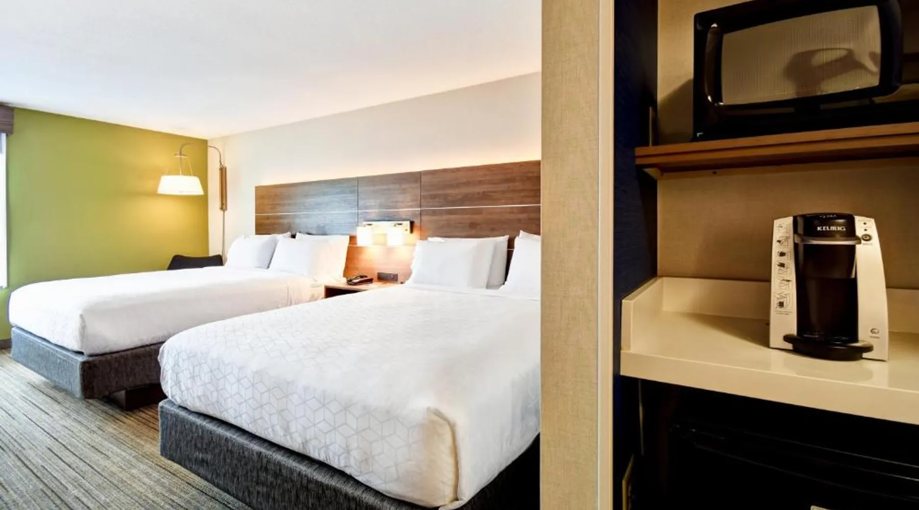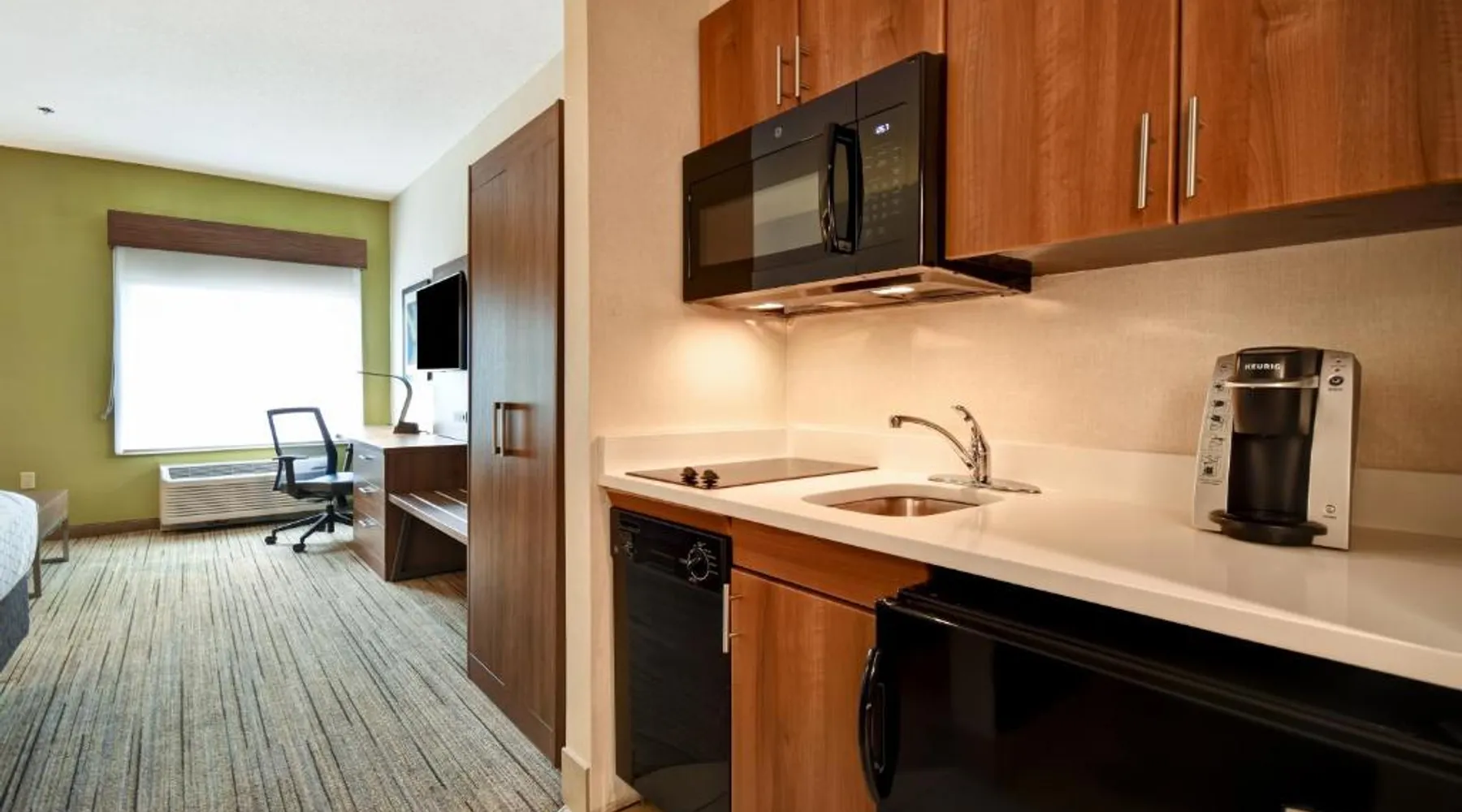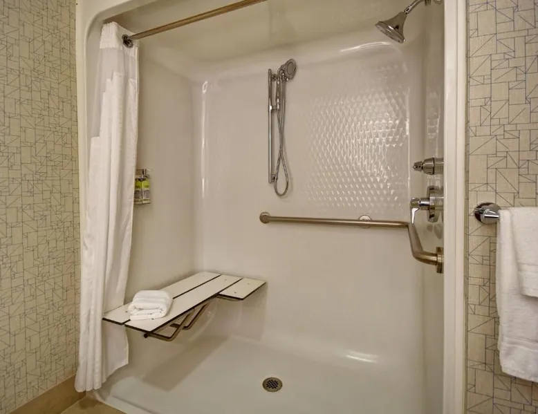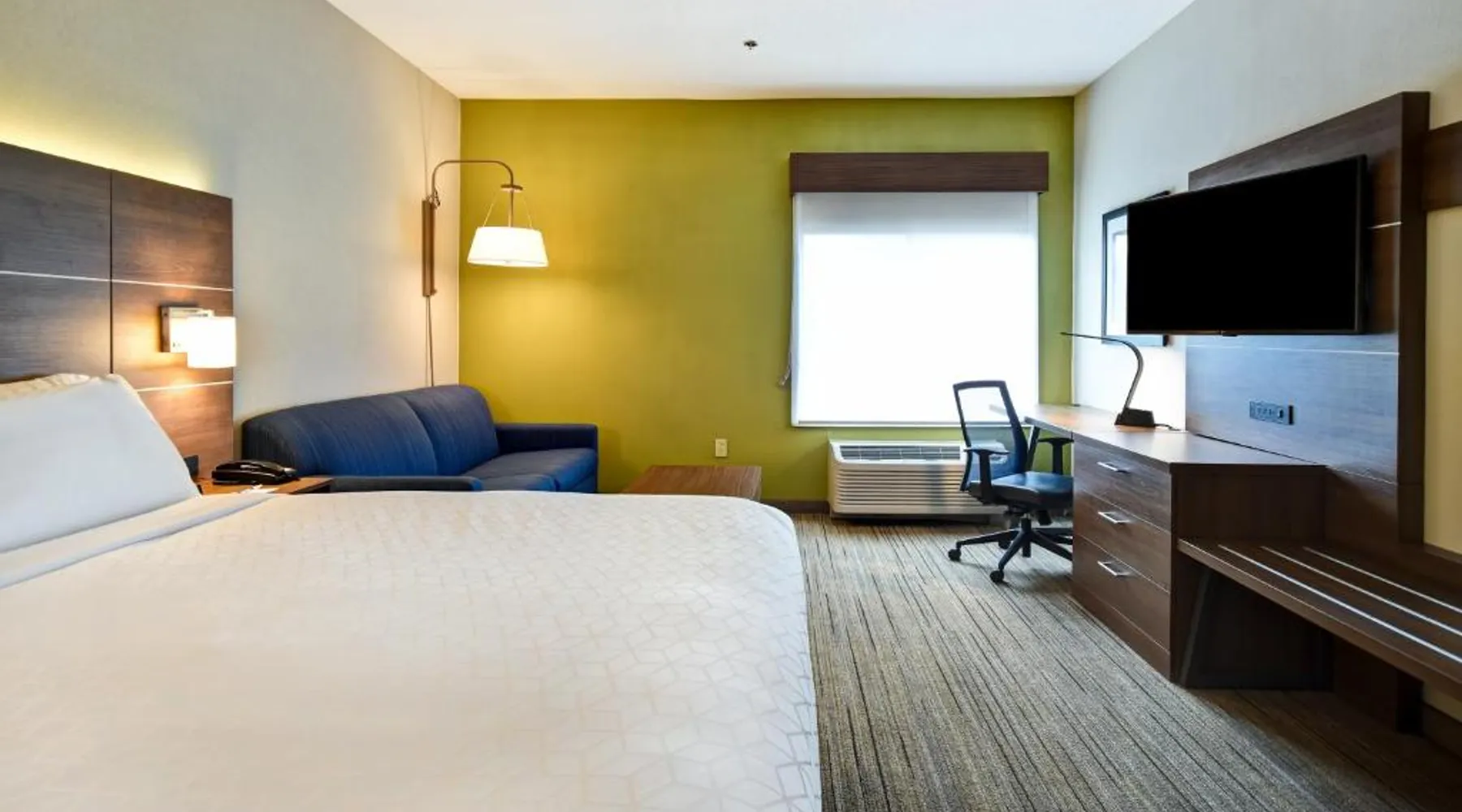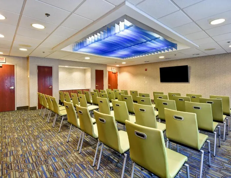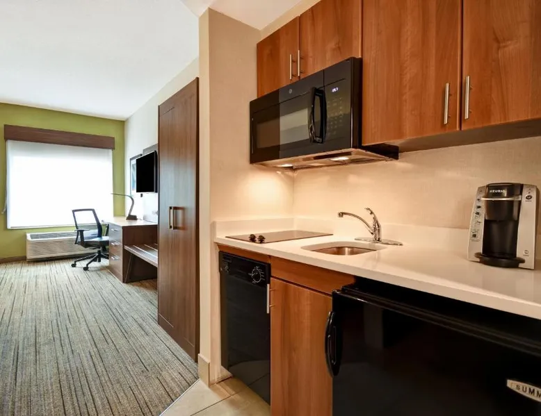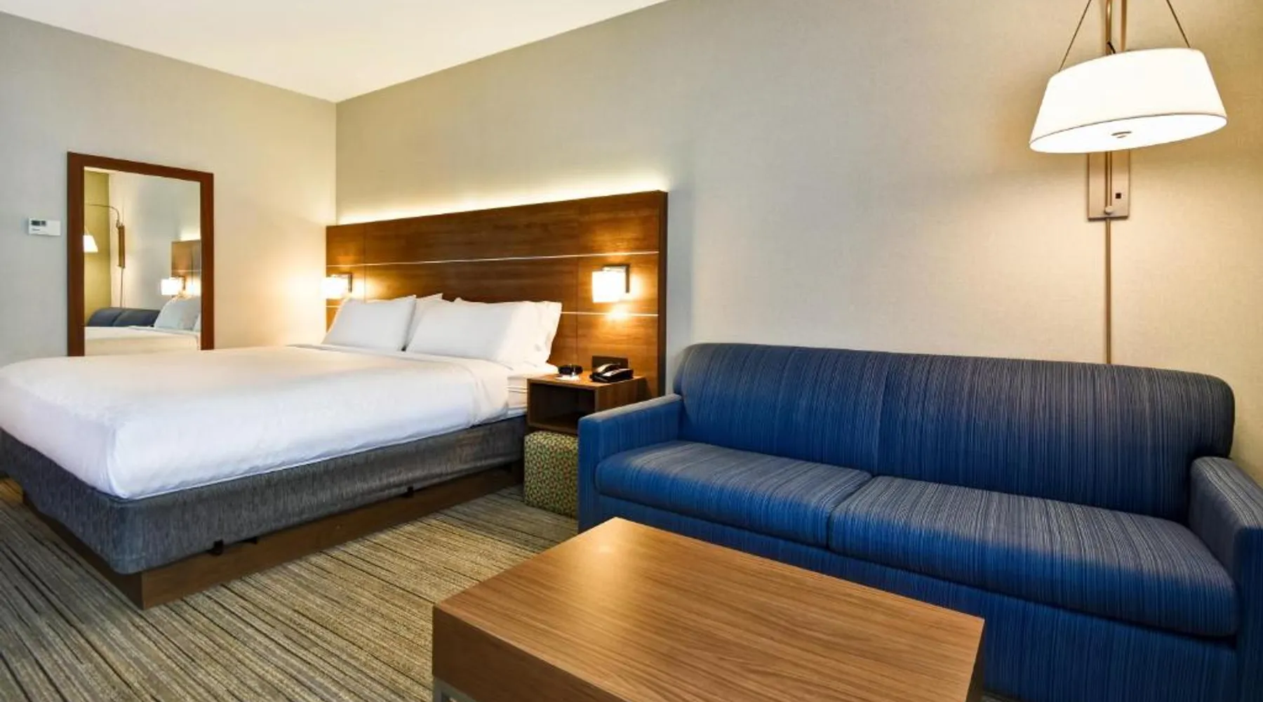 Comfortable Accommodations: Holiday Inn Express Newport North - Middletown by IHG in Middletown offers family rooms with air-conditioning, private bathrooms, and city views. Each room includes a tea and coffee maker, work desk, and free toiletries. Exceptional Facilities: Guests enjoy a fitness center, sun terrace, and indoor swimming pool. Additional amenities include a lounge, business area, and outdoor seating. Free on-site parking is available. Prime Location: Located 27 mi from New Bedford Regional Airport, the hotel is near attractions such as the International Tennis Hall of Fame (3.1 mi) and The Breakers (4.3 mi). Guests appreciate the friendly staff and comfortable rooms. Large room kitchenette and seating area with sofa bed.