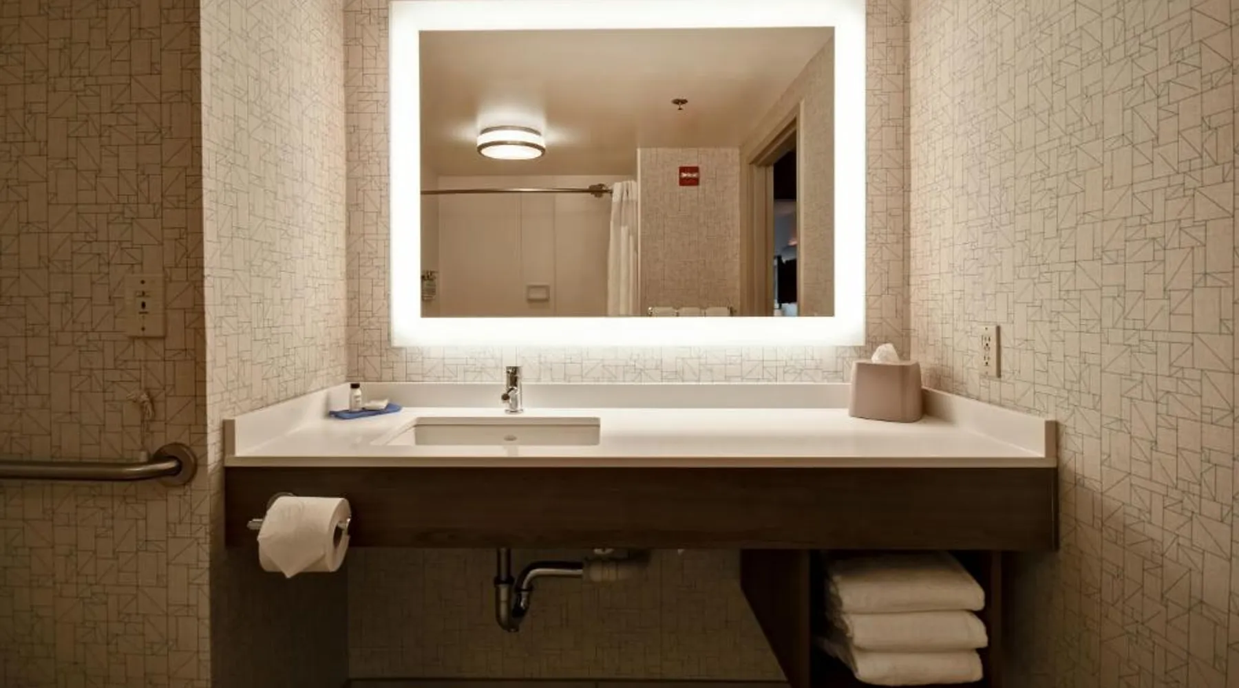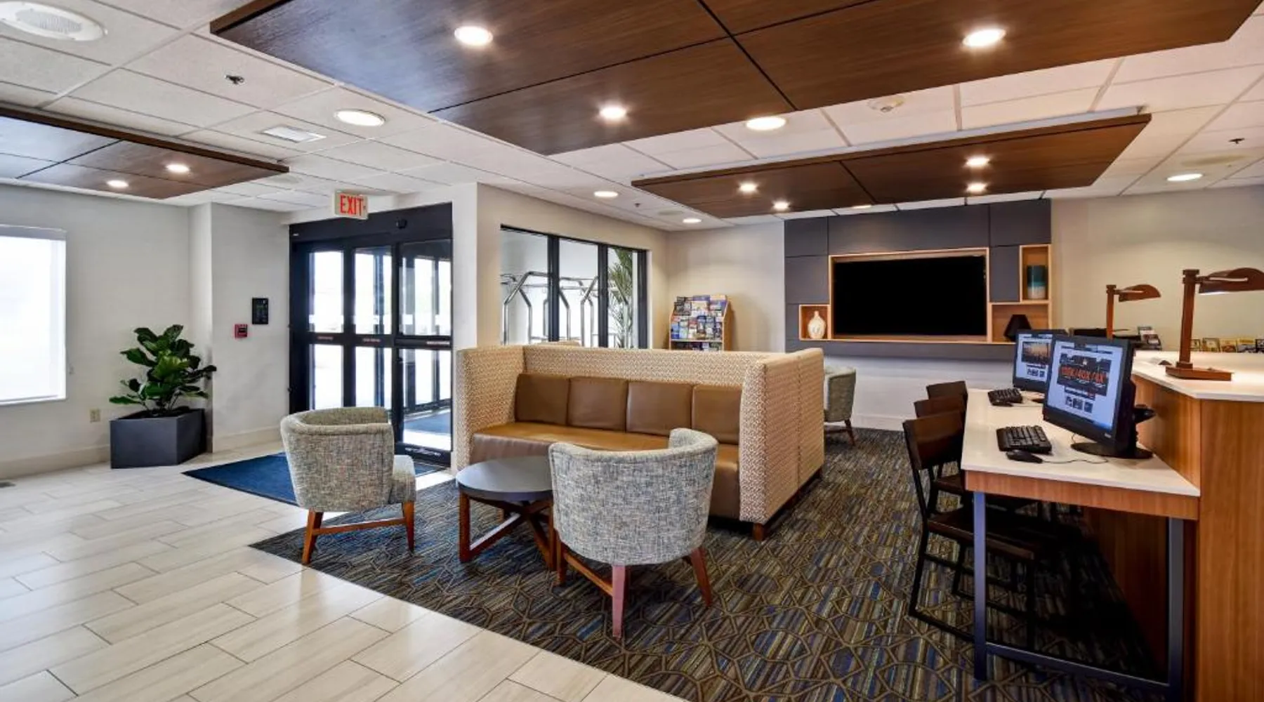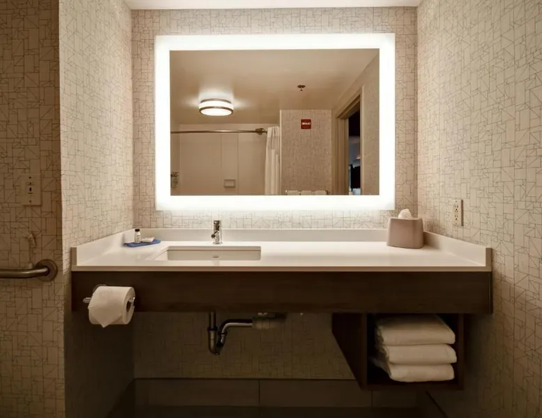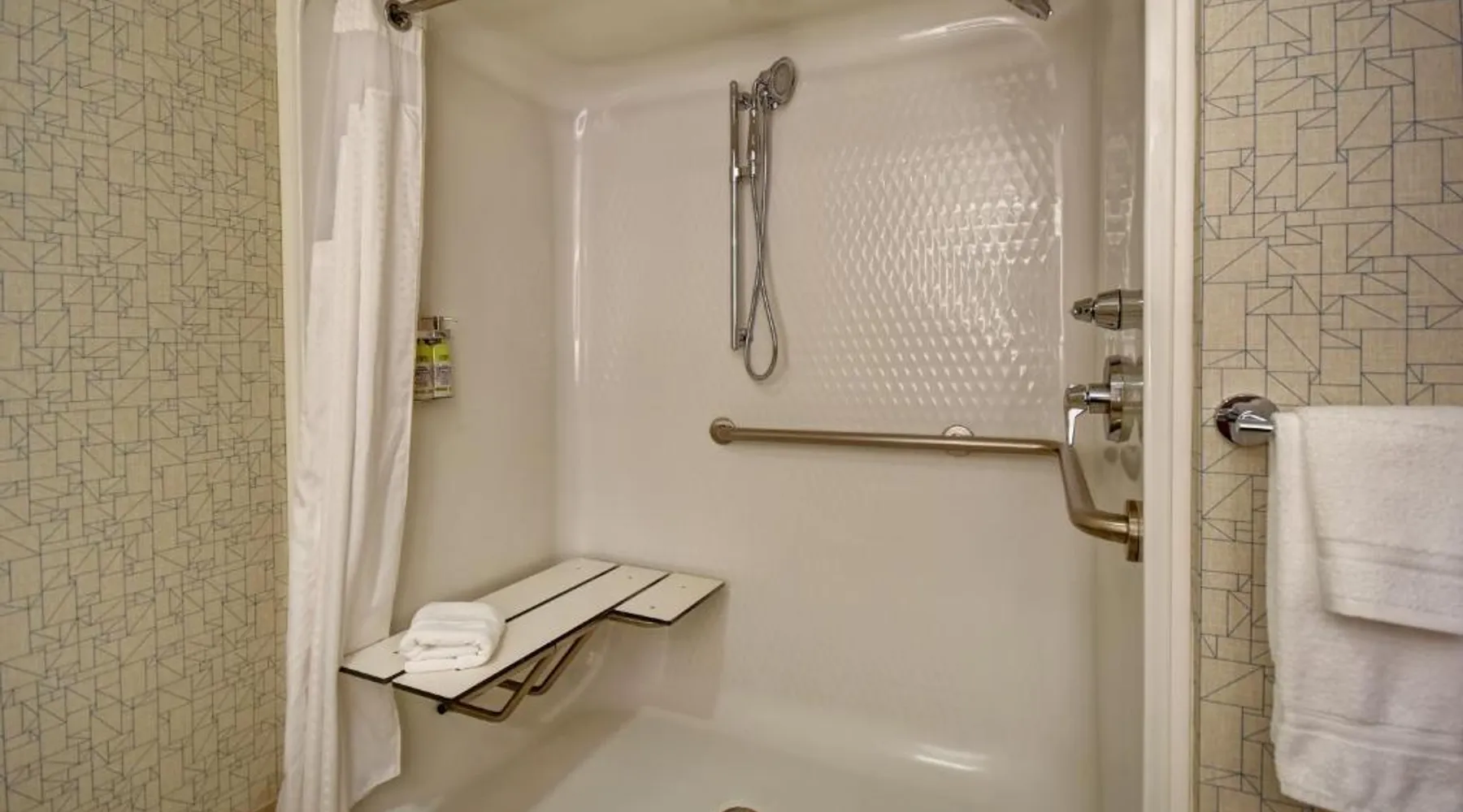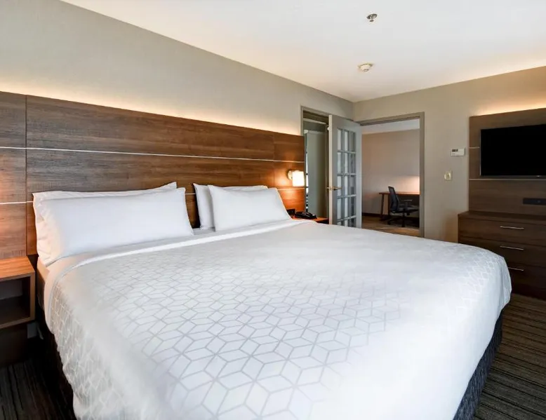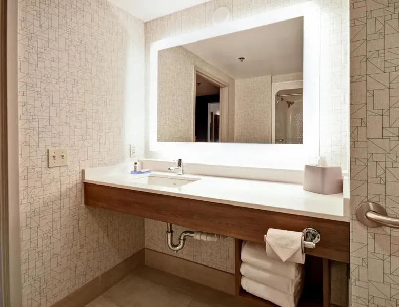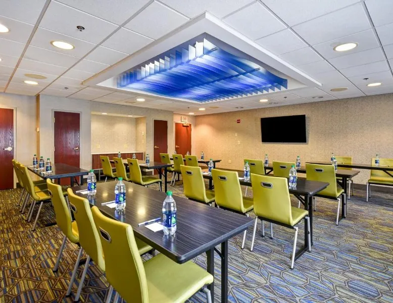 Comfortable Accommodations: Holiday Inn Express Newport North - Middletown by IHG in Middletown offers family rooms with air-conditioning, private bathrooms, and city views. Each room includes a tea and coffee maker, work desk, and free toiletries. Exceptional Facilities: Guests enjoy a fitness center, sun terrace, and indoor swimming pool. Additional amenities include a lounge, business area, and outdoor seating. Free on-site parking is available. Prime Location: Located 27 mi from New Bedford Regional Airport, the hotel is near attractions such as the International Tennis Hall of Fame (3.1 mi) and The Breakers (4.3 mi). Guests appreciate the friendly staff and comfortable rooms. Large room kitchenette and seating area with sofa bed.
