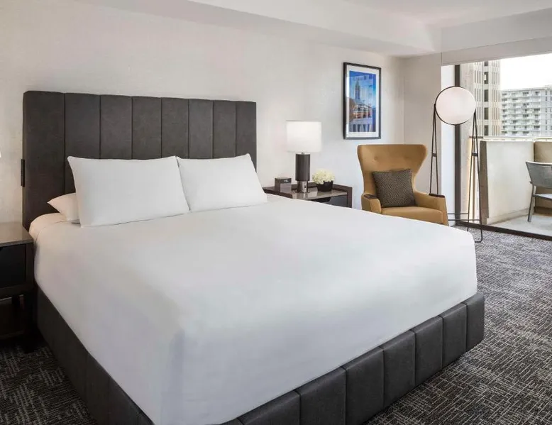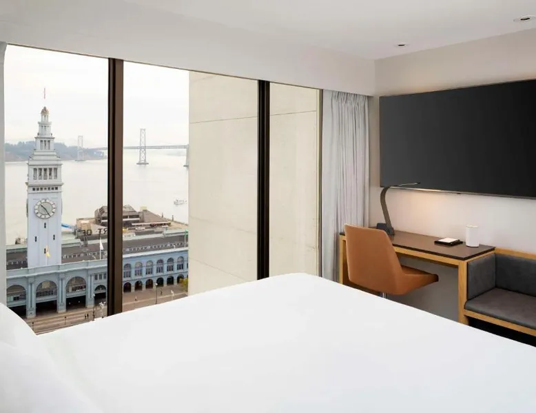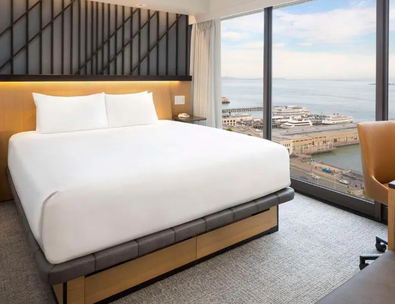 Newly renovated and located within 5 minutes’ walk of Ferry Building shops and ferries to Alcatraz, this luxury San Francisco hotel features guest rooms with stunning views of the San Francisco Bay and the Financial District. A flat-screen TV, and luxury bath amenities are standard in every spacious guest room at the San Francisco Hyatt Regency. Rooms are styled in modern dark wood furnishings, steel fixtures and plush white linens. A 24-hour fitness center, reception and business center are available for guests’ convenience. Guests can enjoy cocktails at Eclipse Lounge located in the lobby. The Eclipse Restaurant features select wines and fine dining at Hyatt Regency San Francisco. Shopping opportunities at Union Square is 10 minutes’ walk away. Pier 39 and Fisherman’s Wharf is 15 minutes’ walk away from Hyatt Regency San Francisco. Offering free WiFi, this spacious guest room features a flat-screen 47-inch HDTV. Please note: No rollaway beds are available in rooms that already have 2 existing beds.