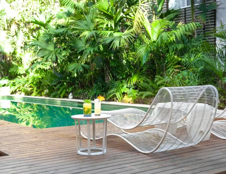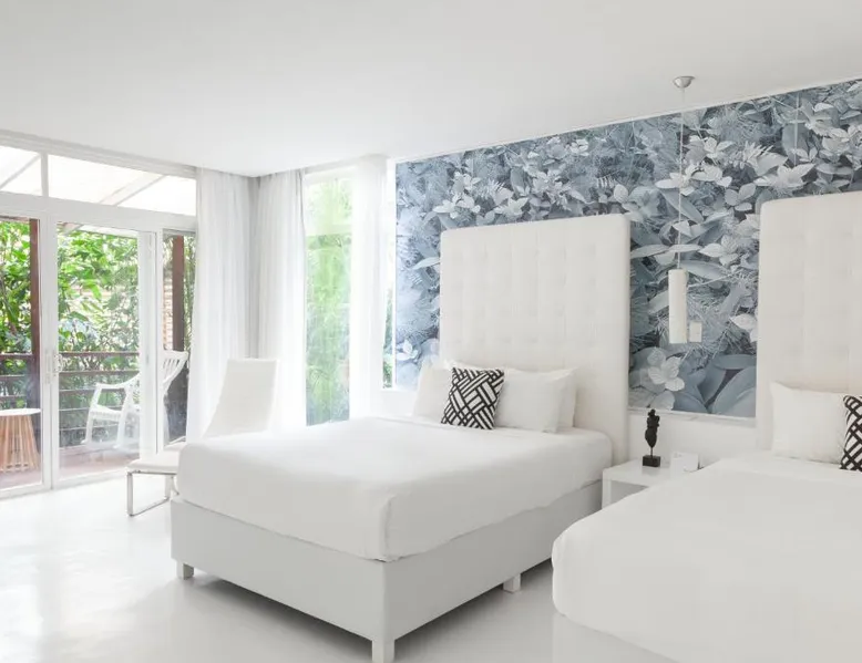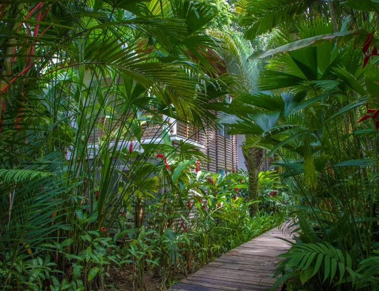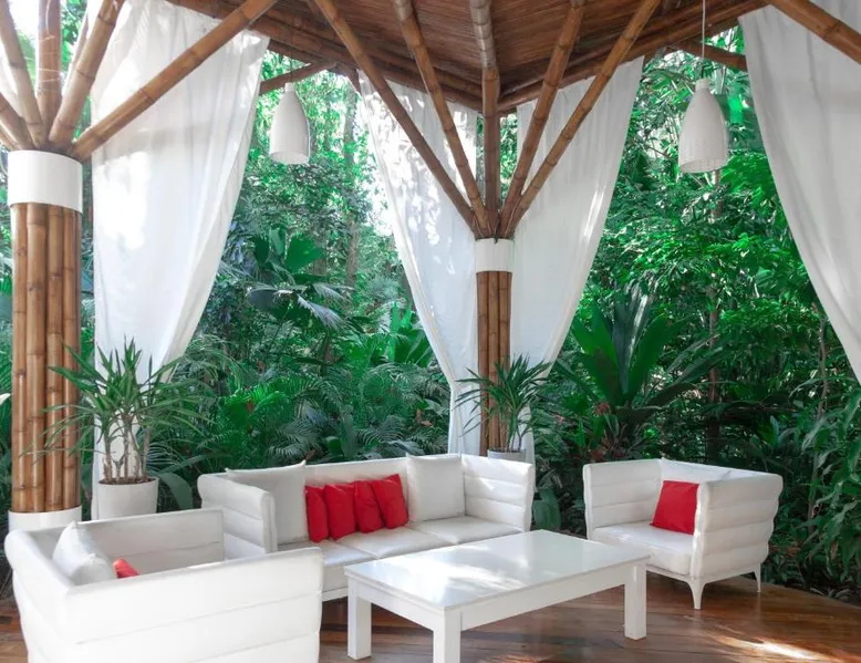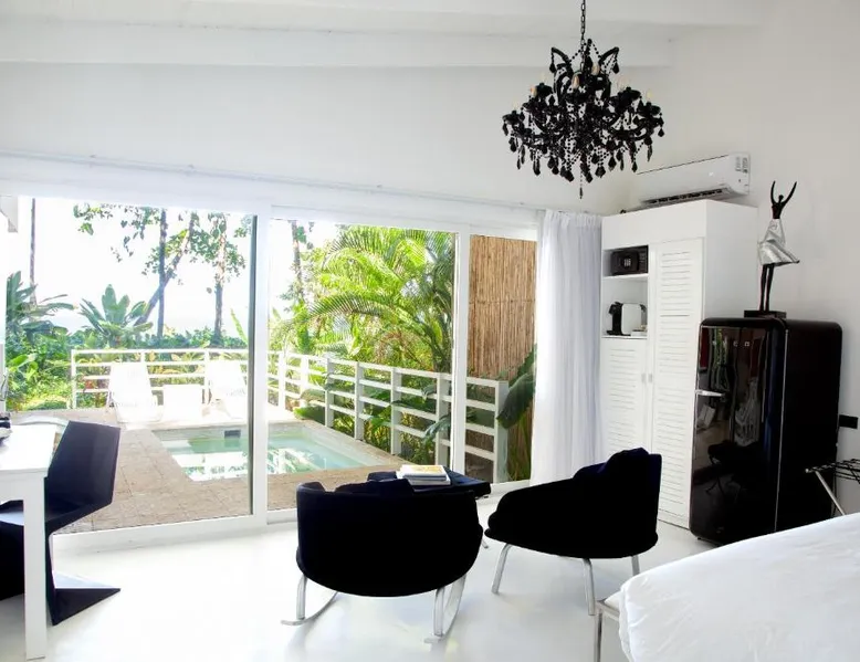 Offering a beautiful tropical forest setting, Le Cameleon Hotel is a walking distance from Cocles beach in Puerto Viejo. This luxurious resort features a beach club, an outdoor swimming pool and a spa. The chic rooms and suites at Le Cameleon Hotel have minimalist, white décor and terraces overlooking the forest. All accommodations have an iPod docking station, free Wi-Fi and a flat-screen TV. Creative, international cuisine is served in the Gigi Beach. The Jungle Spa offers a range of treatments including facials, body scrubs, body wraps and massage. The hotel can arrange trips to nearby Cahuita National Park, Kekoldi Indigenous Reserve and Veragua Rainforest. Other activities include excursions to cocoa plantations and sloth sanctuaries, rainforest canopy tours, and dolphin and turtle watching trips. These rooms are located on the second floor. They feature a soaking bathtub with a garden view, a lounge area and an extra half bathroom. There are ceiling fans as well as air conditioning and two 32-inch plasma TVs.