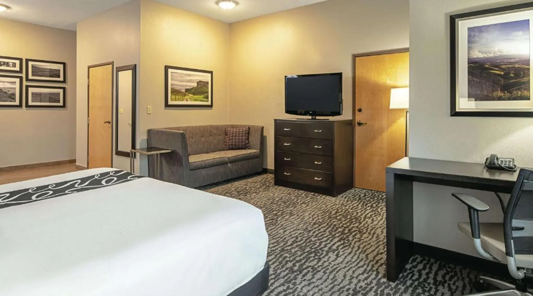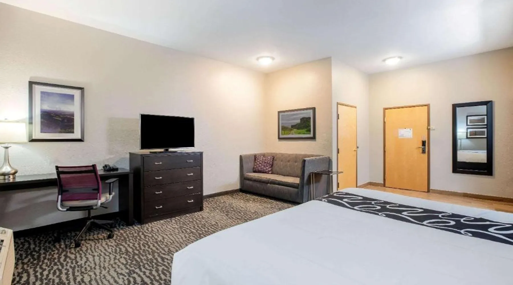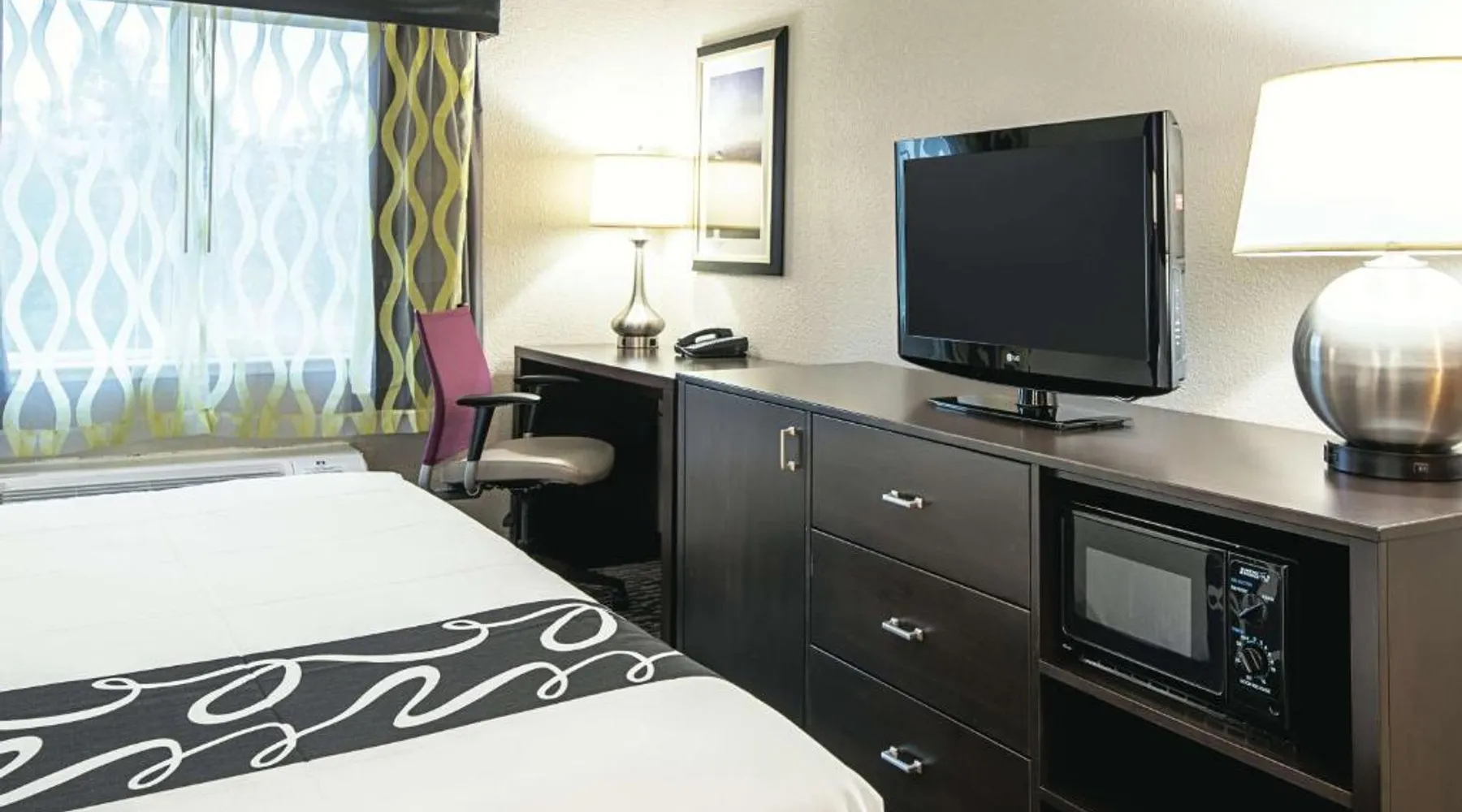 This Livermore hotel is located 3 miles from Lawrence Livermore National Laboratory. The hotel features an indoor pool, free Wi-Fi in public areas and a daily continental breakfast. La Quinta Inn Livermore features a microwave and refrigerator in each guest room. All rooms are also equipped with cable TV and a coffee maker. Guests can use the well-equipped gym or the hot tub at the Livermore La Quinta Inn. Laundry facilities and a business center are also available. The Livermore Valley Opera is 5 miles from the La Quinta Inn. Lake Del Valle State Recreation Area is 10 miles away. This room offers a cable TV, a microwave, a fridge and tea/coffee-making facilities.