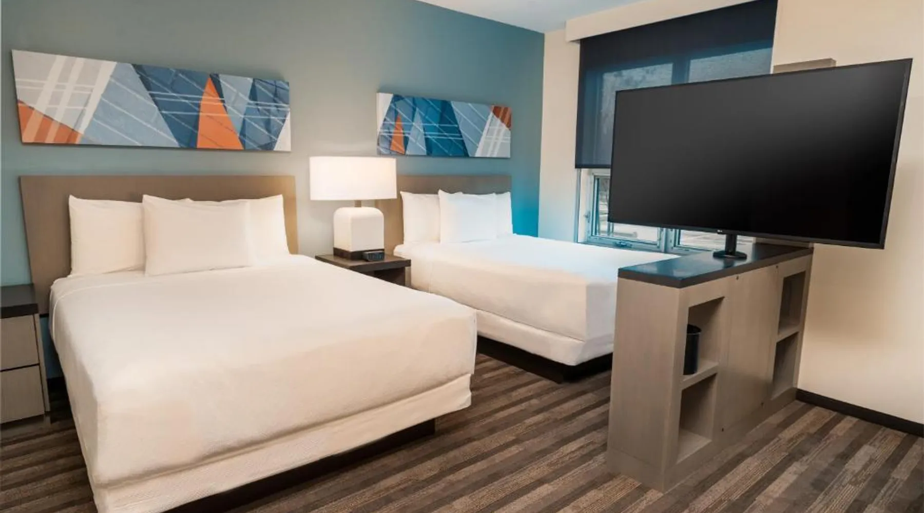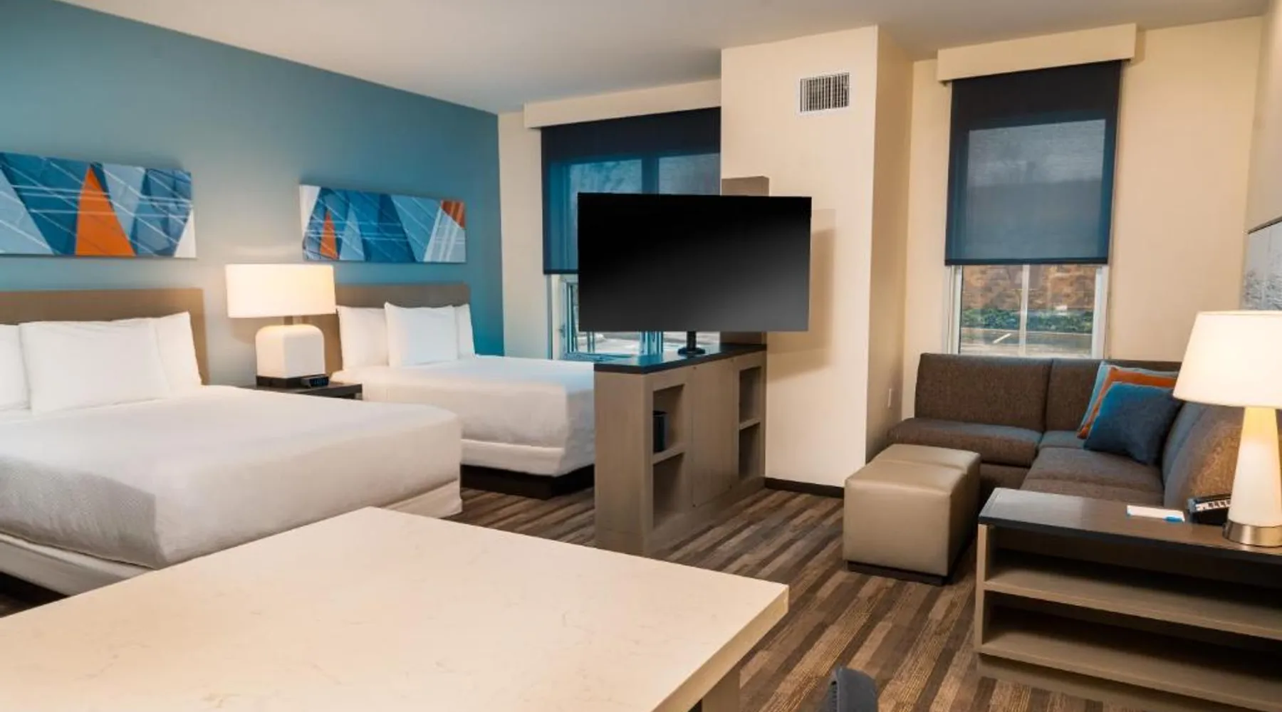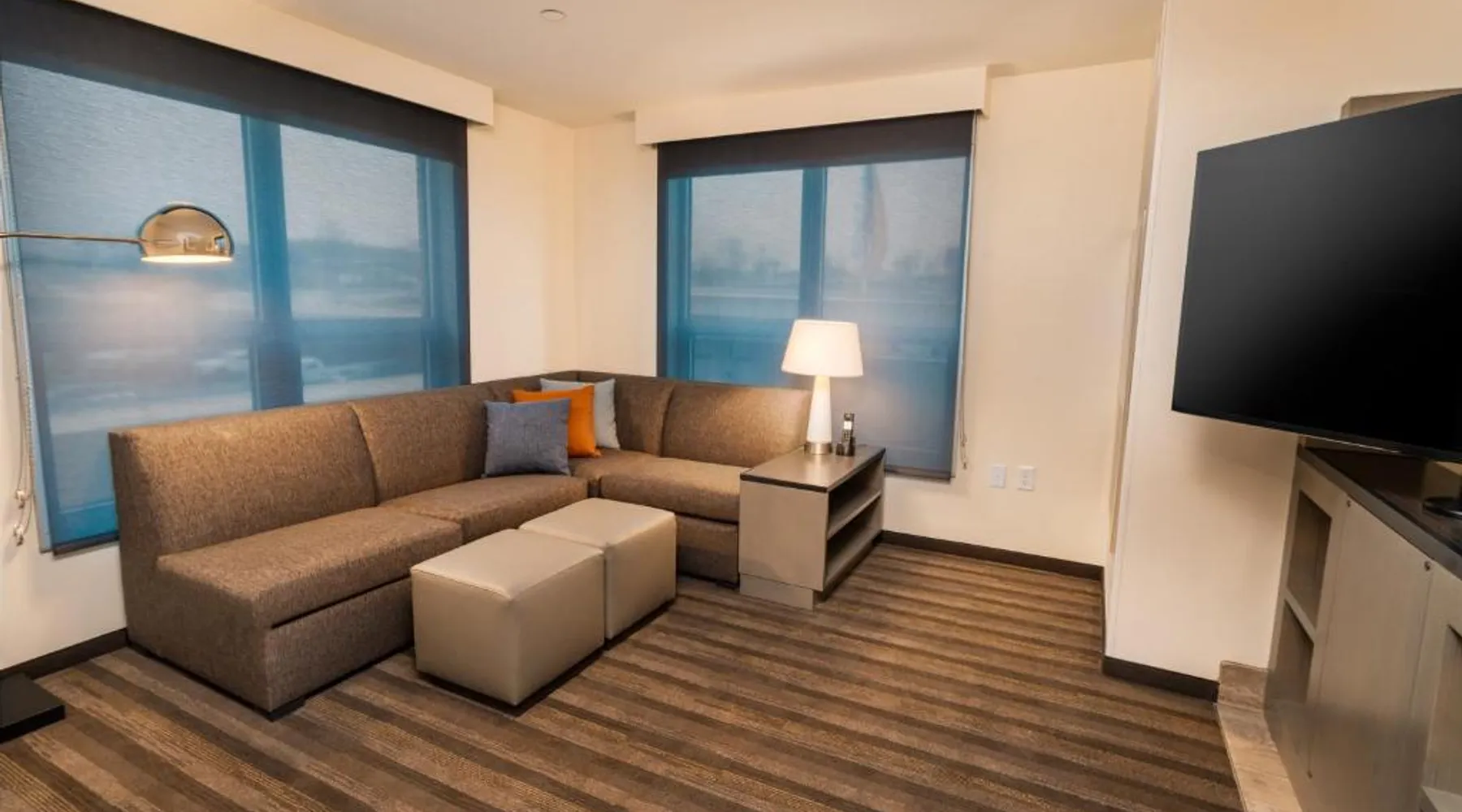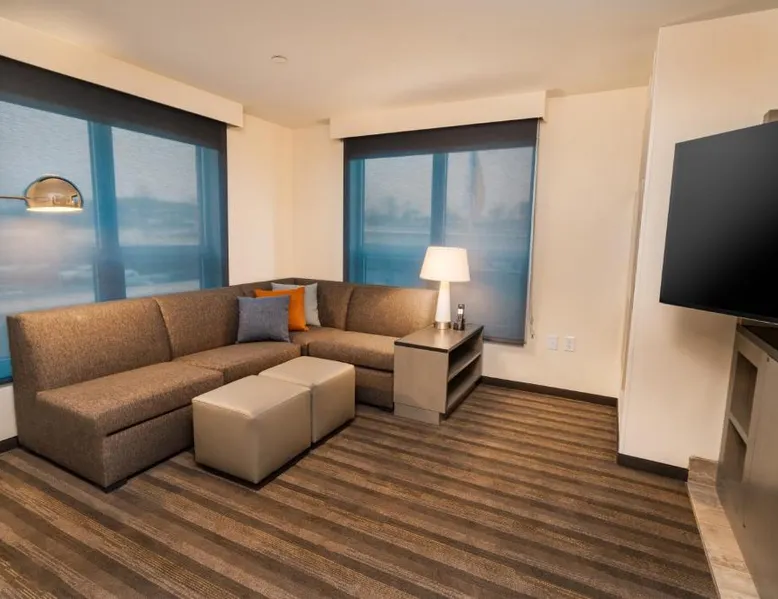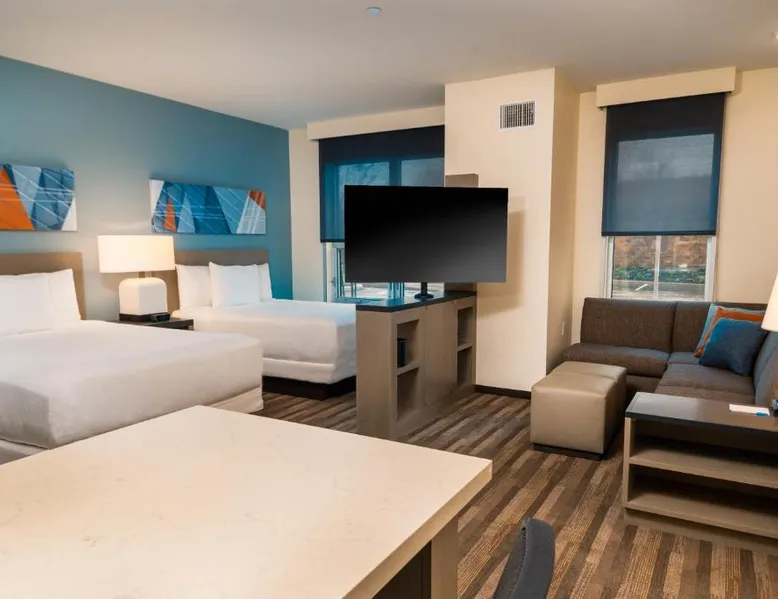 Comfortable Accommodations: Hyatt House Nashville/Franklin/Cool Springs in Franklin offers rooms with air-conditioning, tea and coffee makers, hairdryers, sofa beds, refrigerators, work desks, and free toiletries. Guests appreciate the room cleanliness and complimentary WiFi. Exceptional Facilities: The hotel features a bar, lounge, elevator, 24-hour front desk, housekeeping, child-friendly buffet, business area, outdoor seating, bicycle parking, express check-in and check-out, barbecue facilities, and luggage storage. Free on-site private parking is available. Prime Location: Located 17 mi from Nashville International Airport, the property is near attractions such as Bridgestone Arena (18 mi), Ryman Auditorium (18 mi), and Nashville Zoo (15 mi). Guests enjoy easy access to local points of interest. The suite features air conditioning, a tea and coffee maker and a safe deposit box. The unit has 2 beds.