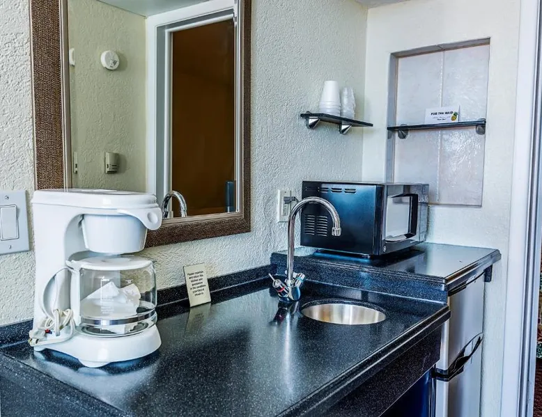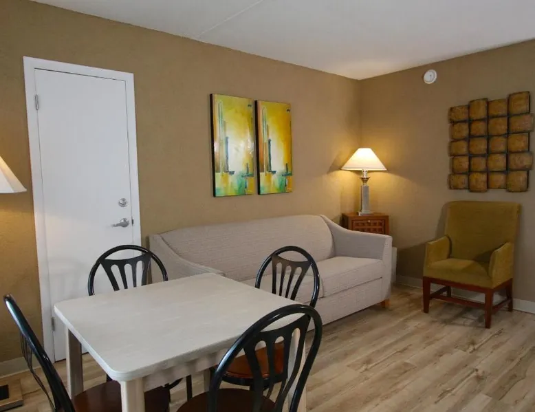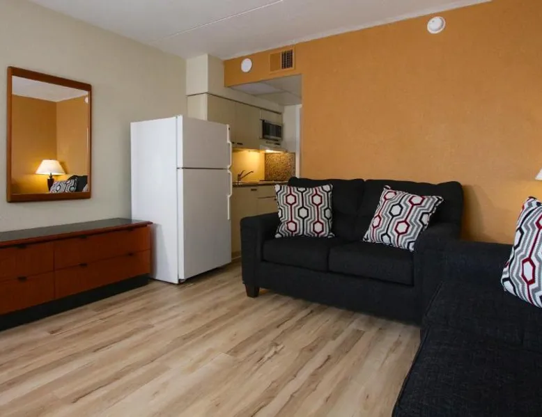 Featuring a seasonal outdoor swimming pool, Crusader Oceanfront Resort is located in Wildwood Crest. This oceanfront resort offers a 24-hour front desk. The motel has a sun terrace and a sauna. Guest rooms in the motel are equipped with a TV. The suites come with a kitchenette equipped with a microwave and a fridge. At Crusader Oceanfront Resort, all rooms come with air conditioning and a private bathroom. Wildwoods Convention Center is 0.8 mi away, while Morey's Amusement Piers and Water Parks is 1.2 mi away. Cape May is 6.6 mi from the accommodations. This suite features air conditioning, a two-burner stove, microwave, refrigerator, and coffee maker.