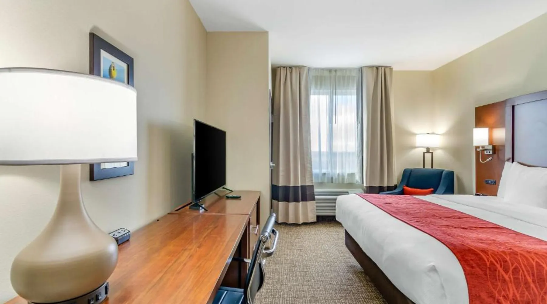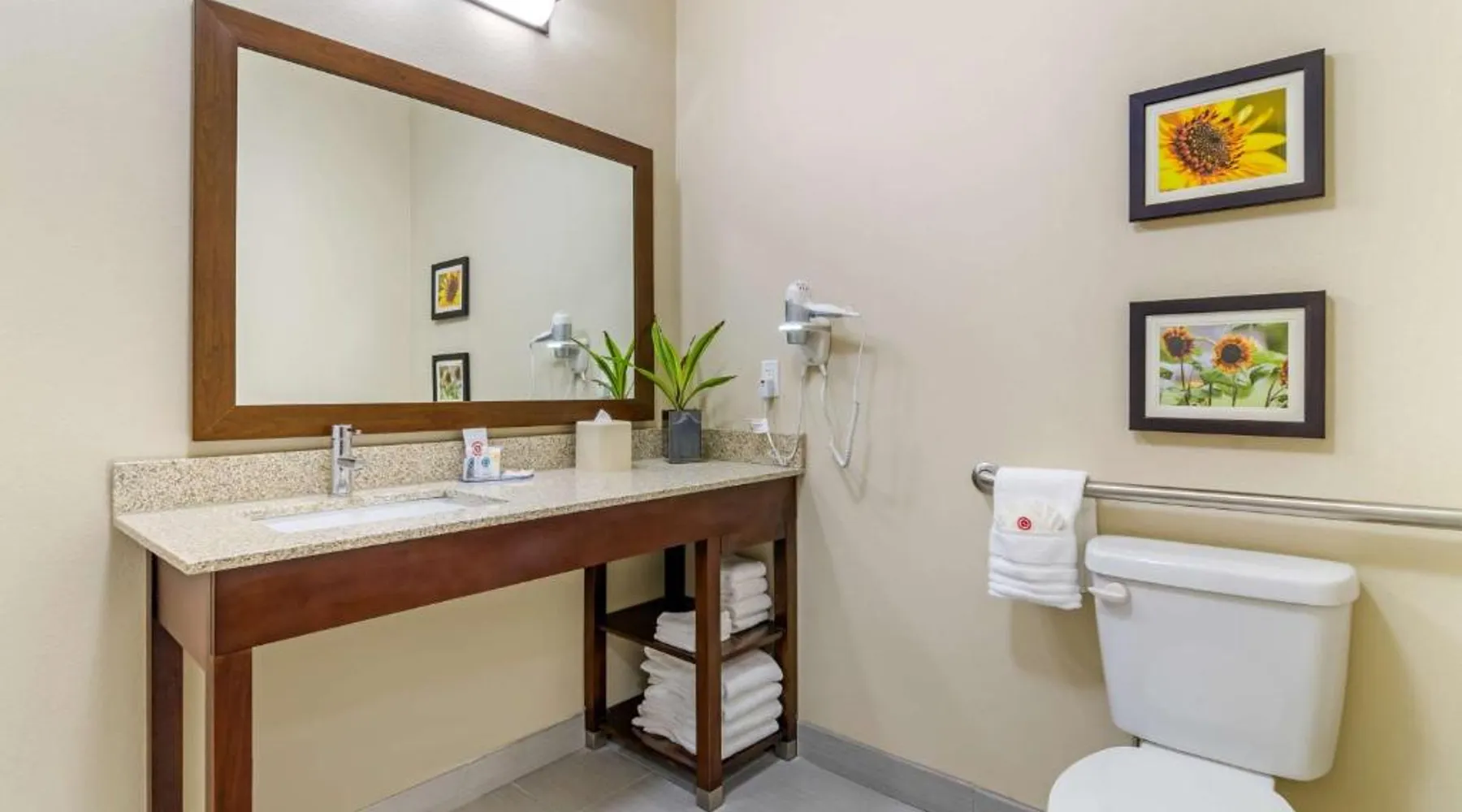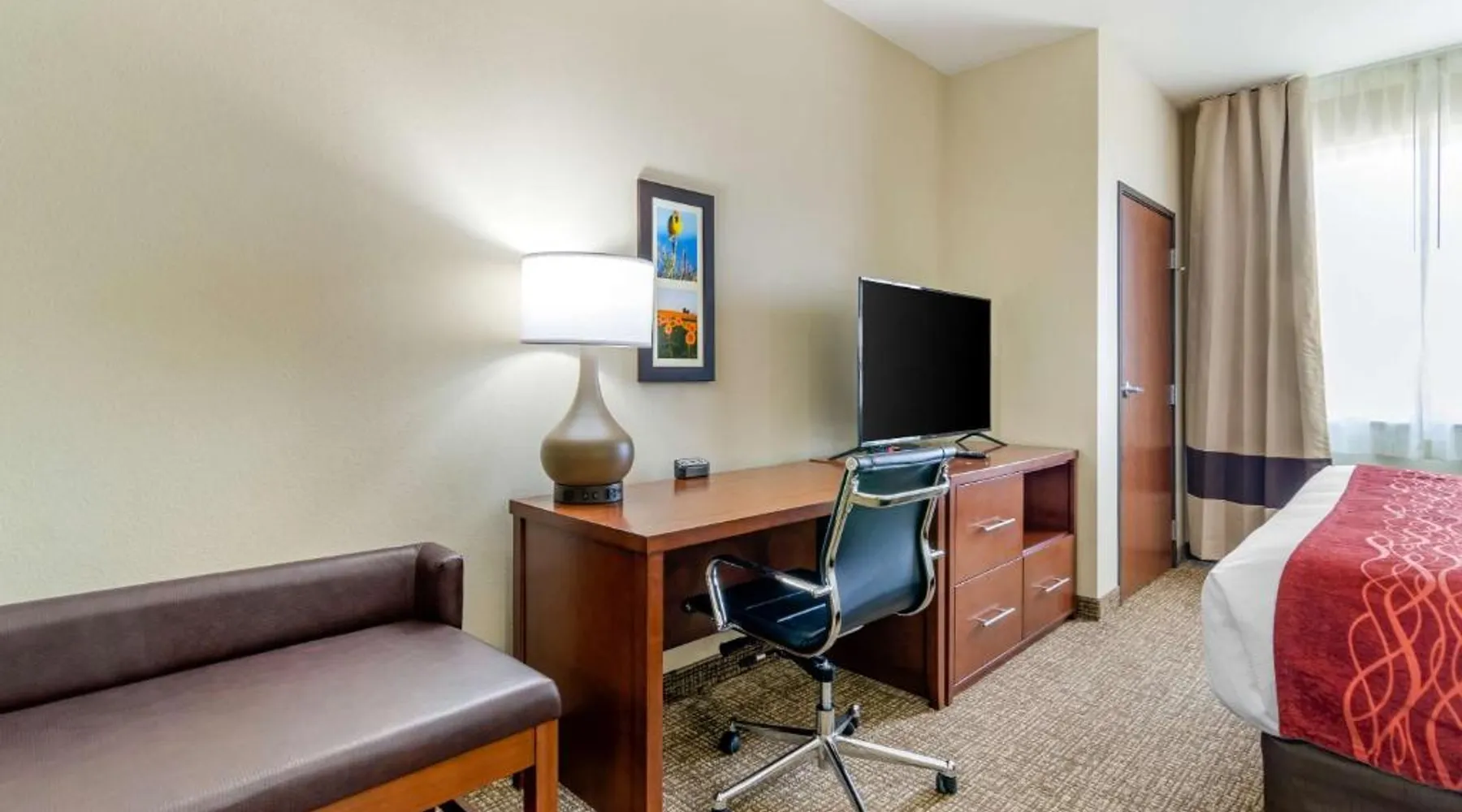 Comfortable Accommodations: Comfort Inn & Suites Salina North in Salina offers comfortable rooms with free WiFi, air-conditioning, and modern amenities. Guests enjoy a fitness center, indoor swimming pool, and a relaxing atmosphere. Convenient Facilities: The hotel features a 24-hour front desk, elevator, minimarket, business area, and express check-in and check-out services. Additional amenities include a continental buffet breakfast with warm dishes, fresh pastries, fruits, and juice. Prime Location: Located 6.2 mi from Salina Regional Airport, the hotel provides easy access to local attractions. Guests appreciate the convenient location, excellent breakfast, and comfortable rooms. This family room features a tea and coffee maker and a TV. The unit has 2 beds.